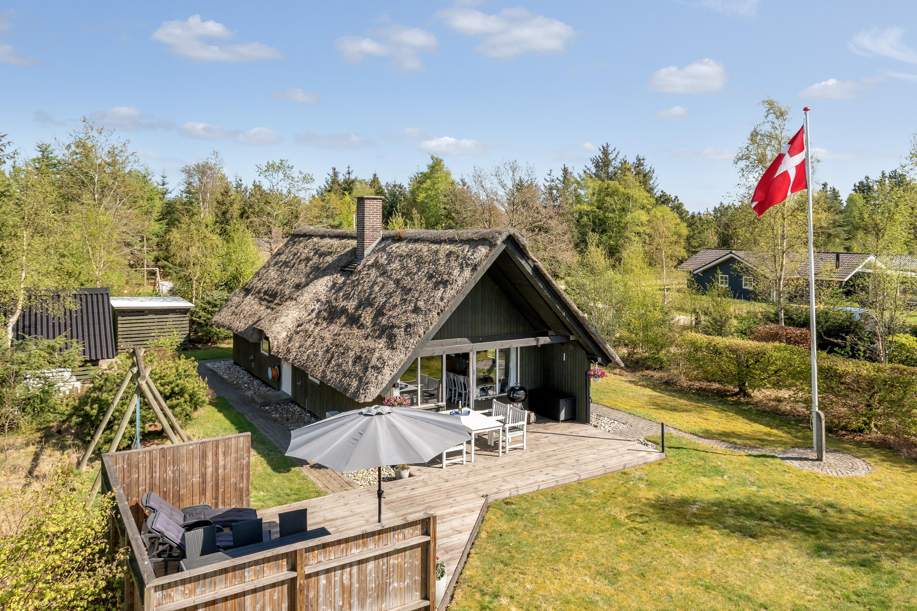In dem Søndervang 6, mit 3 Terrassen, von denen eine überdacht ist, findet man immer Windschutz oder Schatten vor der Sonne. Sie finden 3 Schlafzimmer, 2 davon mit Doppelbett, und im ersten Stock befindet sich das letzte Schlafzimmer. Die Küche aus dem Jahr 2021 ist gut ausgestattet und verfügt über eine Mikrowelle und Geschirrspüler sowie einen Gefrierschrank mit ca. 50 Litern. Das Wohnzimmer ist gemütlich mit sichtbaren Balken und hohen Decken. Ein Kaminofen und eine Wärmepumpe sorgen sowohl für Gemütlichkeit als auch für eine angenehme Temperatur. Das äußerst schöne Badezimmer aus dem Jahr 2022 verfügt selbstverständlich über Fußbodenheizung. Das Haus ist persönlich und sehr gut gepflegt. Sie sind herzlich eingeladen, Ihren vierbeinigen Freund mitzubringen. Kostenloser Zugang zum Golf in Outrup sowie Speedwayrennen ebenfalls in Outrup. Ein Haus, in dem Neues und Altes harmonisch zusammenkommen. Sie werden ganz sicher wiederkommen.