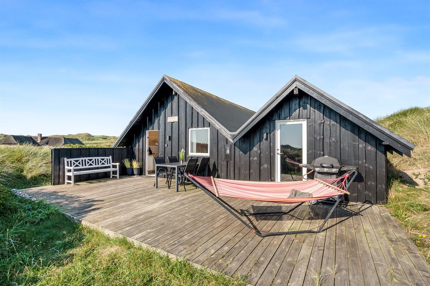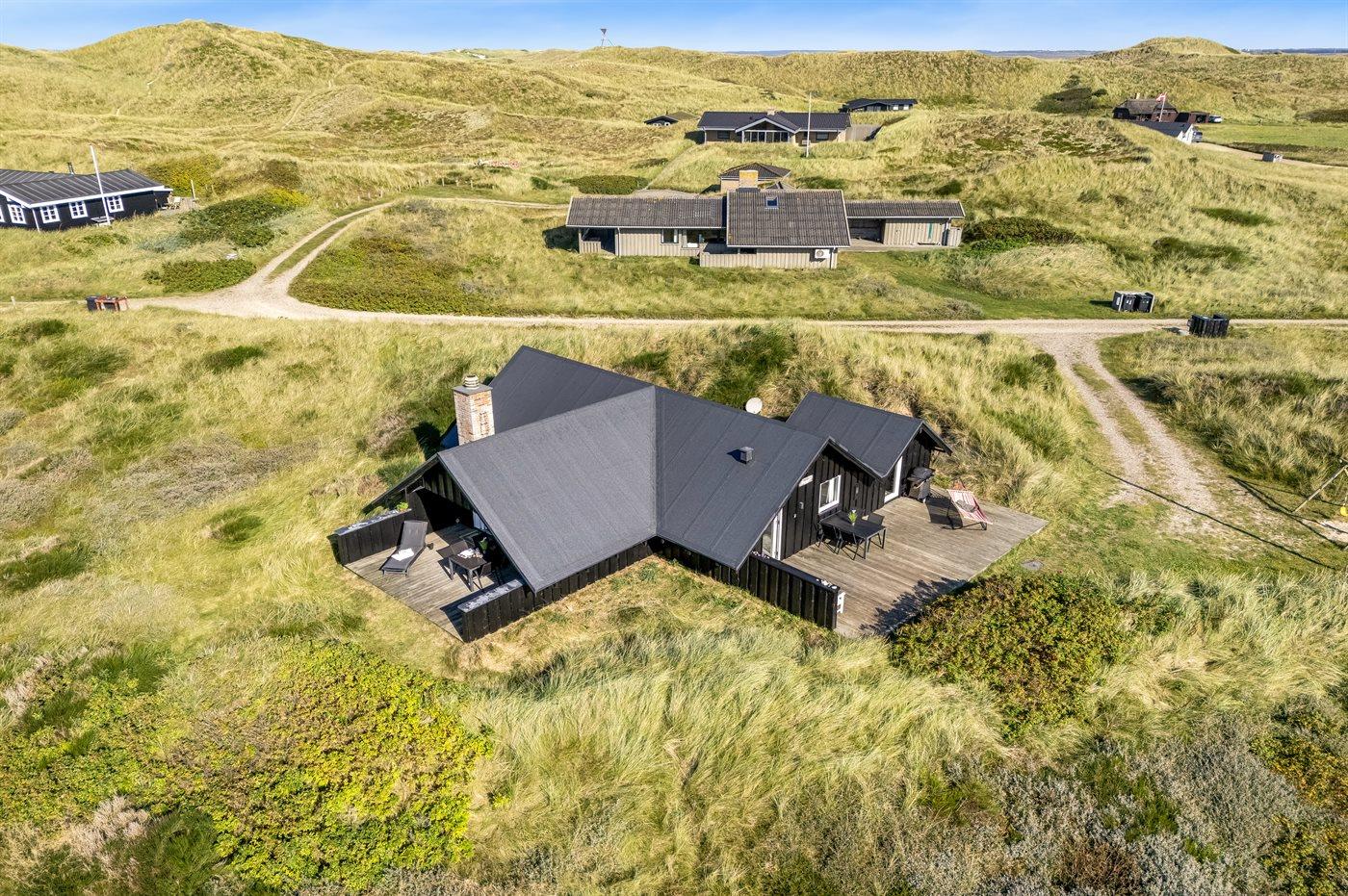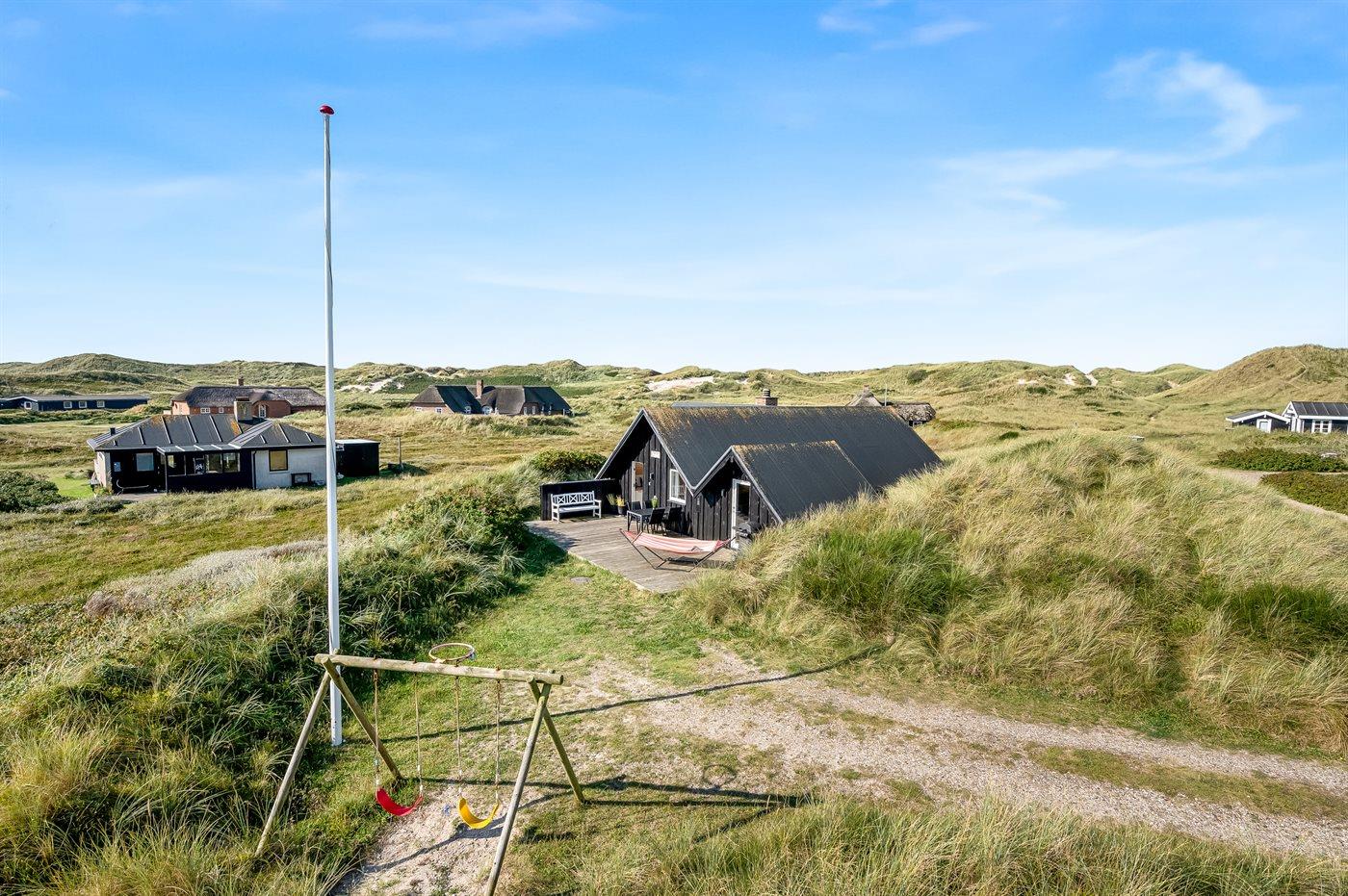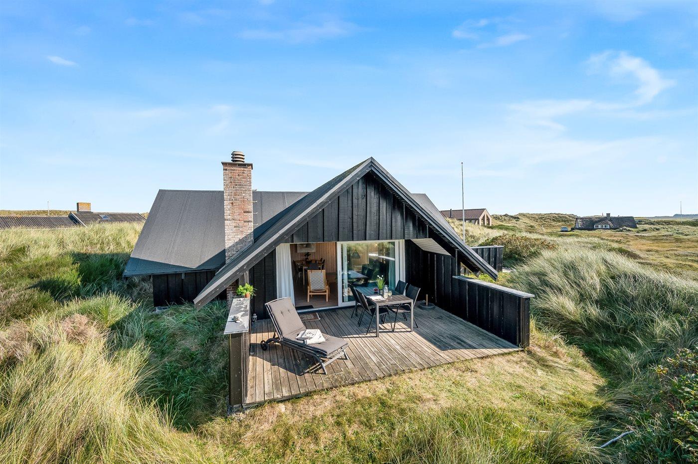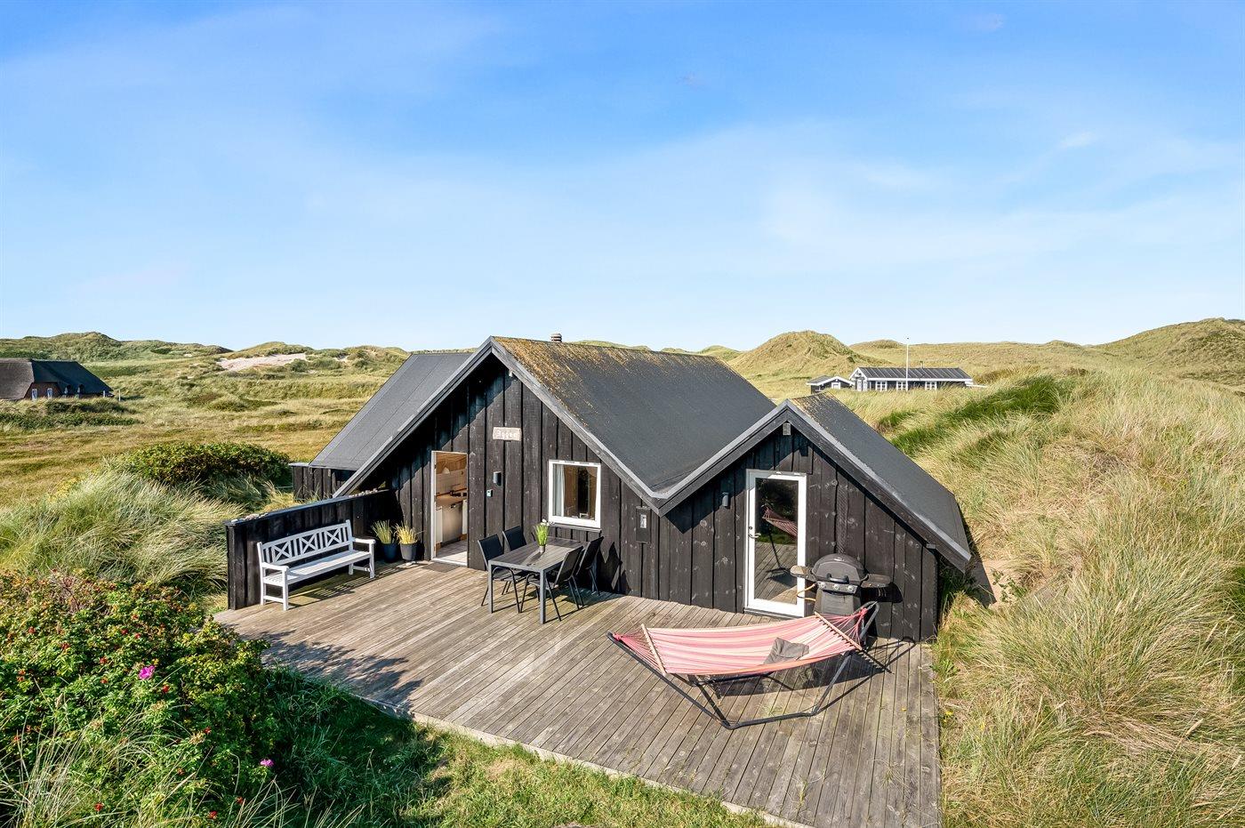 In Houvig, auf einem Grundstück in einem hügeligen Dünengebiet nördlich von Söndervig, liegt dieses schöne und gepflegte Ferienhaus. Vom Ferienhaus haben Sie eine herrliche Aussicht auf die Dünen und auf der Terrasse können Sie dem rauschen der Nordsee lauschen. Vom Grundstück aus haben Sie ferner Aussicht auf den Fjord.