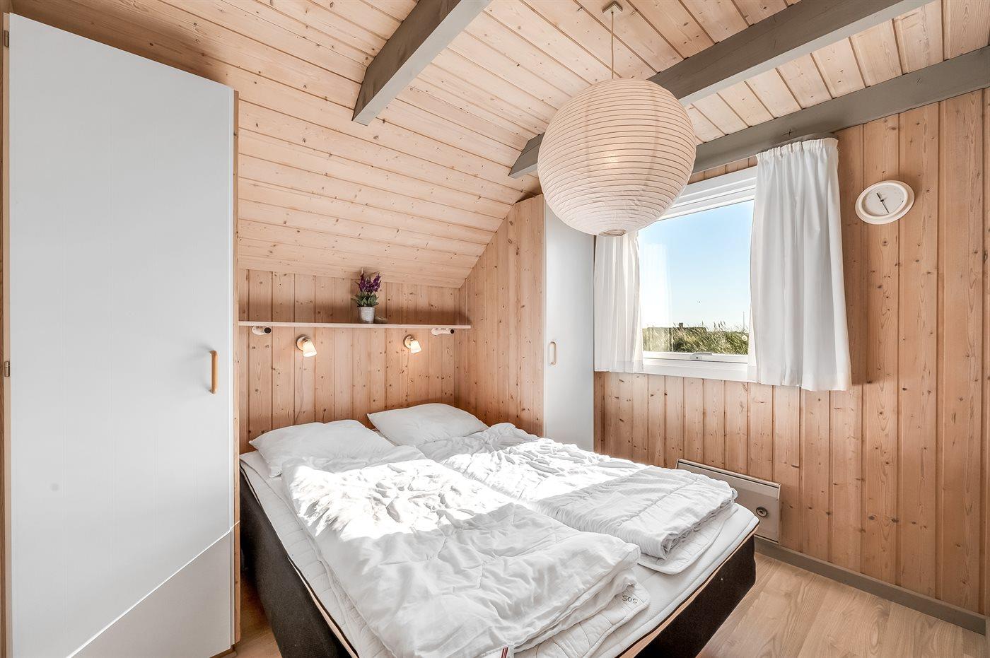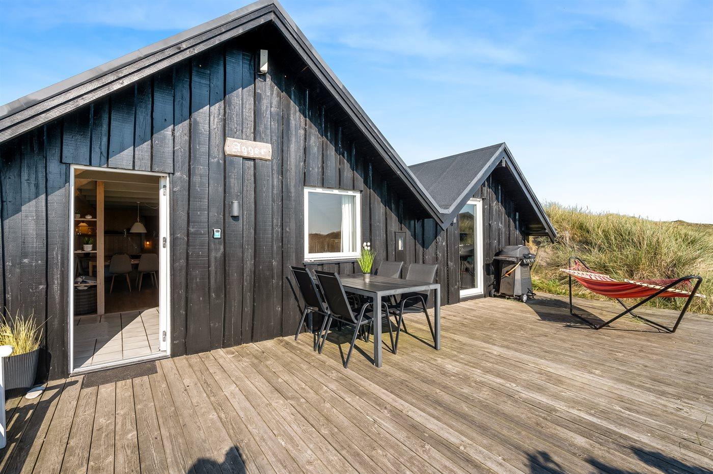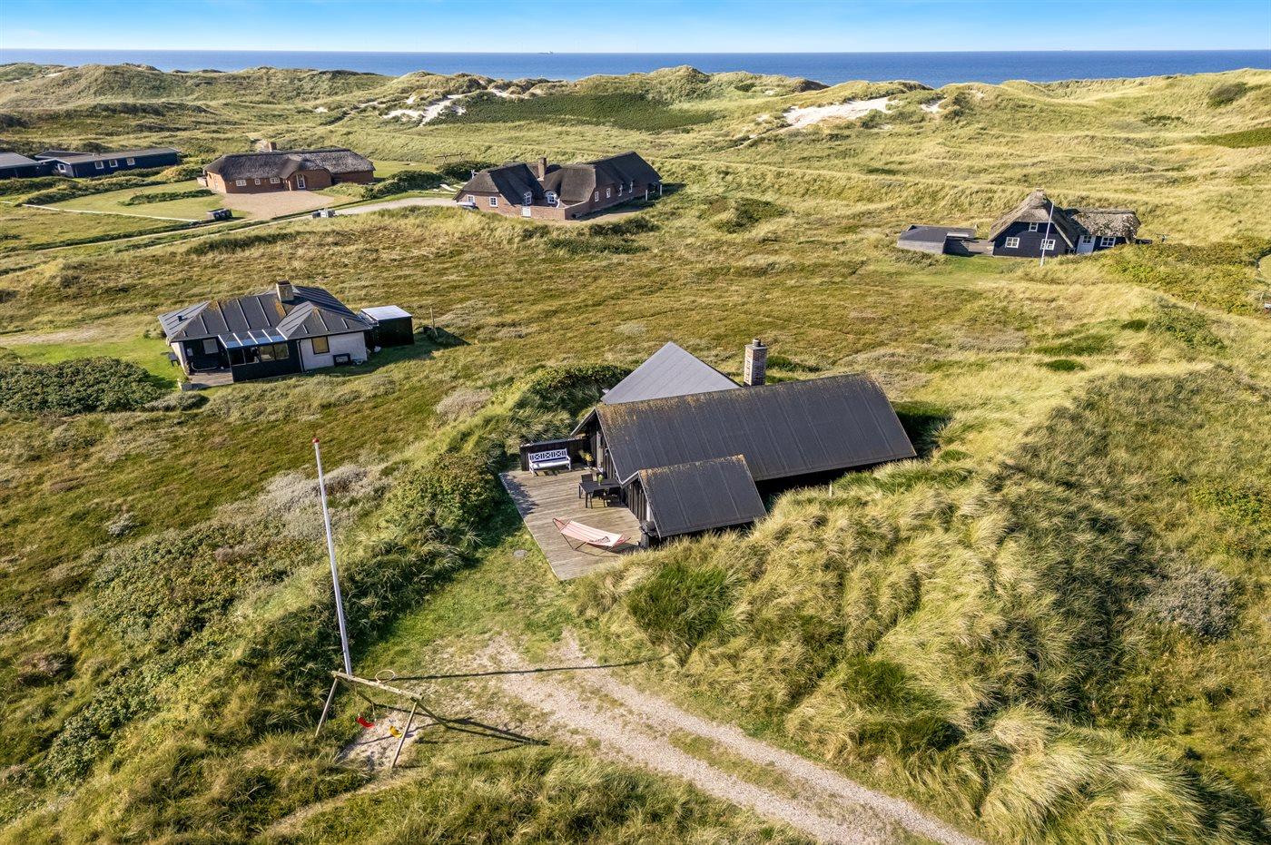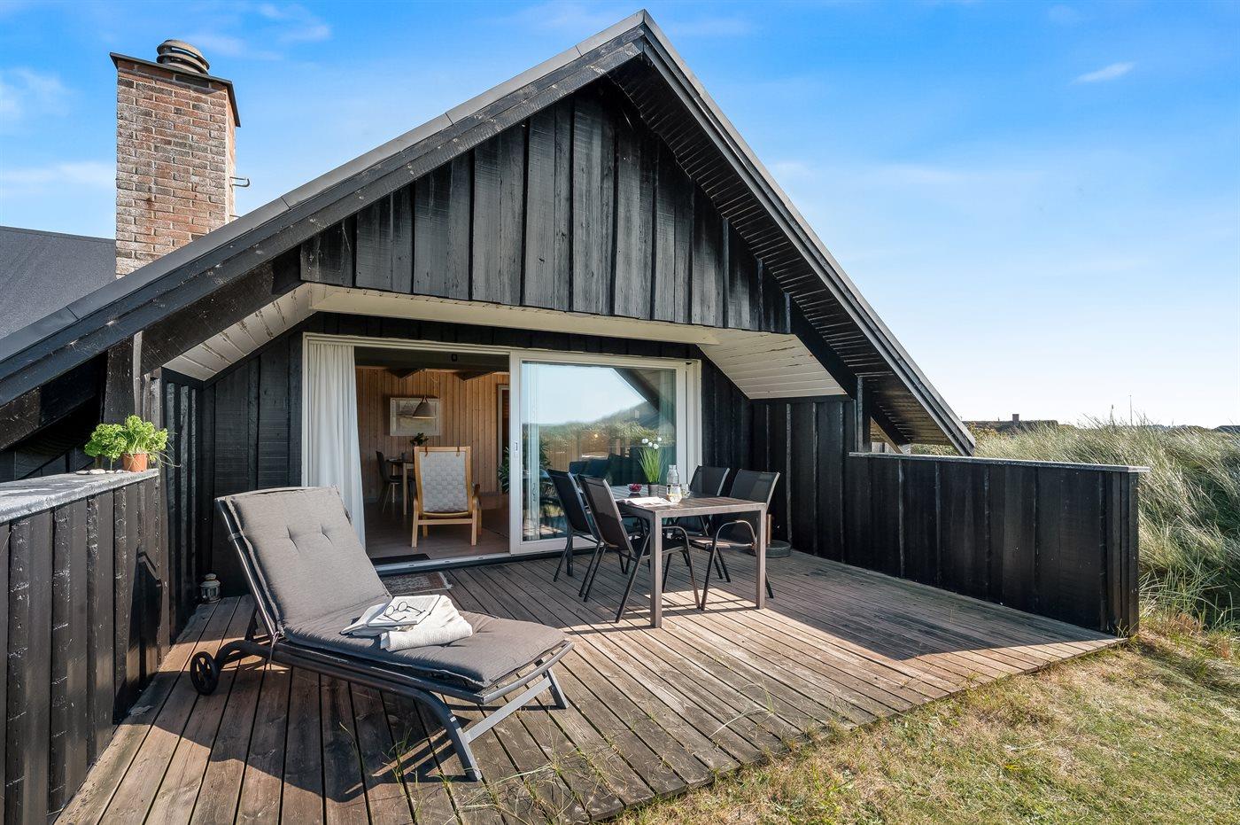 In Houvig, auf einem Grundstück in einem hügeligen Dünengebiet nördlich von Söndervig, liegt dieses schöne und gepflegte Ferienhaus. Vom Ferienhaus haben Sie eine herrliche Aussicht auf die Dünen und auf der Terrasse können Sie dem rauschen der Nordsee lauschen. Vom Grundstück aus haben Sie ferner Aussicht auf den Fjord.