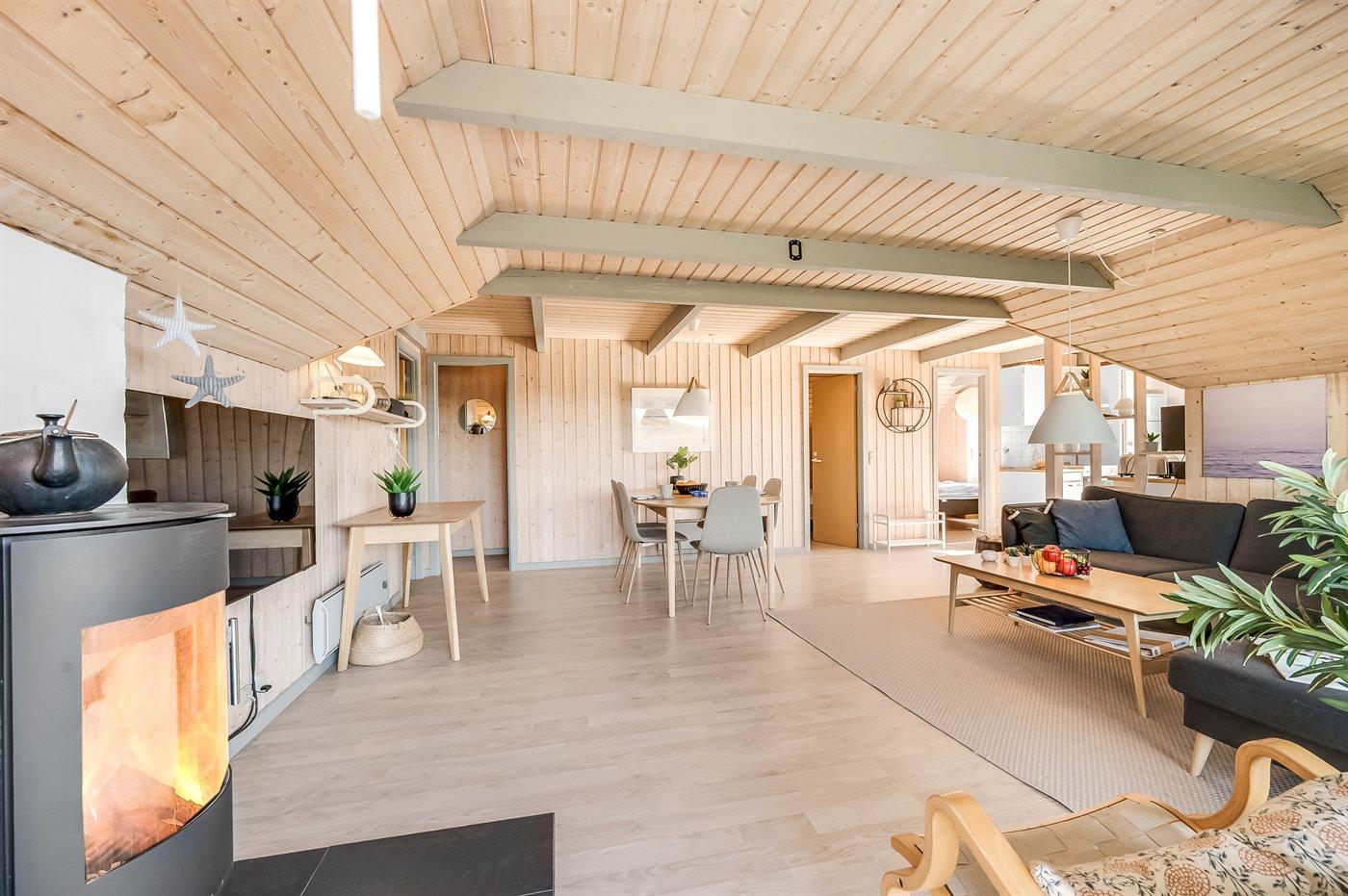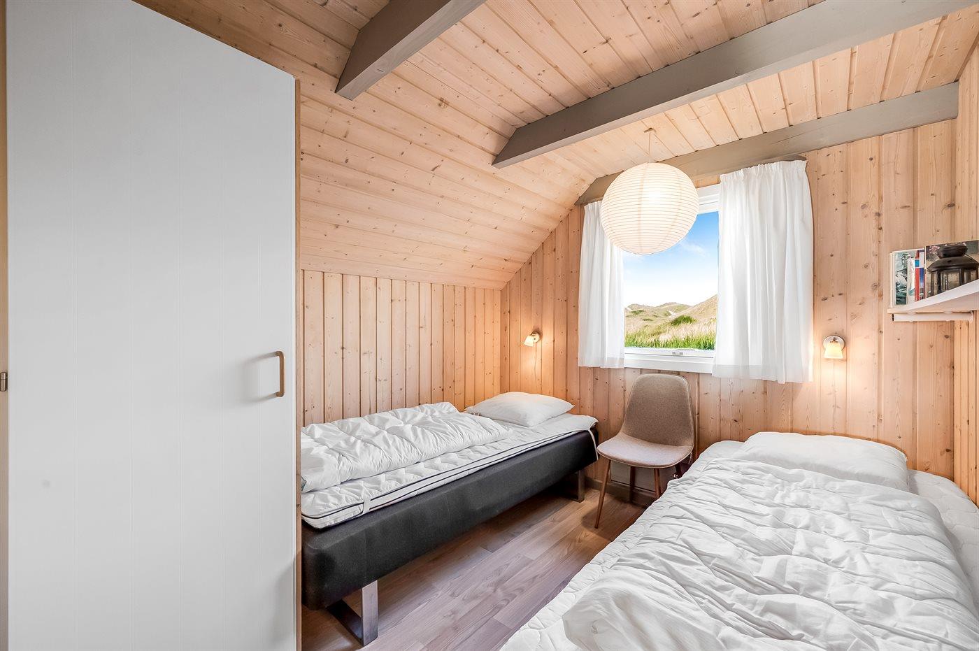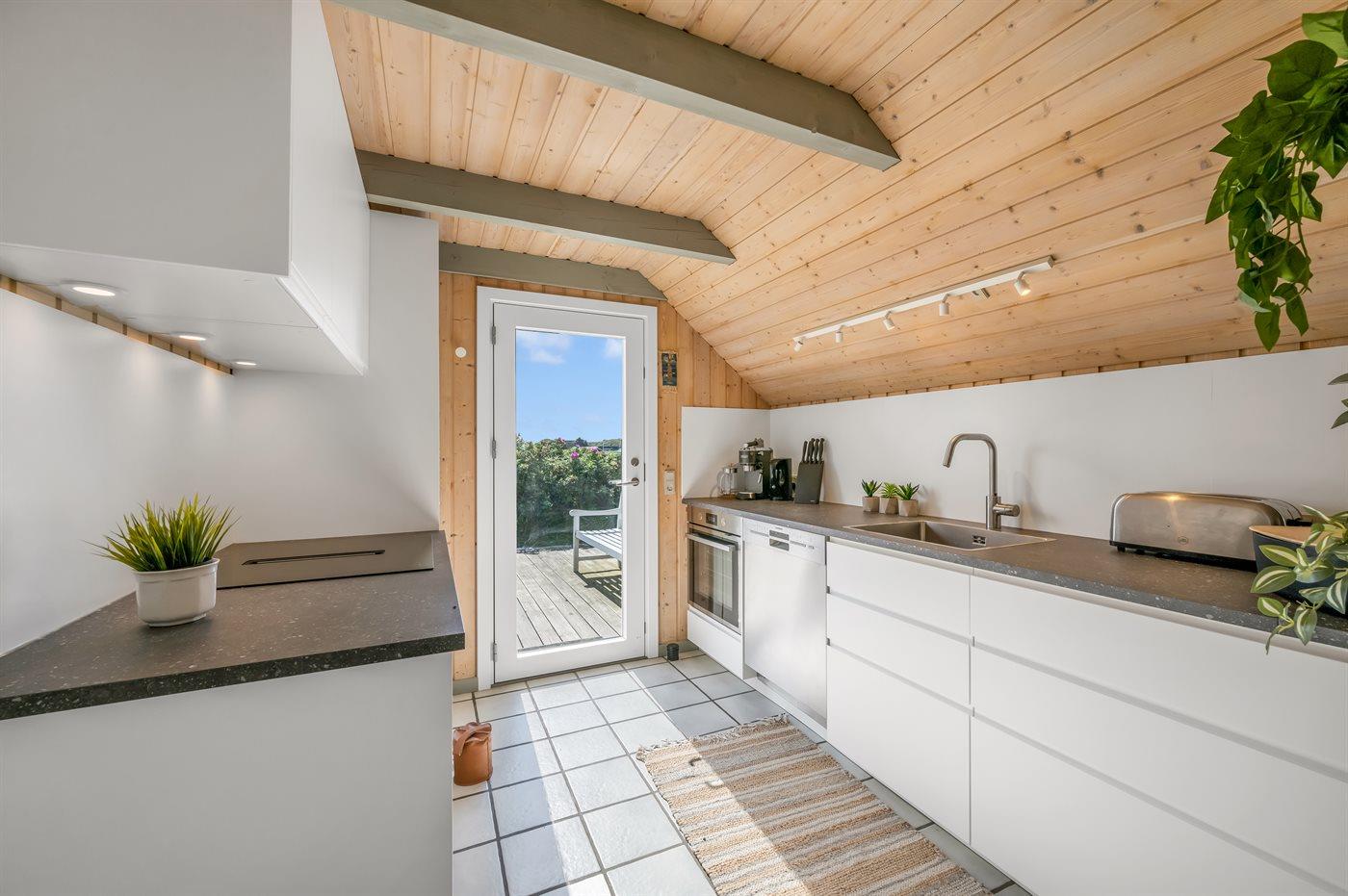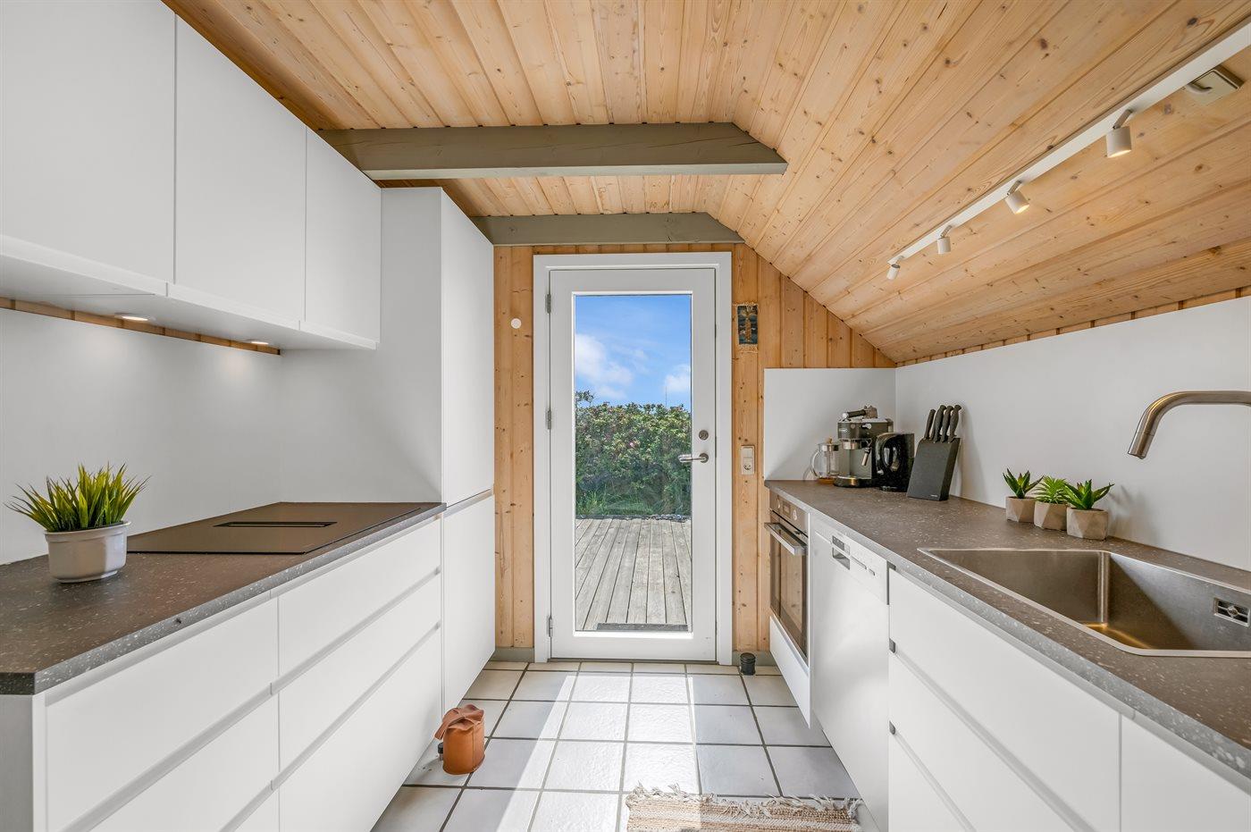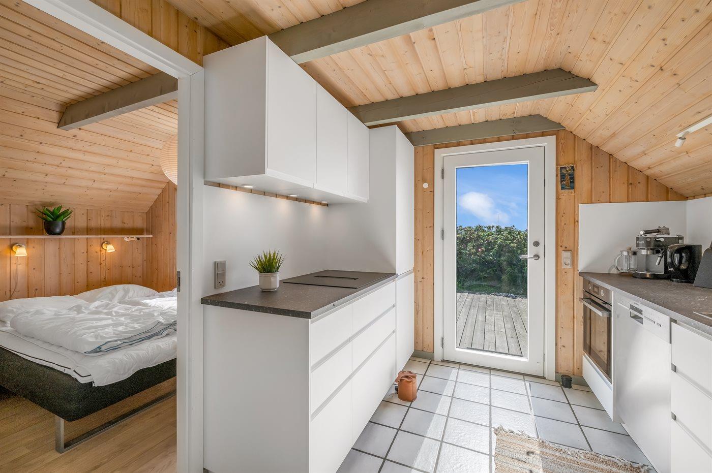 In Houvig, auf einem Grundstück in einem hügeligen Dünengebiet nördlich von Söndervig, liegt dieses schöne und gepflegte Ferienhaus. Vom Ferienhaus haben Sie eine herrliche Aussicht auf die Dünen und auf der Terrasse können Sie dem rauschen der Nordsee lauschen. Vom Grundstück aus haben Sie ferner Aussicht auf den Fjord.