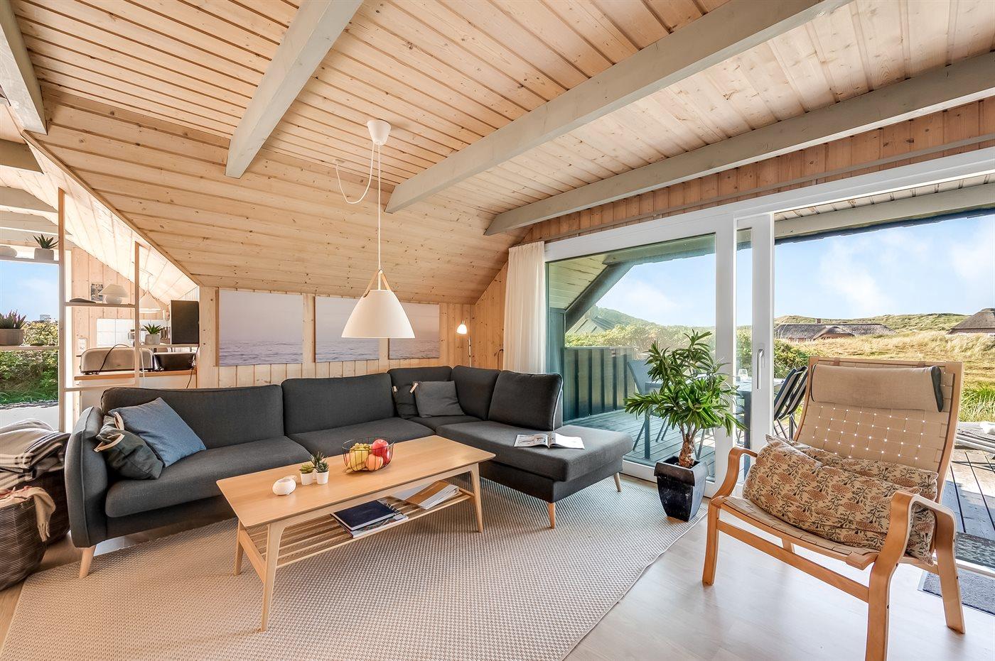Gemütliches Ferienhaus in Houvig mit Blick auf Dünen und Nordsee, Sauna und moderner Ausstattung für erholsame Tage.