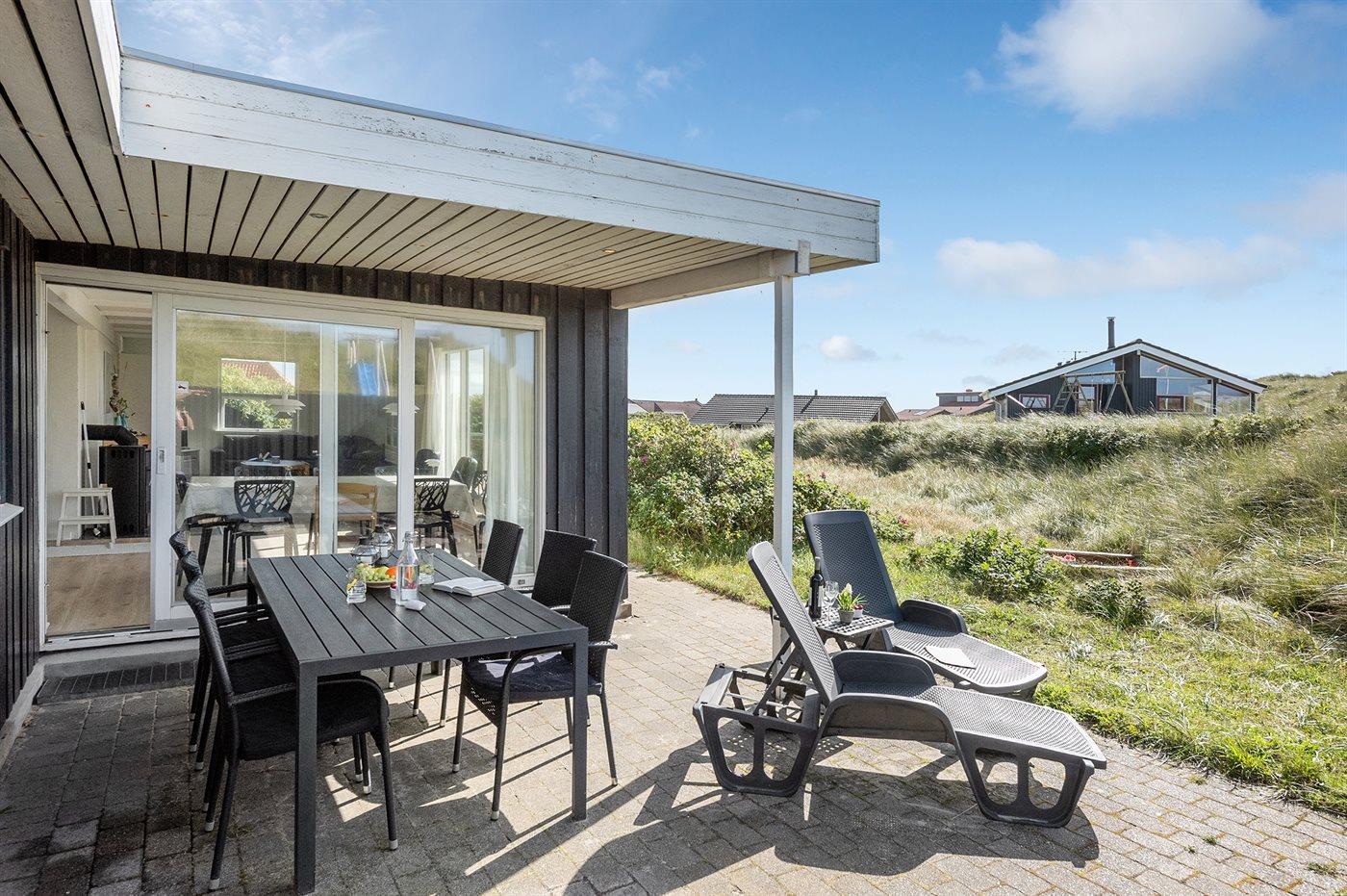 Auf einem schönen, leicht hügeligen Dünengrundstück, nur 200 m von der Nordsee entfernt und mit herrlicher Aussicht auf die Dünen liegt dieses besonders schöne und gemütlich eingerichtete Ferienhaus. Das Haus ist gepflegt und laufend modernisiert, letztens 2020 mit u.a neuer Küche, Badezimmer, Fußböden, Wohnzimmer und Mobilar. Zum Haus gehören eine teilweise überdachte und abgeschirmte Terrasse in Richtung Westen und eine abgeschirmte Terrasse in Richtung Osten. Somit können Sie sich an sonnigen Tagen den ganzen Tag hindurch auf den Terrassen aufhalten.