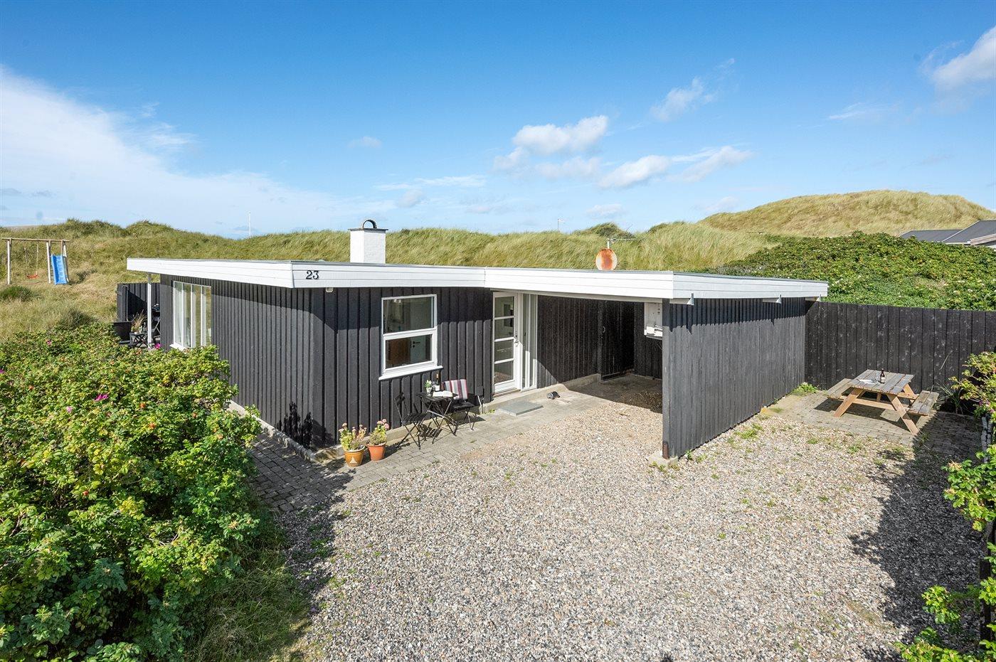 Die Ferienunterkunft liegt auf einem 2500 m² großen Dünengrundstück. Die Entfernung zum Meer beträgt 200 m. Die nächste Einkaufsmöglichkeit liegt 3000 m entfernt. Es steht ein 30 m² Terrassenareal zur Verfügung. Außerdem gibt es 6 m² überdachte Terrasse. Schaukel. Sandkasten. Außendusche. Es steht ein Grill zur Verfügung. Es steht ein Carport zur Verfügung. Parkplatz auf dem Grundstück.