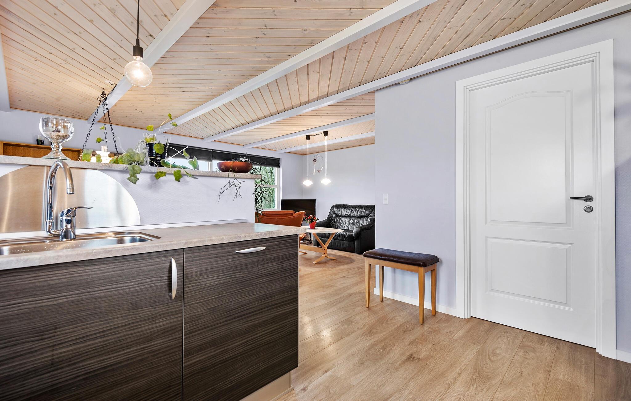 Verbringen Sie Ihren nächsten Urlaub in diesem charmanten Ferienhaus, das Ihnen Erholung und Komfort inmitten der malerischen Landschaft von Hovborg bietet. Lassen Sie den Alltagsstress hinter sich und tauchen Sie ein in die Ruhe und Schönheit der Umgebung. Das lichtdurchflutete Innere des Hauses kombiniert moderne Eleganz mit Gemütlichkeit. Der großzügige Wohnbereich mit bequemen Sitzgelegenheiten lädt zum Entspannen ein. Genießen Sie die Aussicht auf die Natur durch die großen Panoramafenster oder machen Sie es sich mit einem Buch gemütlich. Die offene Küche ist gut ausgestattet und bietet alles, was Sie benötigen, um Ihre Lieblingsgerichte zuzubereiten. Essen Sie gemeinsam am schönen Holzesstisch, der Platz für die ganze Familie bietet.