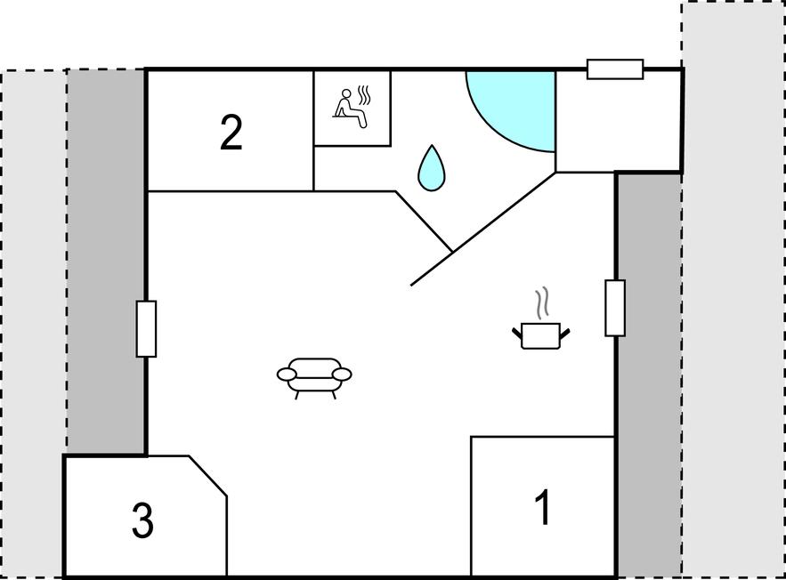 Badezimmer 8m2 (nr. 1) - WC. Warmes und kaltes Wasser. Dusche