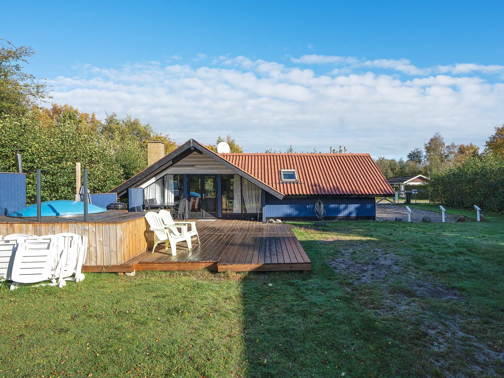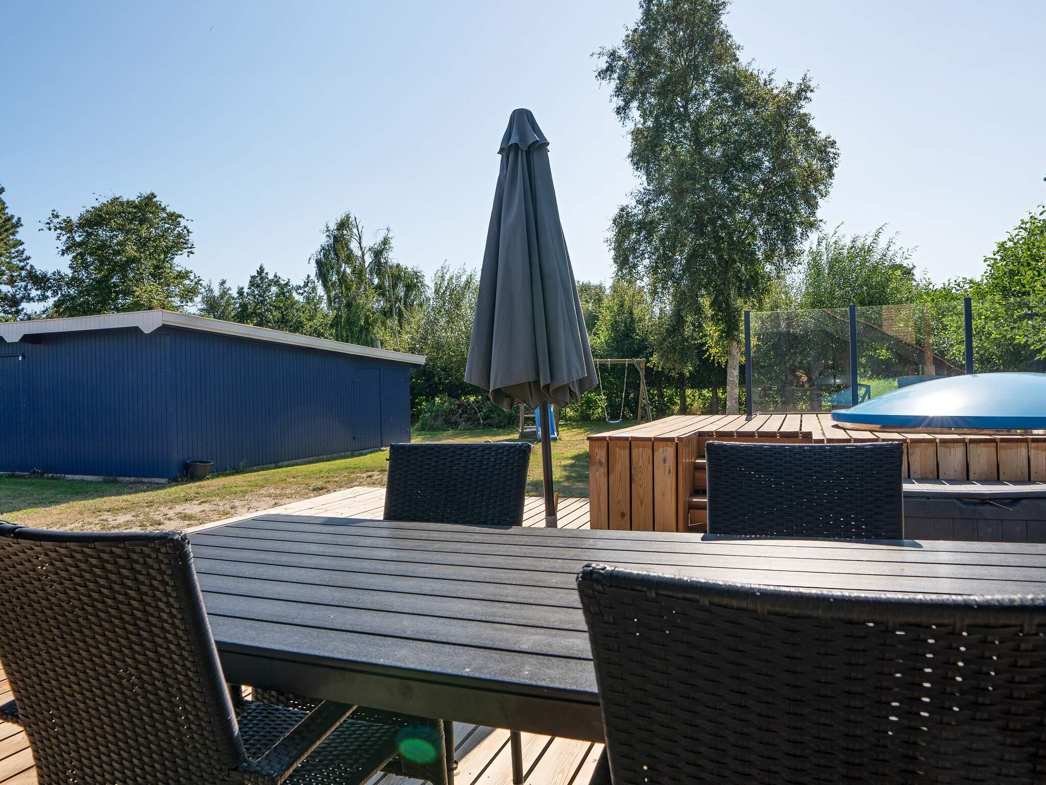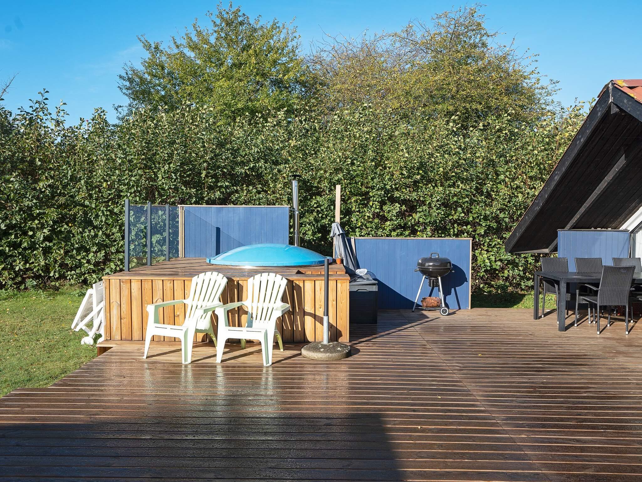 Die große Terrasse bietet zudem Platz zum Sonnenbaden und für Grillabende im Freien. Die Rasenfläche davor dient als Spielplatz der Kinder. Für die Kleinen stehen dort ein Klettergerüst mit Rutsche und Schaukel bereit. Nebenan gibt es am Den Gamle Digegaard eine Petanquebahn für Erwachsene sowie einen Spielplatz, Restaurant, Räucherei und Eisdiele. Der Strand ist nur wenige Gehminuten vom Haus entfernt. Sie können auf dem Deich radeln.