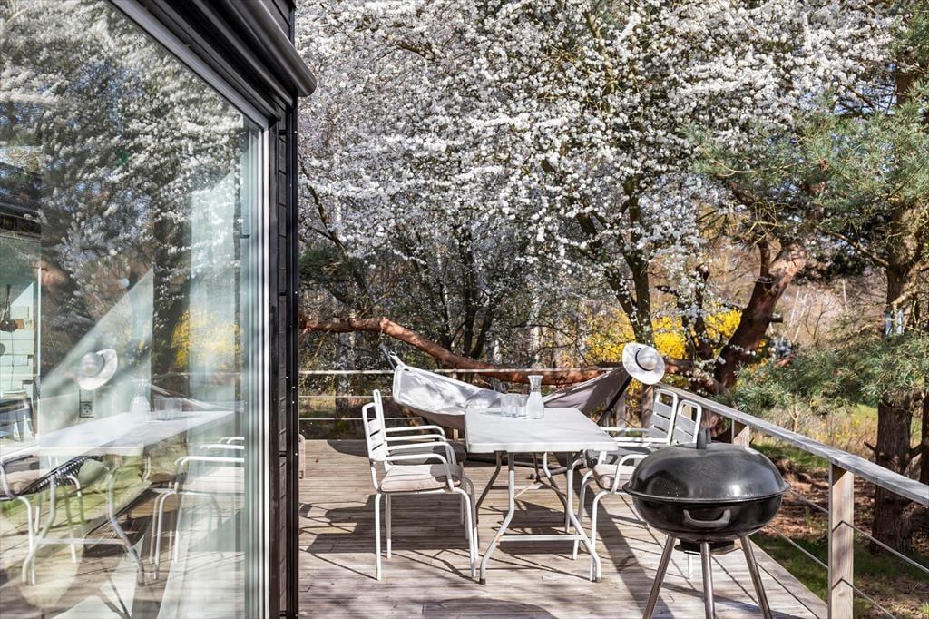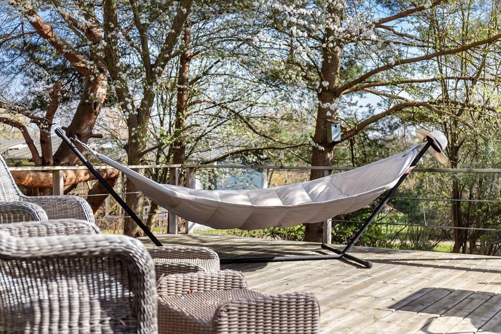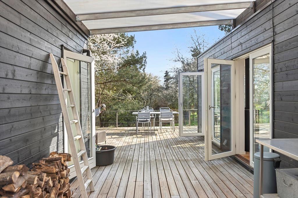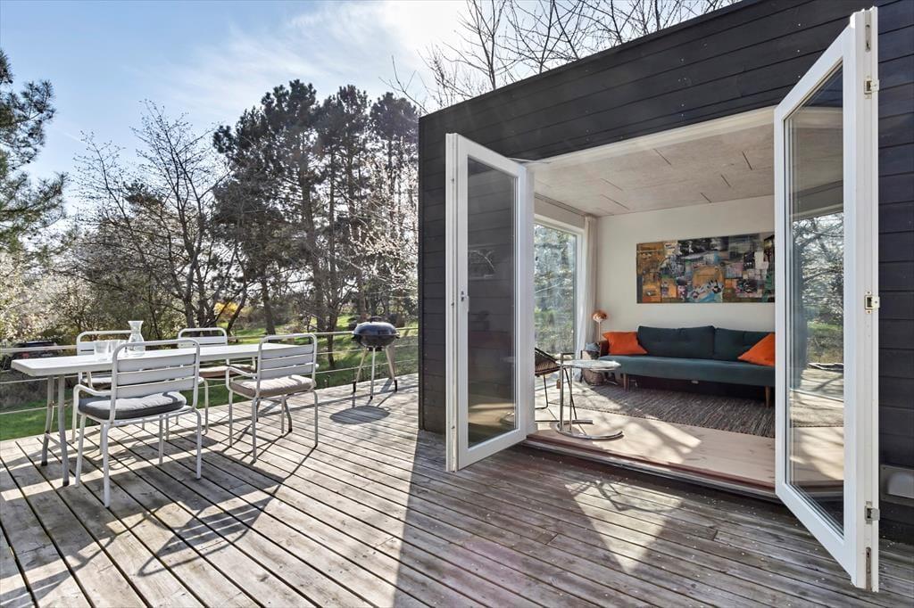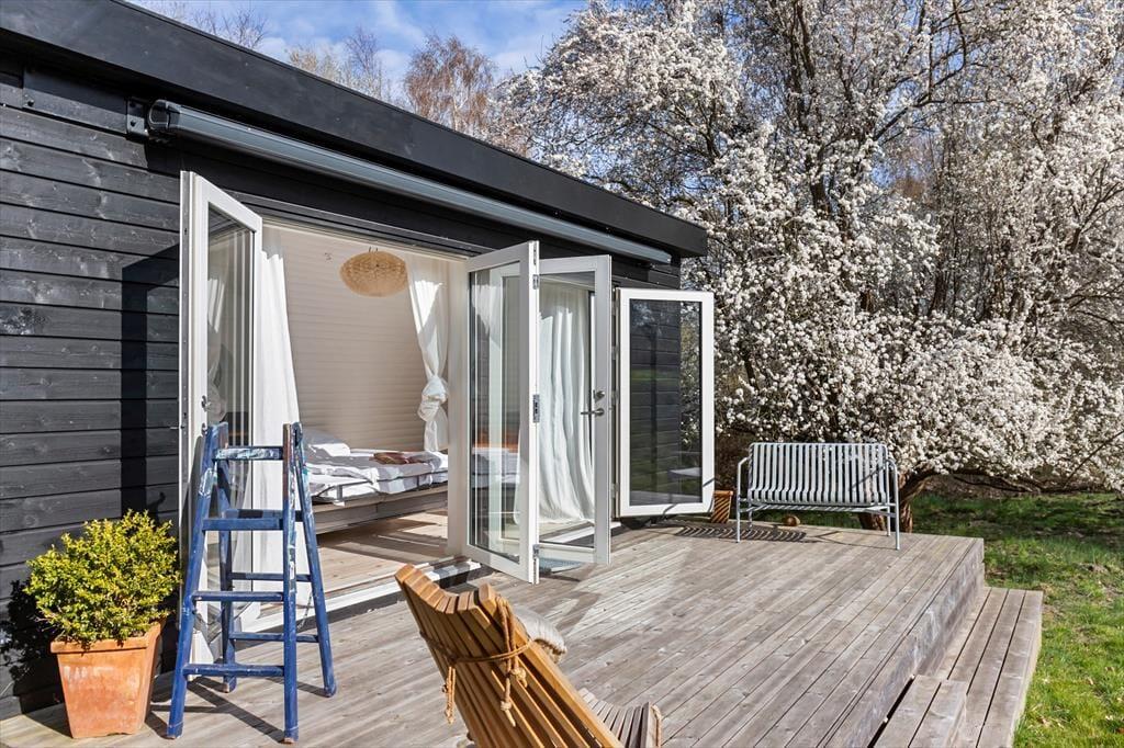 Willkommen in einem modernen und atmosphärischen Ferienhaus im begehrten Gebiet bei Kikhavn in Hundested. Das Haus besteht aus drei miteinander verbundenen Modulen und vereint nordisches Design mit Funktionalität und Komfort. Im zentralen Modul befindet sich ein offener Küchen- und Essbereich – ideal für geselliges Beisammensein und gemütliche Abendessen. Von hier aus gelangt man auf eine überdachte Terrasse, auf der man den Morgenkaffee geschützt vor dem Tau genießen oder an heißen Tagen im Schatten entspannen kann. Das Modul ist elegant mit dem Badezimmer und dem Schlafzimmer verbunden, und im Garten wartet ein schönes Annex mit zwei zusätzlichen Schlafplätzen – perfekt für Gäste oder Teenager, die etwas Privatsphäre wünschen.