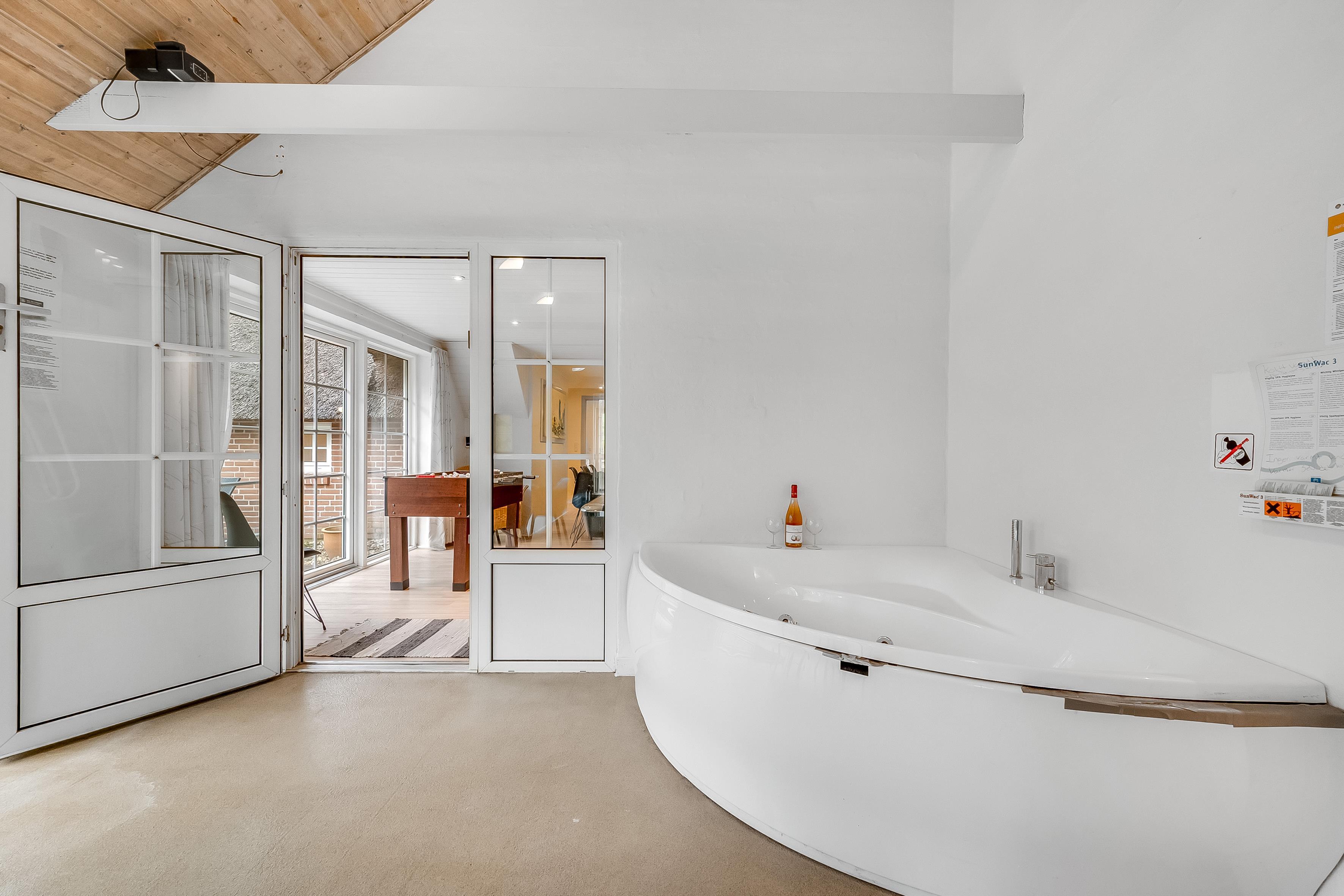 Das Haus bietet eine helle und geräumige Küche mit Essbereich, in der Sie eine gut ausgestattete Küche mit Backofen, 4 Ceran-Kochfeldern, Mikrowelle, Geschirrspüler, Kühlschrank und 59 Liter Gefrierfach finden. Im Wohnzimmer können Sie sich in der schönen Sofaecke vor dem großen Flachbildfernseher mit Chromecast, Satellitenschüssel und Radio entspannen. Weitere Unterhaltung finden Sie im Wohnzimmer mit einem Tischfußballtisch und Airhockey Natürlich gibt es auch eine stabile WLAN-Verbindung im Poolhaus.