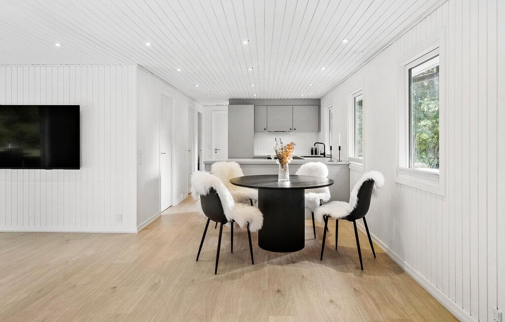 Dieses Haus empfängt Sie mit einem ebenso modernen wie minimalistischen Ambiente. Bodentiefe Fenster, bequemes Mobiliar und dezente Farben schaffen eine harmonische Atmosphäre, in der Sie schnell zur Ruhe kommen. Streamen Sie die neuesten Serien, verbringen Sie einen vergnügten Spieleabend oder lauschen Sie Ihrer Lieblingsmusik, während das Feuer leise im Kaminofen knistert.