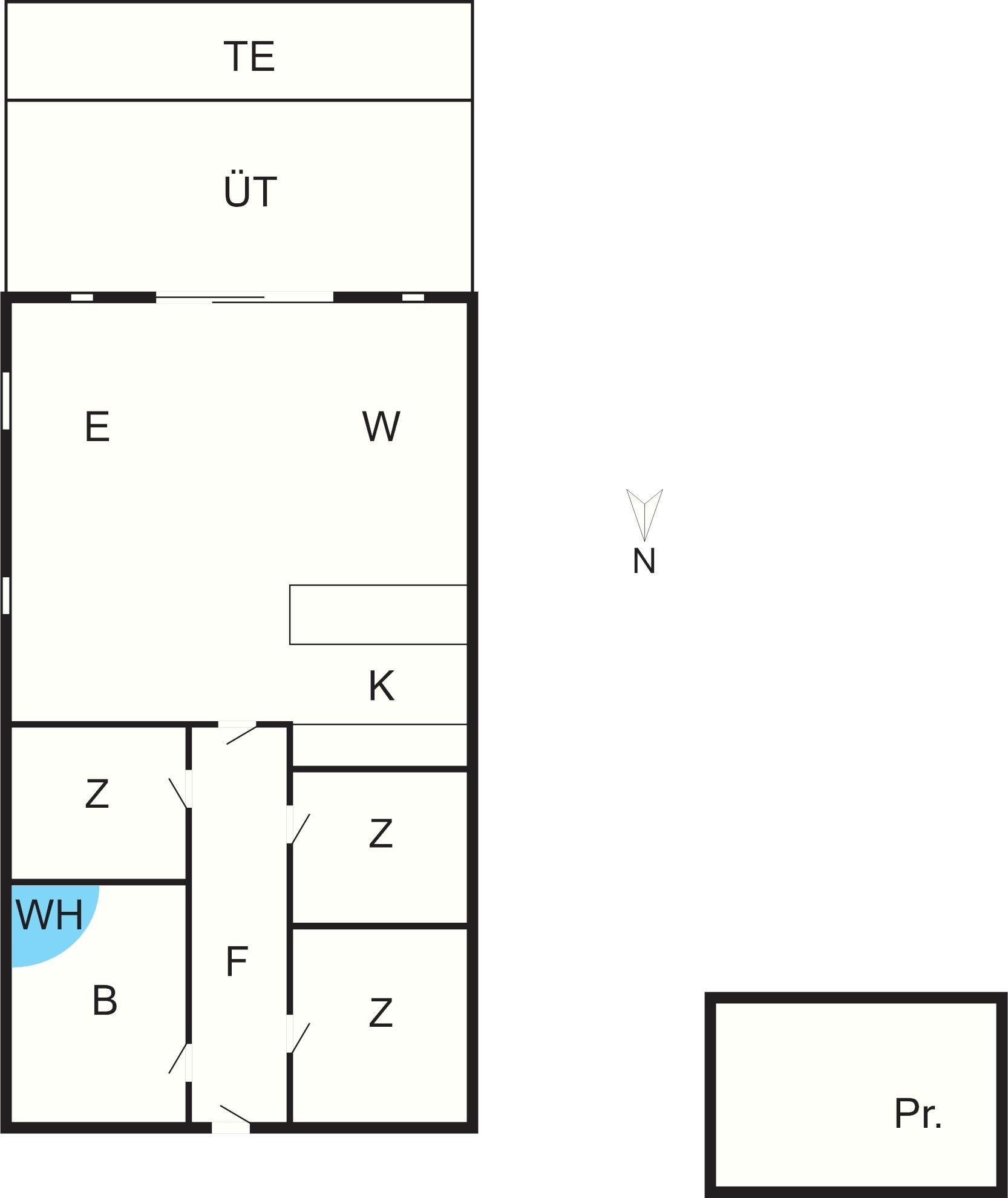Bad: Waschm., WC, Waschb., Dusche, Fußbodenheiz.