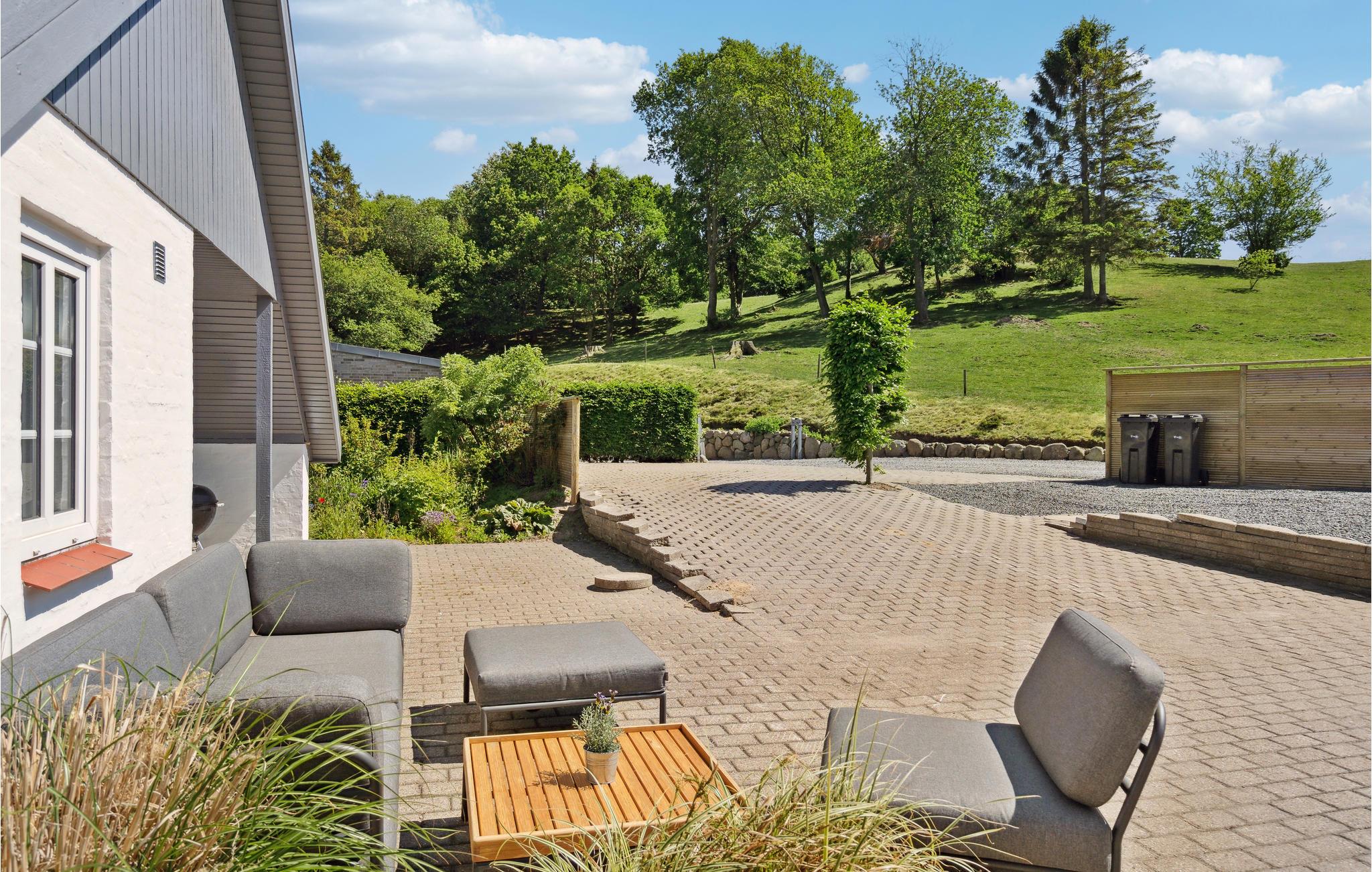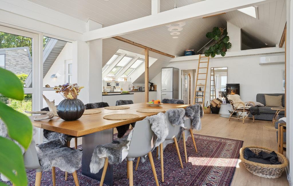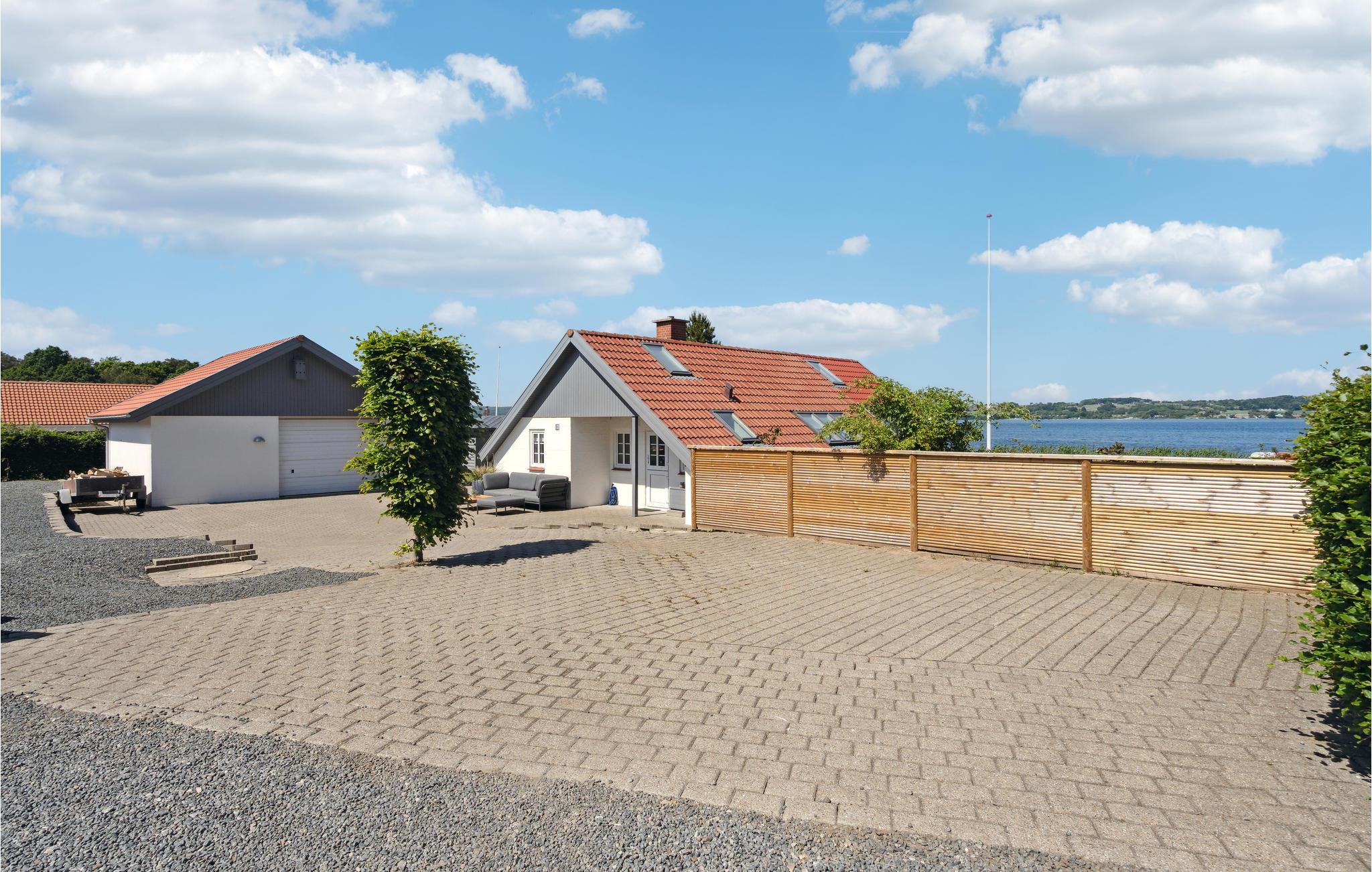 Willkommen in diesem wunderbar gelegenen Ferienhaus, das Sie in Sichtweite des Vejle Fjords empfängt. Das Haus bezaubert mit einer wohnlichen Einrichtung. Speisen Sie hier am langen Esstisch mit unvergleichlichem Fjordpanorama. Das Wohnzimmer wird schnell zum Zentrum der gemeinsamen Aktivitäten, machen Sie es sich am Kaminofen gemütlich und sehen Sie nach einem erlebnisreichen Tag zusammen Ihre Lieblingsserie an. Nach einem Spaziergang in der Natur bietet die Sauna herrliche Entspannung.