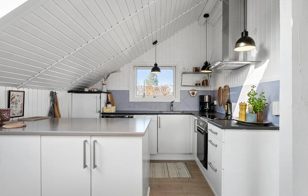 Ihr Urlaubsdomizil in Hvidbjerg kombiniert modernes Design mit gemütlichem Wohnkomfort, ideal für eine Auszeit vom Alltag. Der offene Wohnbereich besticht ein helles Ambiente, große Fensterflächen und viel Tageslicht. Genießen Sie den Blick ins Grüne direkt vom Sofa aus oder lassen Sie beim Kochen in der schönen Küche Ihrer Kreativität freien Lauf.