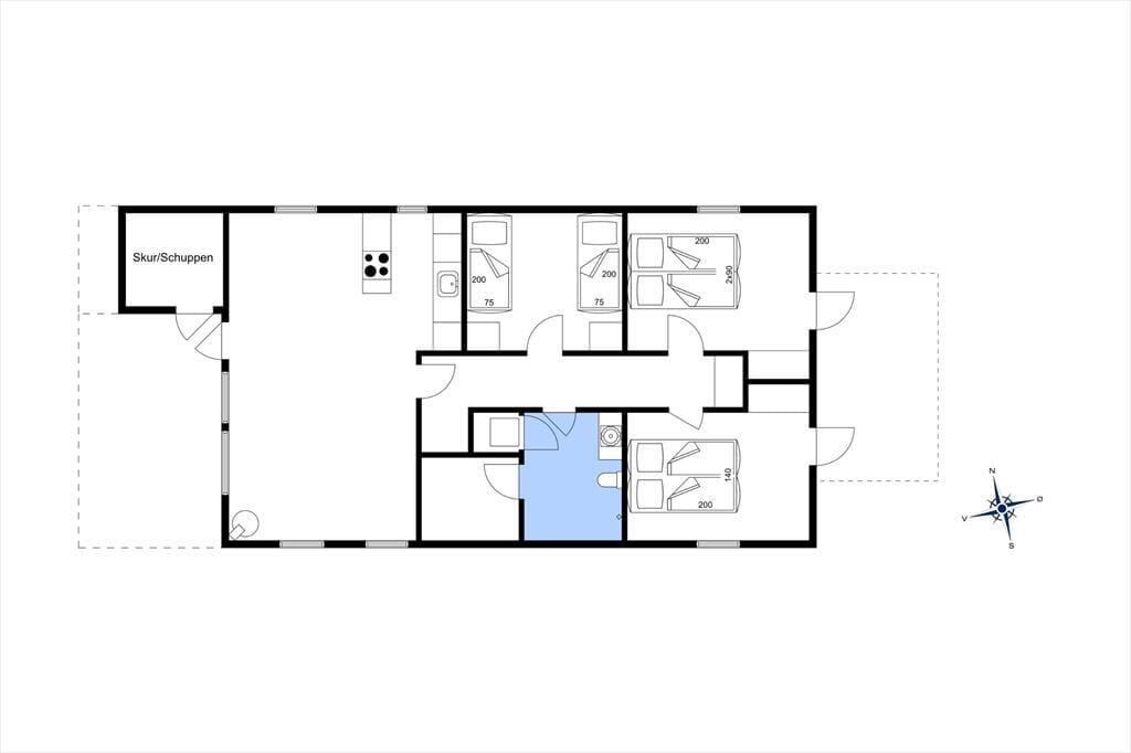 Das Ferienhaus bietet auf 87 gut eingerichteten Quadratmetern unter anderem drei Schlafzimmer und ein Duschbad, das gleich neben einer Sauna liegt. Die letztgenannte ist perfekt, wenn Sie von einer Surftour oder einem kühlen Bad in der Nordsee zurückkommen. Im Flur stehen Waschmaschine und Trockner zur Nutzung bereit.
