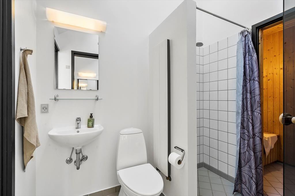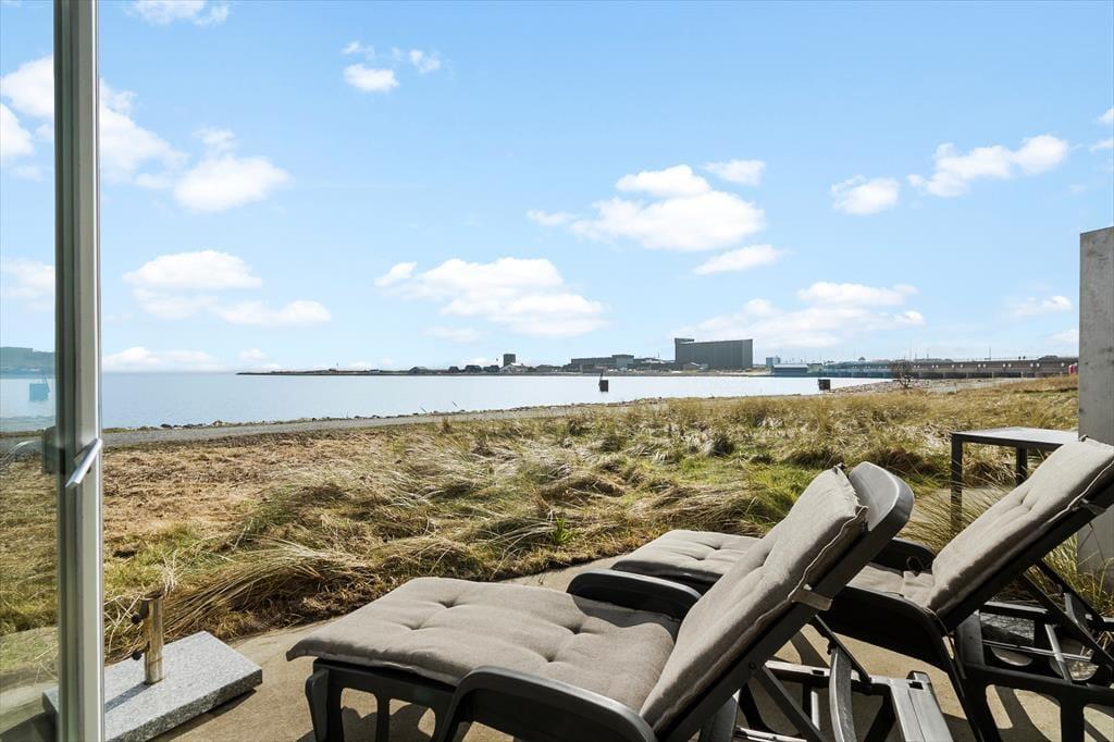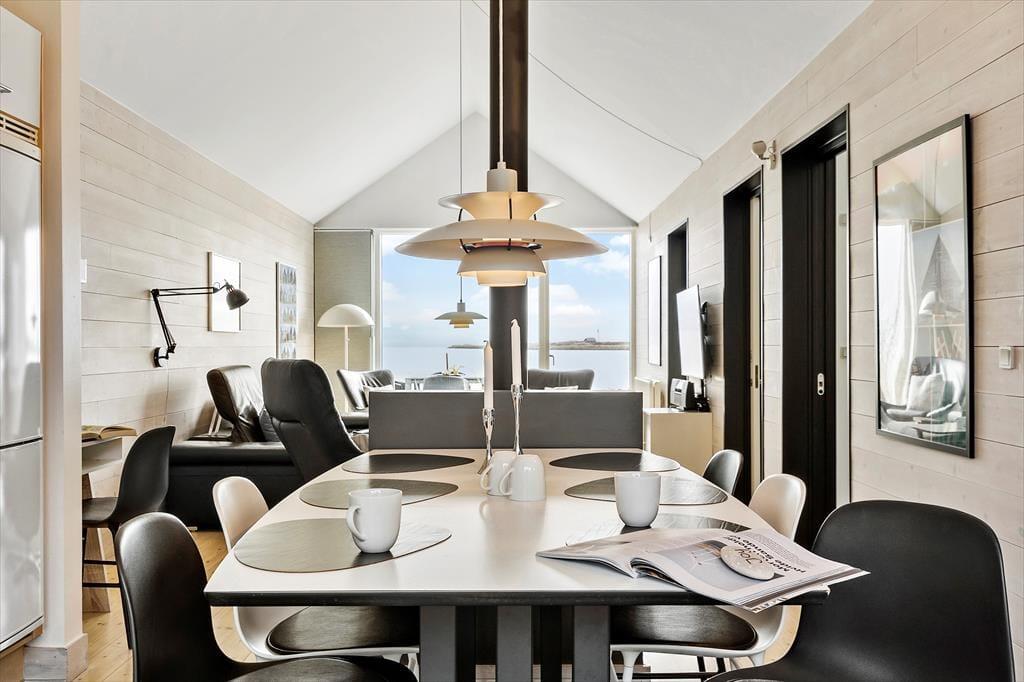 Die beiden Schlafzimmer beinhalten jeweils zwei Schlafplätze, sodass sich das Haus gut für zwei befreundete Paare oder eine kleine Familie eignet. Einer der Schlafräume verwöhnt mit einem TV und einem Zugang zum Hinterhof. Der andere verfügt ebenfalls über einen TV und begeistert mit einem Ausblick auf den Fjord und einem Ausgang auf die Südterrasse. Die beiden Badezimmer verleihen Ihren Urlaubstagen Wellnessflair. Während eines mit einem Whirlpool besticht, überzeugt das andere mit einer Duschnische und einer Sauna. Der Rest der Wohnfläche ist dem großen, offenen Aufenthaltsbereich gewidmet, der Sie mit hohen Decken, einem Kaminofen, einem durchströmenden Tageslichteinfall, einem prachtvollen Fjordblick und einem insgesamt richtig schönen Wohnambiente empfängt. In der gut ausgestatteten Küche bereiten Sie gemeinsam die Mahlzeiten zu, die Sie im Anschluss am Essplatz genießen. Nach einem guten Essen laden die komfortable Polstergarnitur und der Flachbild-TV mit Streaming-Möglichkeit zu entspannten Abenden ein.