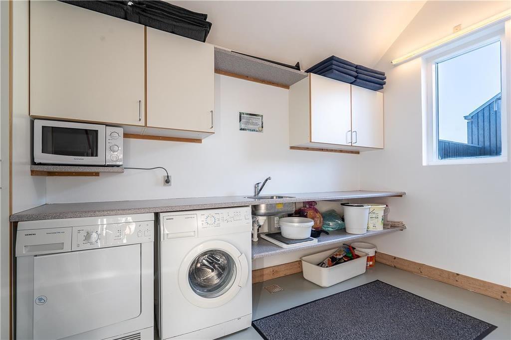 Die nach Süden ausgerichtete Terrasse ist der perfekte Ort, um bei einer kühlen Erfrischung in der Sonne zu entspannen und die Aussicht zu genießen. Im geschützten Garten des Innenhofs können Sie grillen und die Mahlzeiten des Tages im Freien einnehmen. Außerdem gibt es eine integrierte Garage und ein Nebengebäude mit einem Hauswirtschaftsraum, das mit einer Waschmaschine, einem Geschirrspüler und einem Gefrierschrank ausgestattet ist, sowie eine Hauswirtschaftsküche, in der Sie nach einem Angelausflug den Fang des Tages reinigen können.