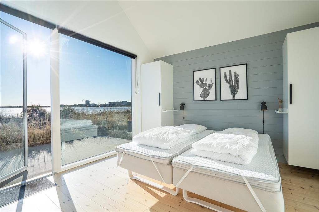 Eine unvergleichliche Aussicht ist inklusive, wenn Sie Ihre freien Tage in diesem attraktiven Ferienhaus in Hvide Sande buchen. Das Haus liegt in der ersten Reihe zum Ringkøbing Fjord, und von der sonnigen, nach Süden ausgerichteten Terrasse haben Sie einen völlig ungestörten Blick auf den Fjord und den Hafen.