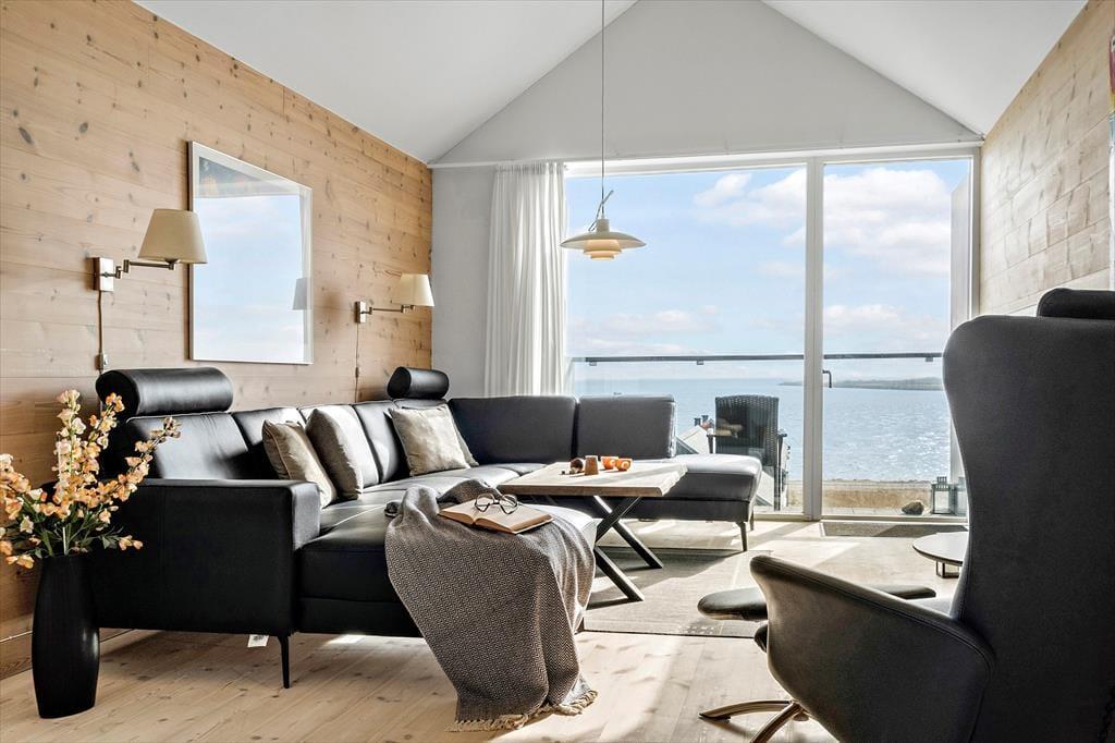 Vom Schlafraum im Erdgeschoss genießen Sie direkten Zugang zur sonnenverwöhnten Südterrasse, die einen teilweisen Blick auf das Wasser bietet. Ausgesprochen beeindruckend präsentiert sich der Fjordblick auf dem Balkon im Obergeschoss. Von hier aus lassen Sie Ihren Blick über das glitzernde Wasser, die Küstenlinie und die große Schleuse wandern. Für gänzlich ungestörte Momente ziehen Sie sich auf den komplett geschlossenen Innenhof zurück, der an der Nordseite des Hauses liegt.