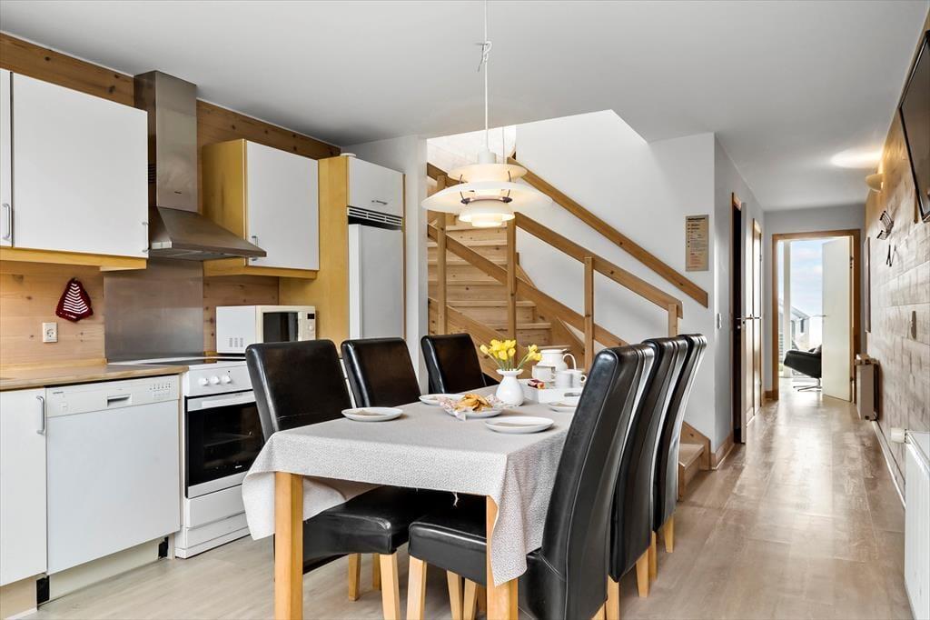 Wenn Sie Ihren Urlaub in Hvide Sande gern nah am Ortskern und nah an reizvoller Natur verbringen möchten, dann sollten Sie sich dieses Urlaubsdomizil unbedingt ein wenig genauer anschauen. Das große, attraktiv eingerichtete Reihenhaus befindet sich ganz nah an Schleuse und Zentrum. Im Wohnraum und in einem der Schlafzimmer genießen Sie einen schönen Blick über den Ringkøbing Fjord.