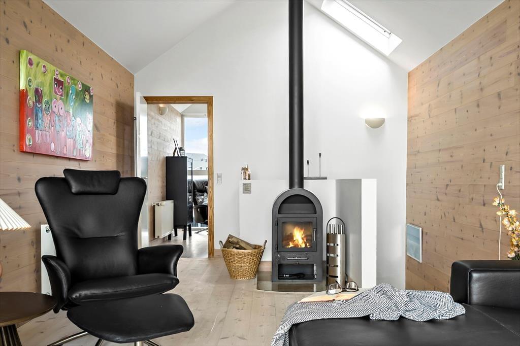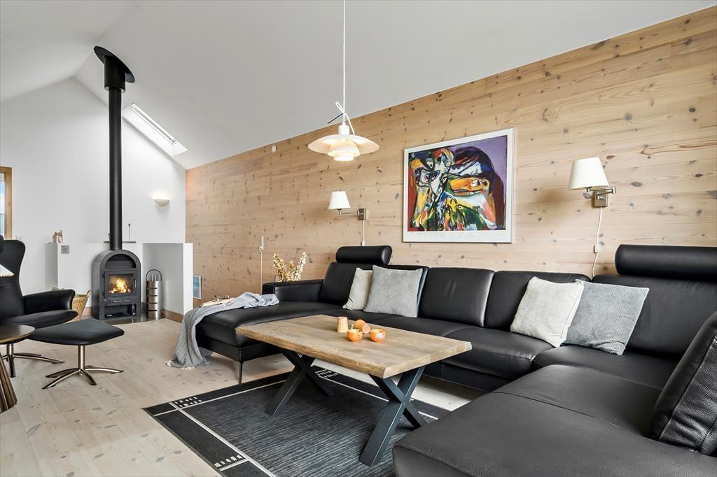 Das 116 m² große Qualitätshaus empfängt Sie mit einer ansprechenden Einrichtung und einer angenehmen Wohnatmosphäre. Die Raumaufteilung eignet sich perfekt für vier Urlauber, die sich auf zwei Schlafzimmer verteilen. Eines der Schlafzimmer befindet sich im Erdgeschoss und besticht mit bodentiefen Fenstern auf der Fjordseite. Der Rest des Erdgeschosses ist der guten Küche samt Essplatz und zwei guten Badezimmern gewidmet. Eines der Bäder verwöhnt mit einer Sauna, das andere begeistert mit einem Whirlpool. Über die Treppe gelangen Sie in das Obergeschoss, wo Sie ein schöner Wohnraum mit einem Kaminofen, einer komfortablen Polstergarnitur und einem Flachbild-TV erwartet. Das große Giebelfenster gewährleistet nicht nur einen schönen Tageslichteinfall von Süden, sondern eröffnet Ihnen zugleich einen wunderbaren Ausblick auf den Fjord. In diesem Raum werden Sie sich häufig und gern entspannen. Im Nebengebäude ist ein praktischer Hauswirtschaftsraum untergebracht, der eine Waschmaschine, einen Wäschetrockner, eine Gefriermöglichkeit und einen Fischreinigungsplatz beinhaltet.
