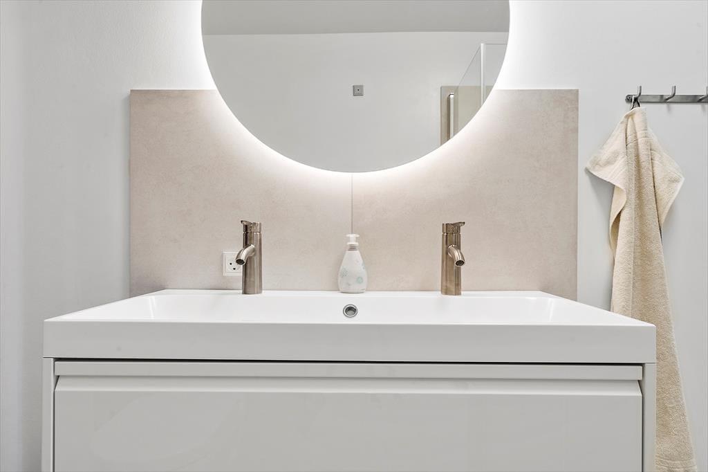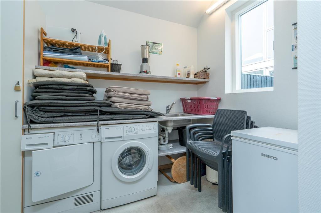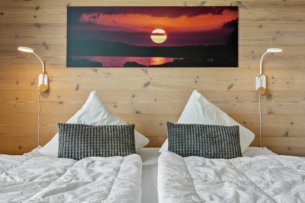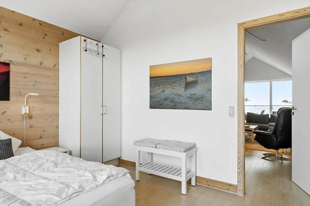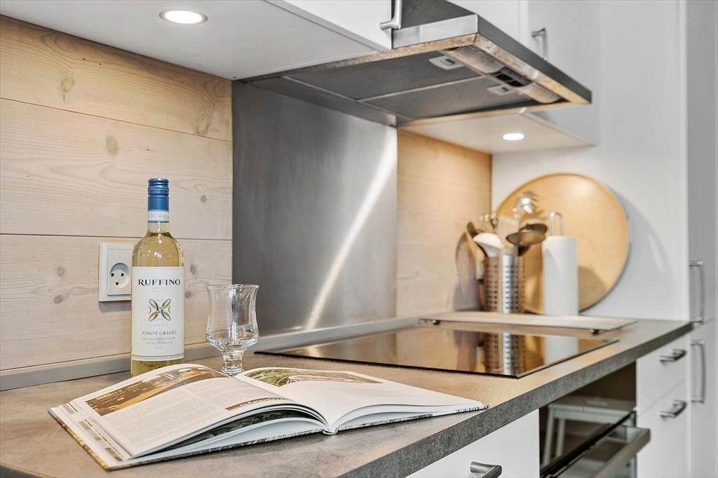 Das 116 m² große Reihenhaus überzeugt nicht nur mit guten Qualitätsmaterialien, sondern auch mit einer richtig liebevollen Einrichtung. Dies erkennen Sie unter anderem in der gut ausgestatteten Küche im Erdgeschoss und im Obergeschoss, wo Sie auf einen zusätzlichen Essplatz, komfortable Polstermöbel und einen Kaminofen treffen. Für Unterhaltung sorgt ein großer Flachbild-TV. Diesen werden Sie dank des großen Panoramafensters und des tollen Fjordblicks sicherlich nicht allzu oft nutzen. Nicht weniger schön ist der Ausblick im Schlafraum des Erdgeschosses. Der im Obergeschoss platzierte Schlafraum bietet Ihnen eine Aussicht über die Hausdächer im Norden. Im Haus gibt es 2 Badezimmer, die 2024 neu renoviert wurden und über einen großen Duschbereich verfügen. Das Nebengebäude beherbergt einen Hauswirtschaftsraum, wo Ihnen eine Waschmaschine, ein Wäschetrockner, ein Tiefkühler und ein Fischreinigungsplatz zur Verfügung stehen.