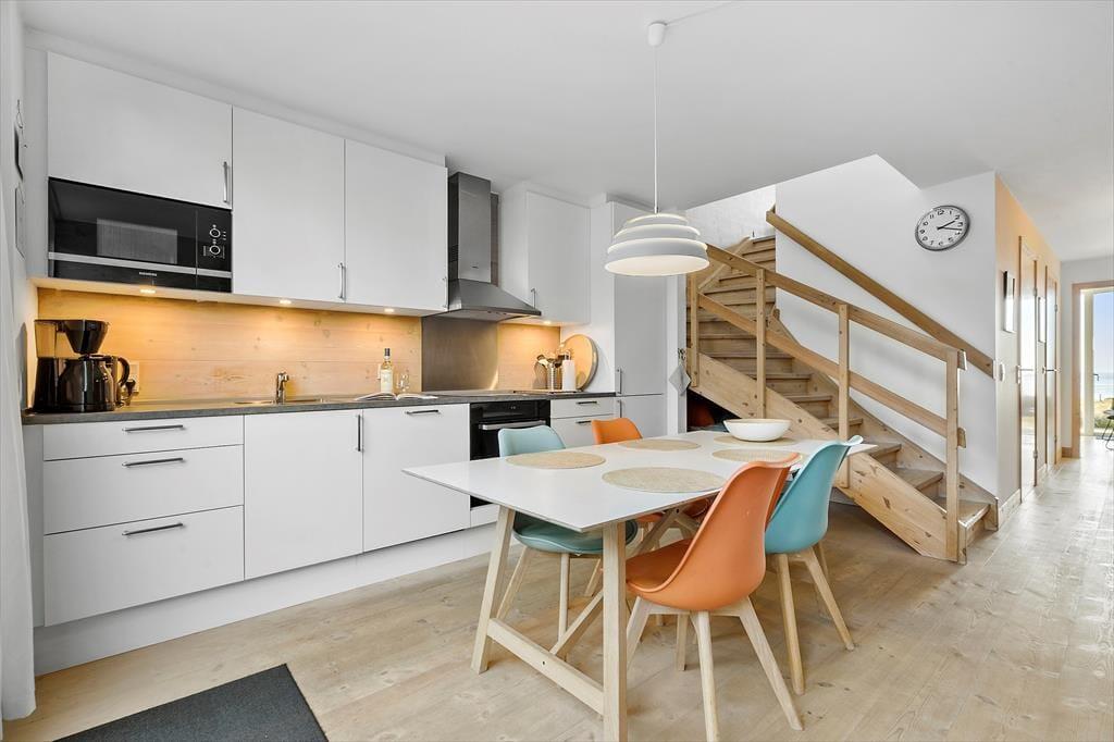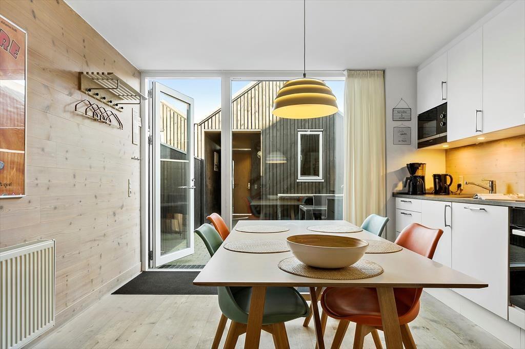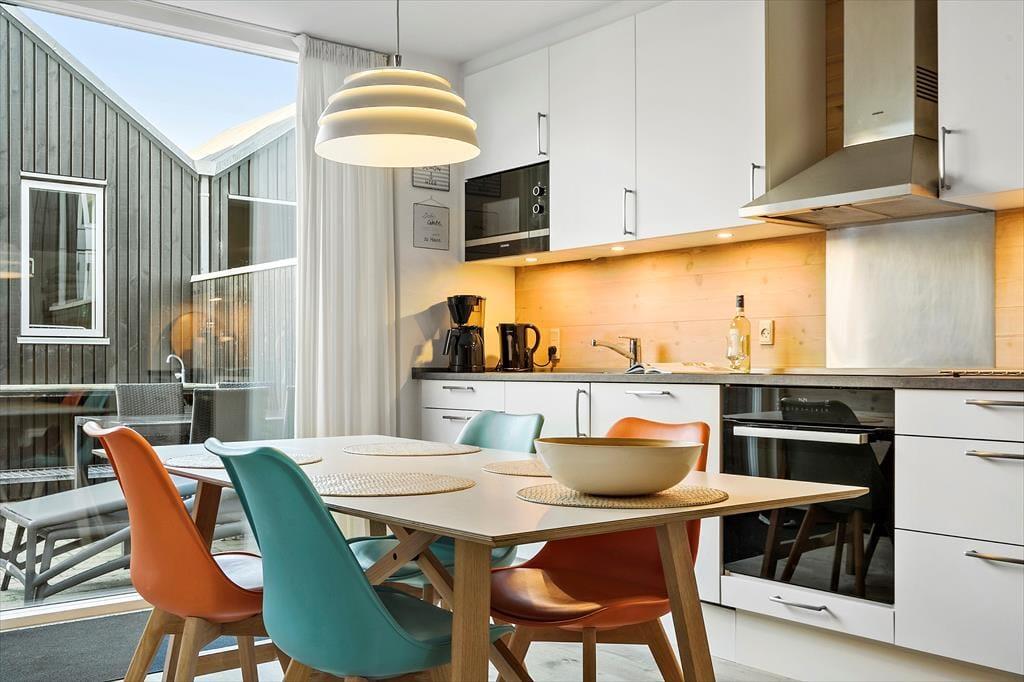 Das Reihenhaus ist Teil des modernen Ferienhauskomplexes "Slusehusene". Nur wenige Schritte trennen Sie vom Fjord. Zu Fuß erreichen Sie binnen kurzer Zeit den Ortskern mit interessanten Geschäften und guten Lokalitäten. Nach rund 15 Minuten stehen Sie am Nordseestrand, der zum Baden und zu ausgedehnten Spaziergängen einlädt. Nah am Haus erwartet Sie der reizvolle kleine Fjordhafen Tyskerhavn, in dem Sie den Fischerbooten beim Ein- und Auslaufen und beim Anlanden des Fangs zuschauen können. Die große Schleuse erfreut sich bei Anglern größter Beliebtheit. Je nach Jahreszeit können Sie hier hervorragend Makrelen, Heringe und Hornhechte fangen. Alternativ überzeugen Nordsee und Fjord mit guten Angelplätzen. Mehrere Put & Take-Seen sind in der näheren Umgebung ebenfalls vorhanden.