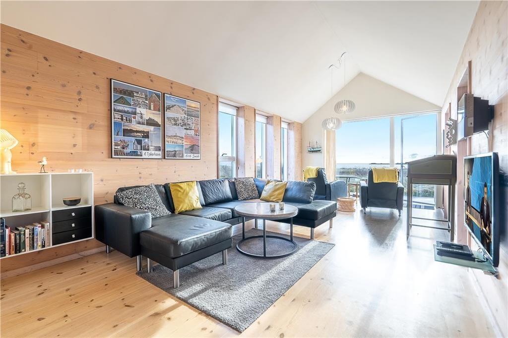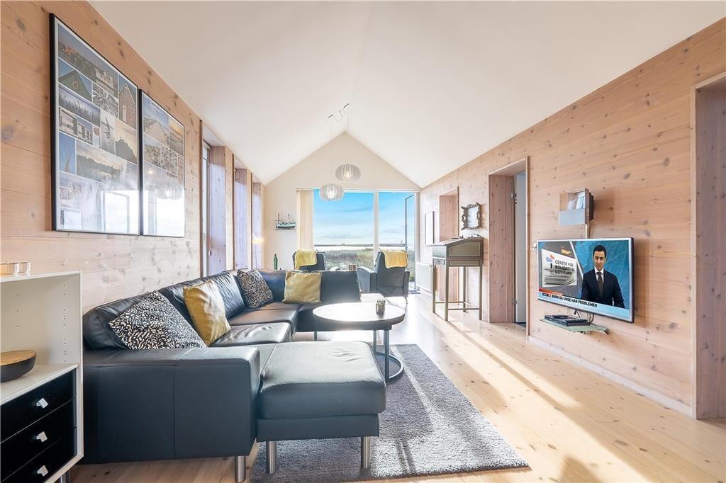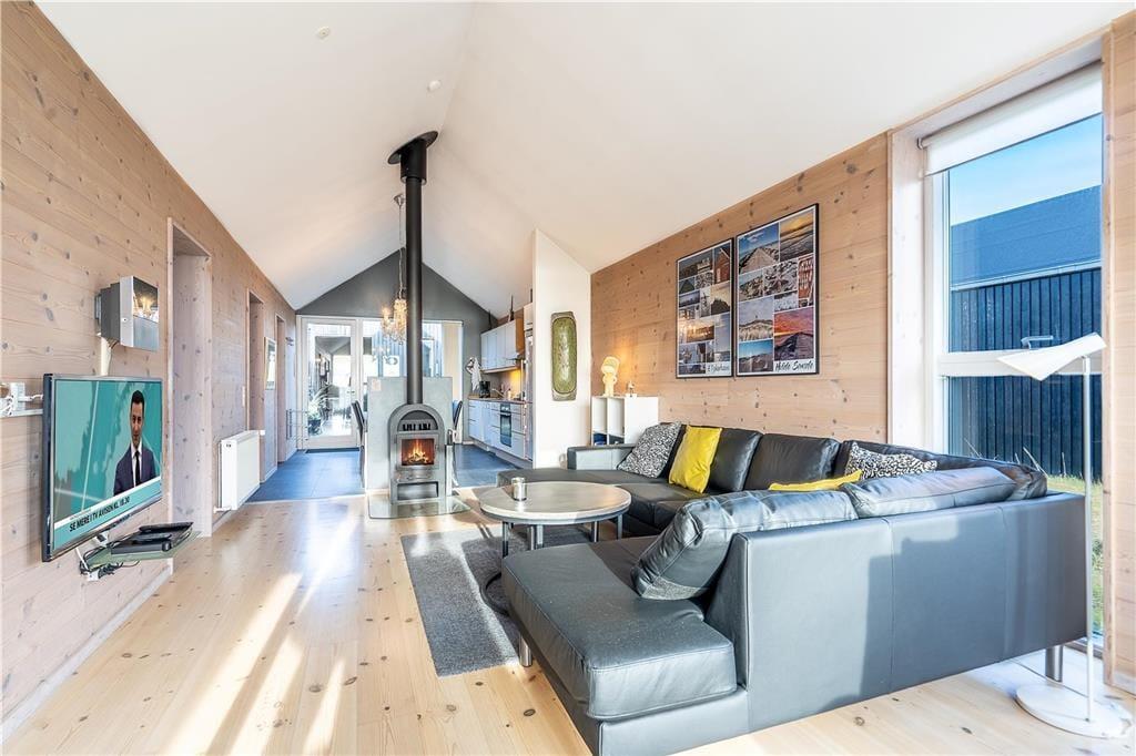 Das 113 m² große Haus aus dem Jahr 2006 ist Teil des beliebten Wohnkomplexes "Slusehusene", der in erster Reihe zum Ford liegt. Da es sich bei diesem Mietobjekt um ein Endreihenhaus handelt, werden Sie im Wohnraum mit Fenstern in zwei Himmelrichtungen verwöhnt. Dadurch wird nicht nur der Tageslichteinfall optimiert, sondern auch Ihre Fjordaussicht, die Sie lange in schöner Erinnerung behalten werden. Der Wohnraum überzeugt mit hohen Decken, einem Kaminofen und einer stilvollen, modernen Möblierung. An einem Ende des Raumes ist die offene Küche samt Essplatz platziert. Von hier aus gelangen Sie hinaus in einen schönen Hinterhof. Wenn Sie während der Sommermonate die großen Glastüren weit aufstellen, verschmelzen der Innen- und der Außenbereich förmlich miteinander. In den kühleren Jahreszeiten werden Sie eher die Sauna und den Whirlpool zu schätzen wissen, die sich auf die beiden Badezimmer verteilen. Angler dürfen sich auf das Nebengebäude freuen, in dem neben einer Waschmaschine und einem Wäschetrockner auch ein Fischreinigungsplatz untergebracht ist. Die sechs Schlafplätze verteilen sich auf drei Schlafzimmer, von denen das größte mit Fjordblick verzaubert.