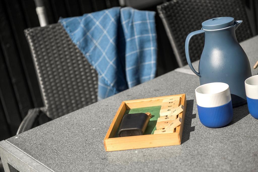 Unter freiem Himmel ist die Aussicht natürlich nicht minder schön. Die nach Süden gerichtete Terrasse ist ein herrliches Plätzchen, um die Landschaft, die frische Seeluft und die Sonne in vollen Zügen zu genießen. Alternativ erwartet Sie ein komplett geschlossener und daher ungestörter Hinterhof, wo Sie den Gartentisch decken und Ihren frisch gefangenen Fisch in gemütlicher Runde grillen können.