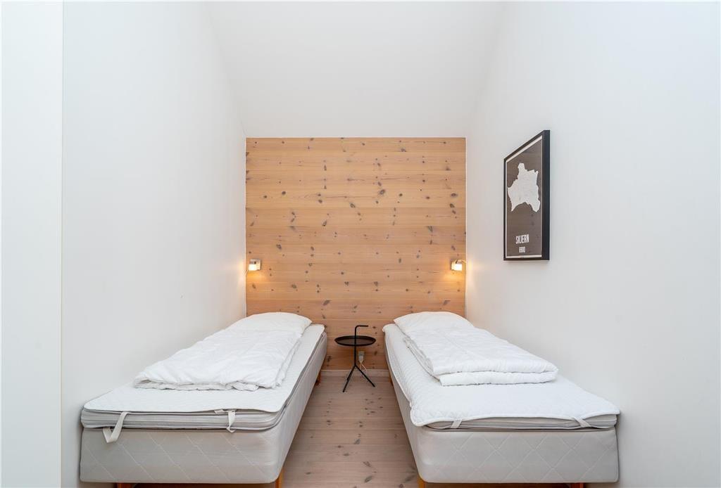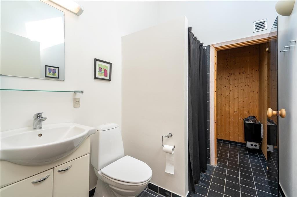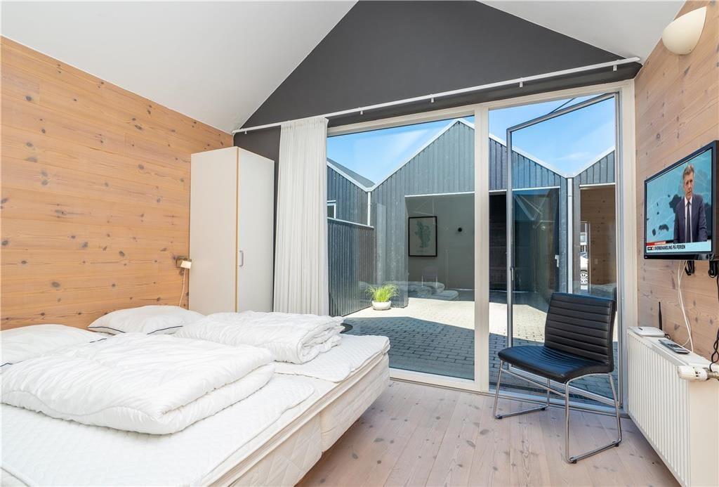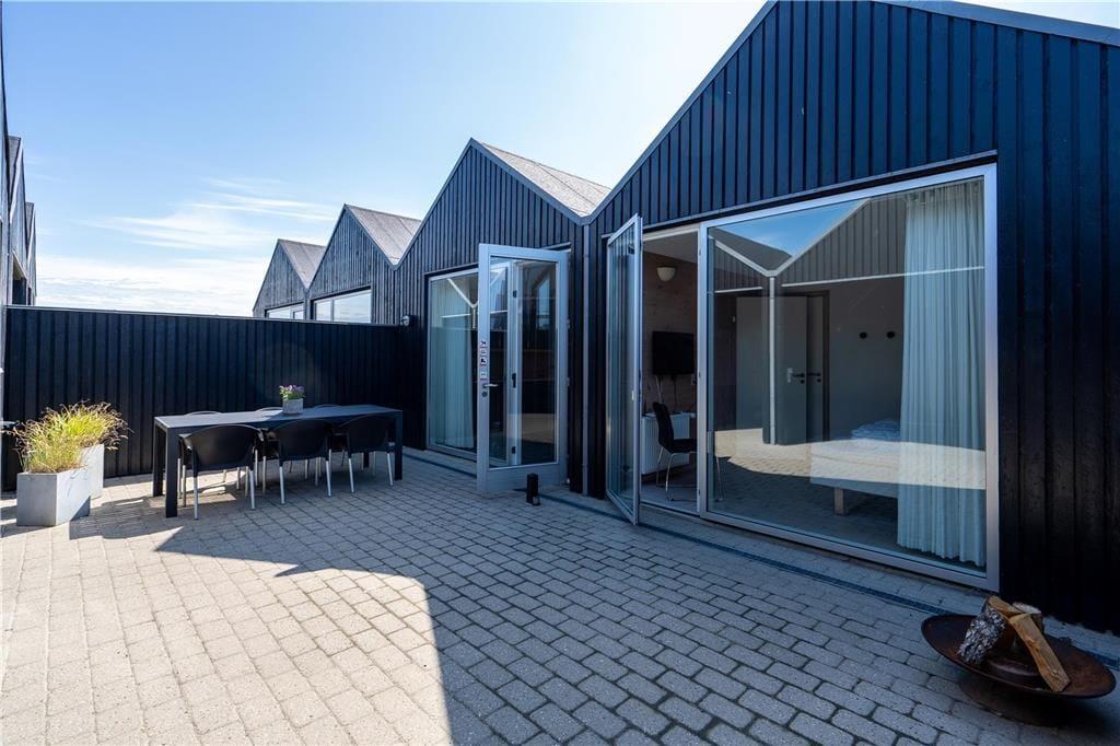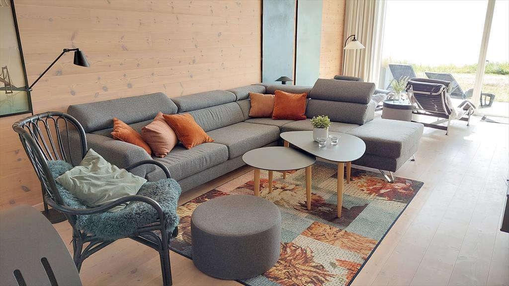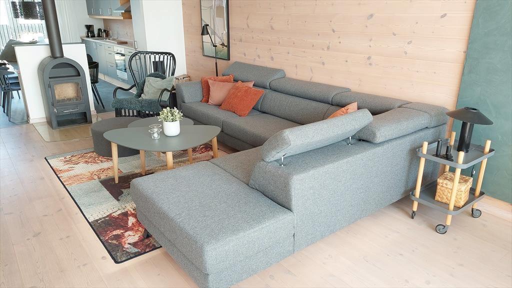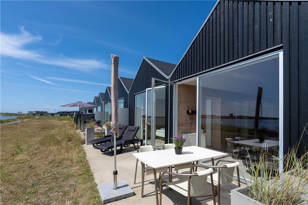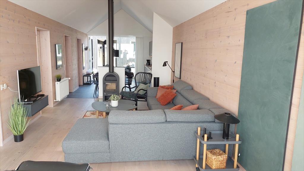 Dieses 113 m² große, hochwertige Reihenhaus ist Teil des beliebten Wohnkomplexes "Slusehusene". Große Fenster gen Süden lassen das Hausinnere mit der Fjordlandschaft verschmelzen. Dies gilt für den Wohnraum und das größte der insgesamt drei Schlafzimmer. Im Bett und auf den Sesseln genießen Sie einen wunderschönen Blick über das Wasser. Der Tageslichteinfall ist selbstverständlich ebenfalls sehr gut. In Kombination mit den hohen Decken und der durchweg stilvollen Einrichtung erwartet Sie in allen Räumlichkeiten eine sehr schöne Wohnatmosphäre. Mitten im Wohnraum ist ein Kaminofen platziert. An einem Ende des Wohnraums erwartet Sie die offene Küche, die angenehm viel Arbeitsfläche und einen Essplatz bietet. Der Rest der Wohnfläche ist zwei Badezimmern gewidmet, von denen eines mit einer Sauna und Dusche und das andere mit einem Whirlpool zu überzeugen weiß. Im Nebengebäude stehen Ihnen eine Waschmaschine, ein Wäschetrockner, eine Gefriermöglichkeit und ein Fischreinigungsplatz zur Verfügung.