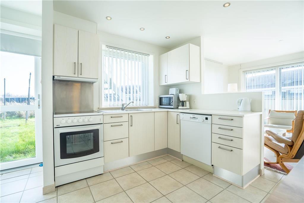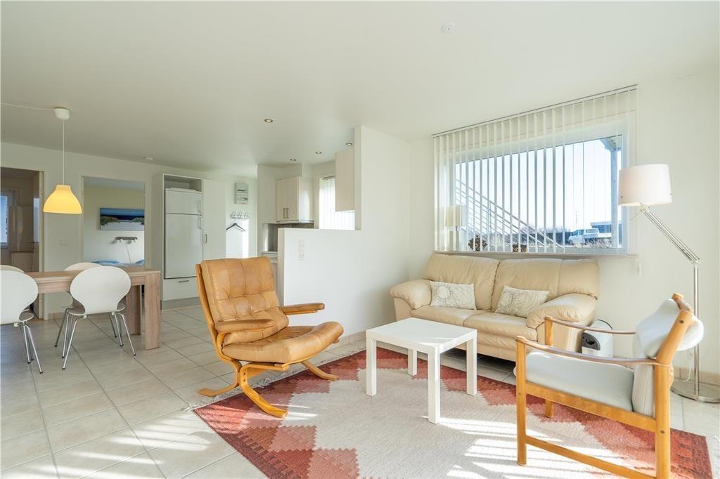 Bei diesem Urlaubsdomizil handelt es sich um eine 50 m² große, gut eingerichtete Erdgeschosswohnung, die sich in einem ansprechenden Gebäude aus dem Jahr 1968 befindet und im Jahr 2011 renoviert wurde. Das Wohnungsinnere besticht mit hellen Farbtönen und einer modernen, offenen Kombination aus Wohnraum und Küche. Alle Räume, einschließlich Badezimmer und Schlafraum, sind mit einer Fußbodenheizung versehen. Eine energiesparende Wärmepumpe hält die Heizkosten in der kühleren Jahreszeit in einem überschaubaren Rahmen. Im Wohnraum, in dem Polstermöbel und ein Flachbild-TV zu entspannten Stunden einladen, werden Sie mit Tageslicht aus zwei Himmelsrichtungen verwöhnt.