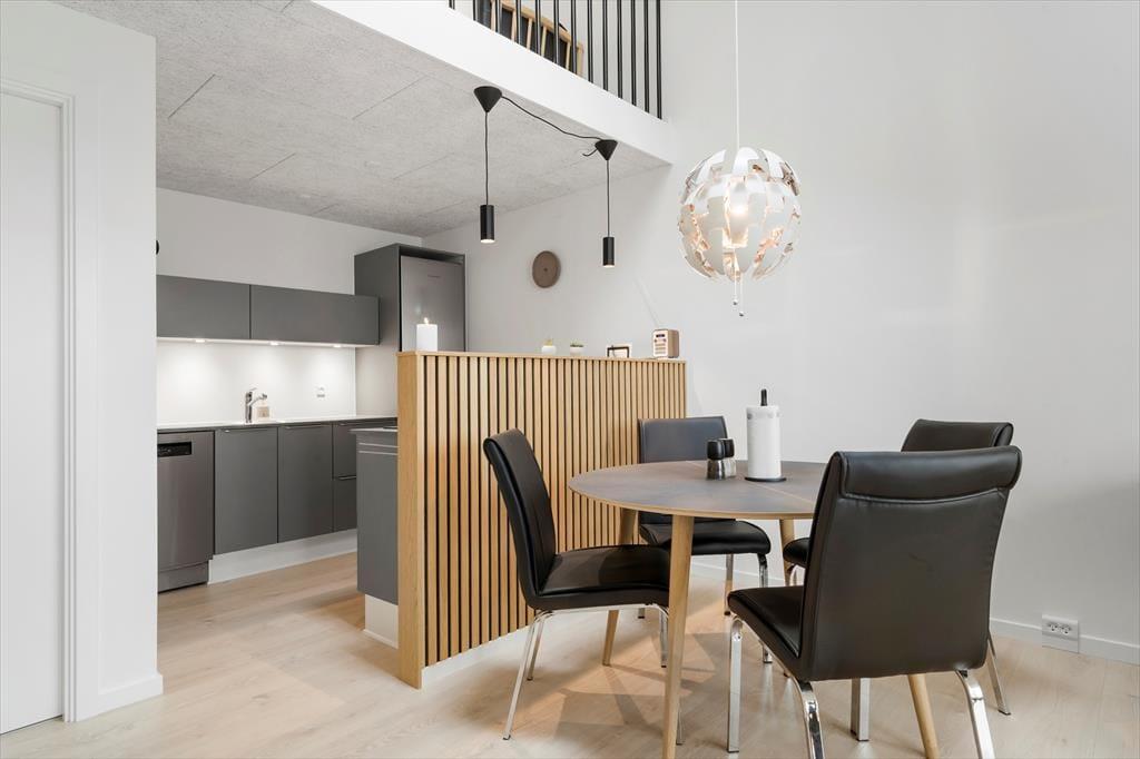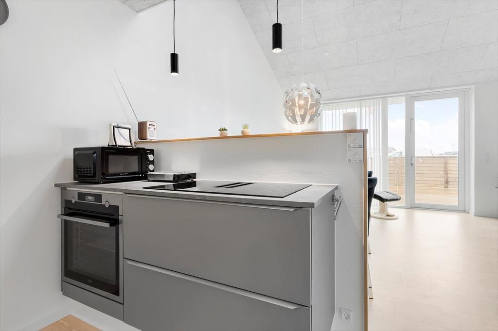 Dort, wo sich in früheren Zeiten das Hotel Holmsland Klit befand, erwartet Sie seit dem Jahr 2023 eine Reihe schöner, neu gebauter Ferienwohnungen. Diese helle und einladende Ferienwohnung verfügt über eine 54 m² große, gut aufgeteilte Wohnfläche. Sie setzt sich aus einem Schlafraum, einem Duschbadezimmer und einem Wohnraum samt integrierter Küche zusammen. Vom Wohnraum gelangen Sie über eine Treppe hinauf auf einen großen, offenen Hängeboden mit einer Fläche von weiteren 16 m². Auf dem Hängeboden steht ein Schlafsofa bereit, das sich gut für Kinder eignet. Das helle Badezimmer beinhaltet eine Waschmaschine und eine Fußbodenheizung. Die Küche verfügt über alles, was Sie während Ihres Aufenthalts benötigen. Hierzu zählen unter anderem ein Geschirrspüler und ein Herd mit eingebautem Dunstabzug. Weitere modernen Annehmlichkeiten erwarten Sie in Form von blitzschnellem Wi-Fi und eines Flachbild-TVs, der dänische, deutsche, schwedische und norwegische Sender empfängt.
