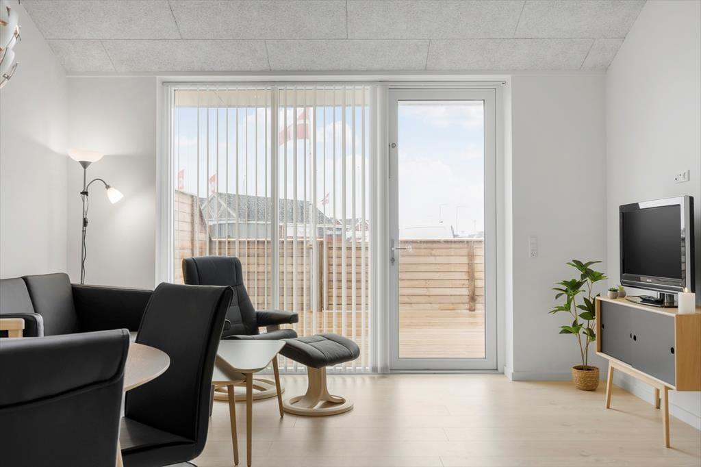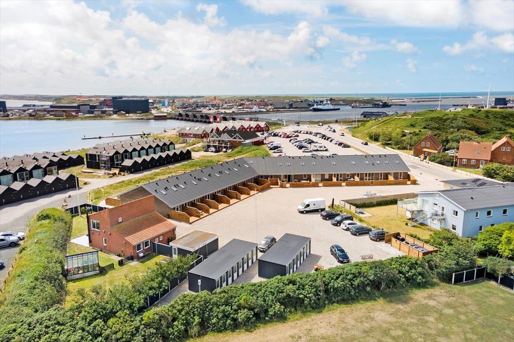 Die Lage der Wohnung ist ausgesprochen gut. Dies gilt insbesondere dann, wenn Sie einfachen Zugang zu Geschäften, Lokalitäten und städtischem Leben wünschen und zugleich nah am Wasser und am Strand wohnen möchten. Lediglich 150 Meter trennen das Mietobjekt von den guten, gefragten Angelplätzen am Hafen Hvide Sandes. Wenn Sie die große Schleuse überqueren, befinden Sie sich im Nu im Zentrum des Hafenortes, in dem es in den Sommermonaten lebendig und stimmungsvoll zugeht. Schnell erreicht ist darüber hinaus der am Ringkøbing Fjord gelegene Tyskerhavnen, der mit seiner authentischen, idyllischen Atmosphäre zu verzaubern weiß. Der ansprechende Nordseestrand ist ebenfalls fußläufig erreichbar. Per Fahrrad und Pkw gelangen Sie zügig in die wunderschöne, durch Dünenheideflächen geprägte Küstenlandschaft, die so prägend für Holmsland Klit ist.