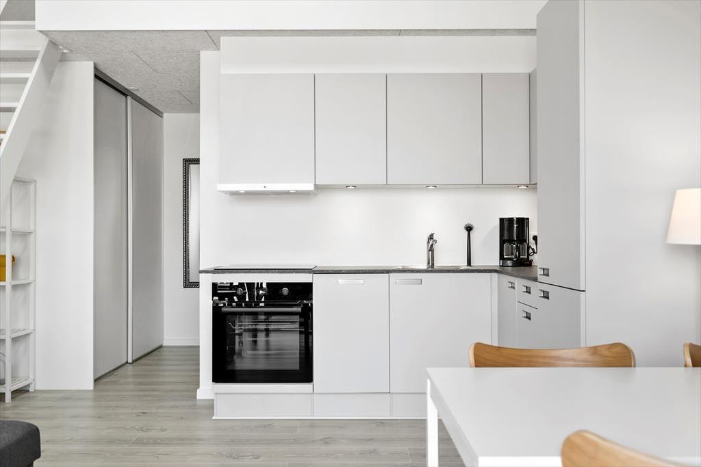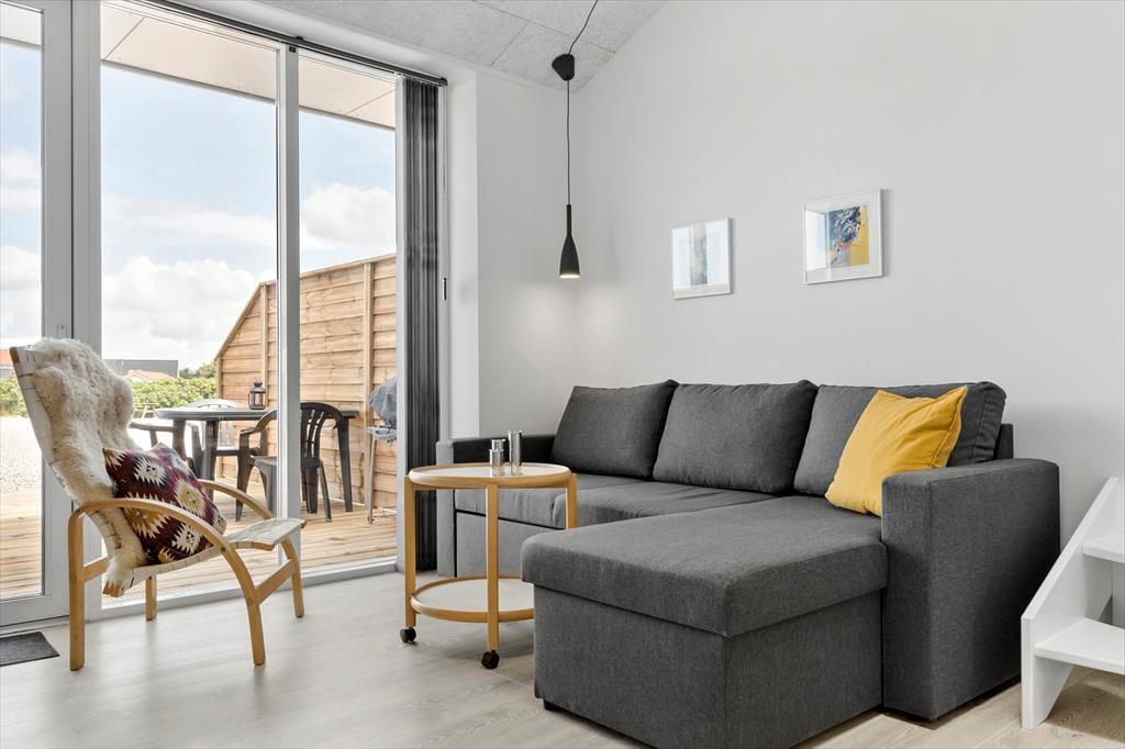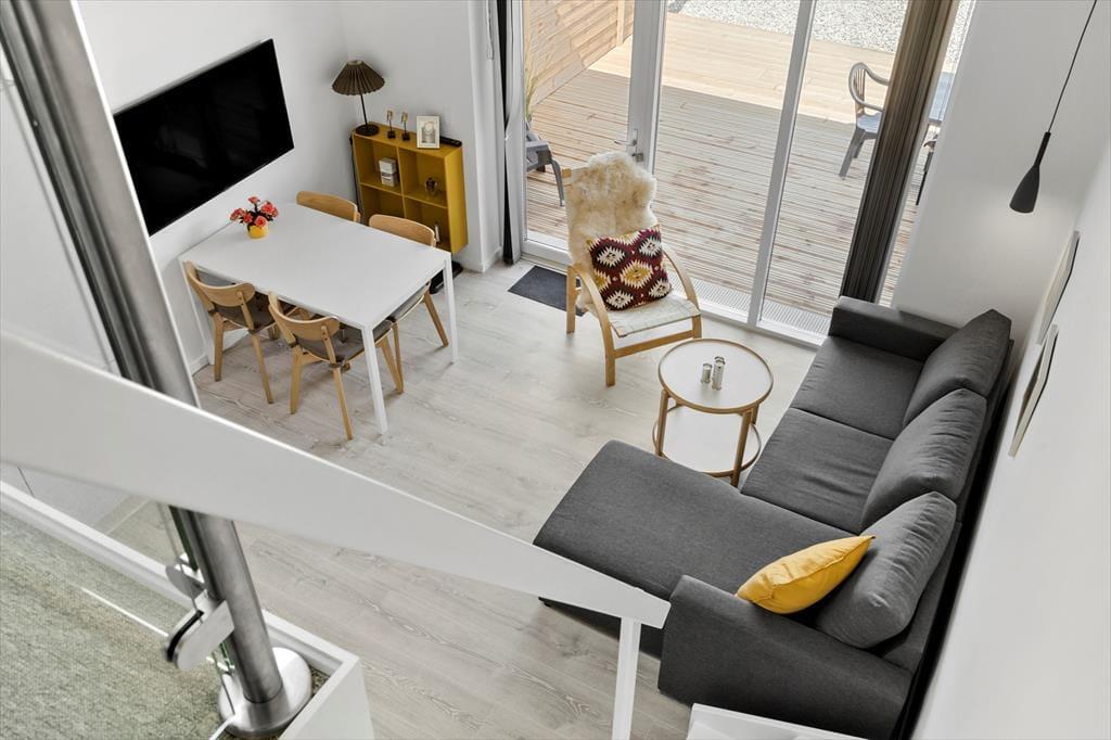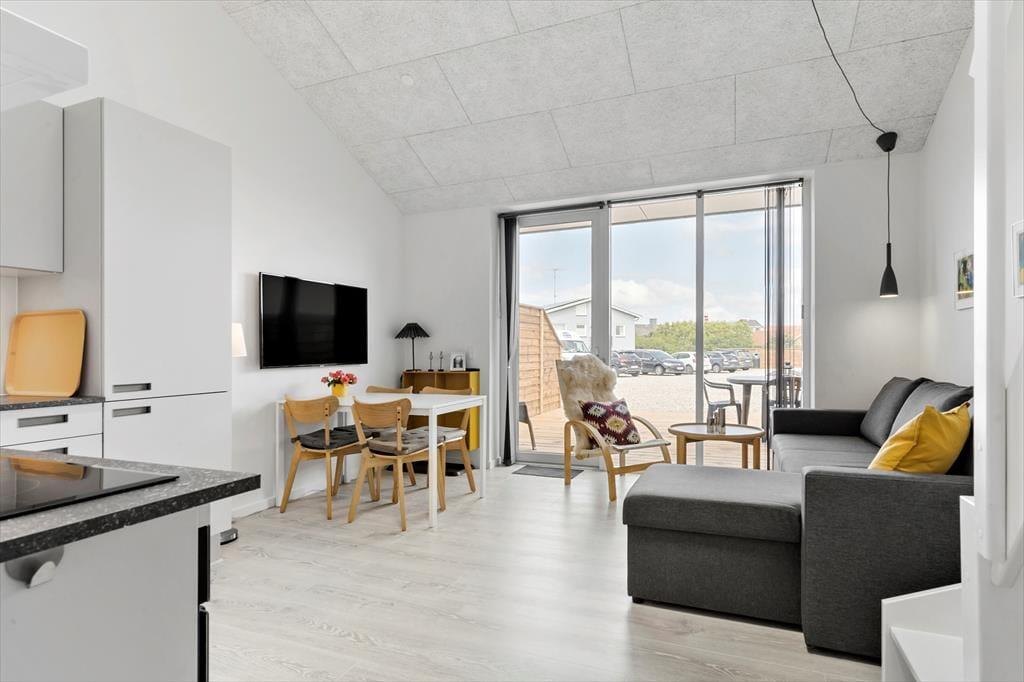 Neu gebaute Ferienwohnung mitten in Hvide Sande. Die Wohnung ist sehr gut eingerichtet mit einer Wohnküche mit einem guten Schlafsofa. Schönes Badezimmer mit WC, Dusche und Waschbecken. Vom Familienzimmer aus gelangt man auf eine Empore mit Doppelbett - volle Stehhöhe und gutes Raumgefühl beachten. Hier sind es nur 100 Meter zum Ringkøbing Fjord und zur Hvide Sande Schleuse und den besten Angelgründen für den aktiven Angler.