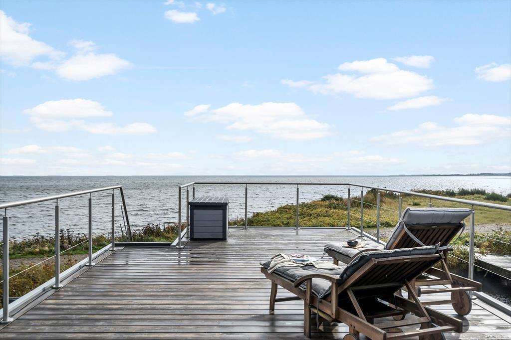 Draußen erwartet Sie eine teilweise überdachte Terrasse, auf der Sie den Blick auf den Ringkøbing Fjord von morgens bis abends genießen können. Die Terrasse liegt nur einen Meter vom Ufer entfernt, sodass Sie in die wunderschöne Aussicht eintauchen und das Gefühl haben, direkt auf dem Wasser zu sein. Die Mahlzeiten können auf dem Grill zubereitet werden, während Sie die frische Meeresbrise genießen. Wenn die Sonne zu stark wird, finden Sie unter dem überdachten Teil der Terrasse ausreichend Schatten. Hier können Sie auch einige der spektakulärsten Sonnenuntergänge erleben, während das Wasser die Farben des Himmels reflektiert. Die Terrasse lädt sowohl zu gemütlichen Gesprächen als auch zu entspannten Abenden unter dem Sternenhimmel ein.