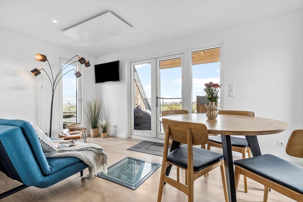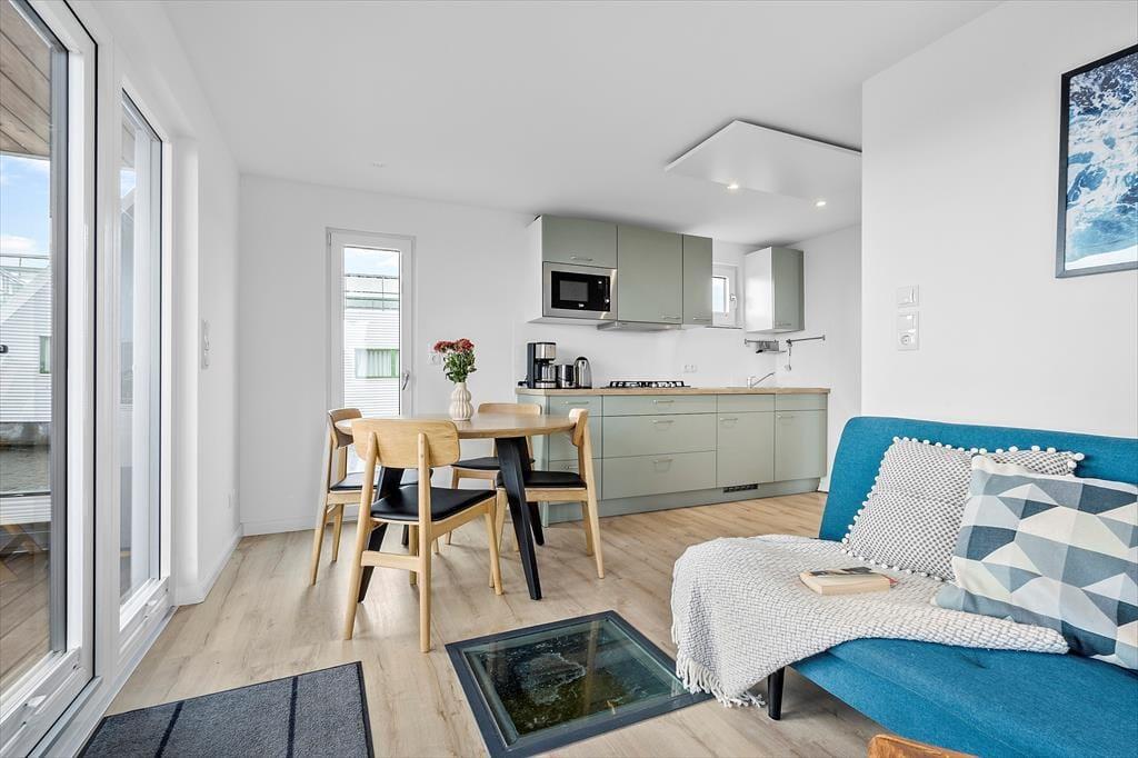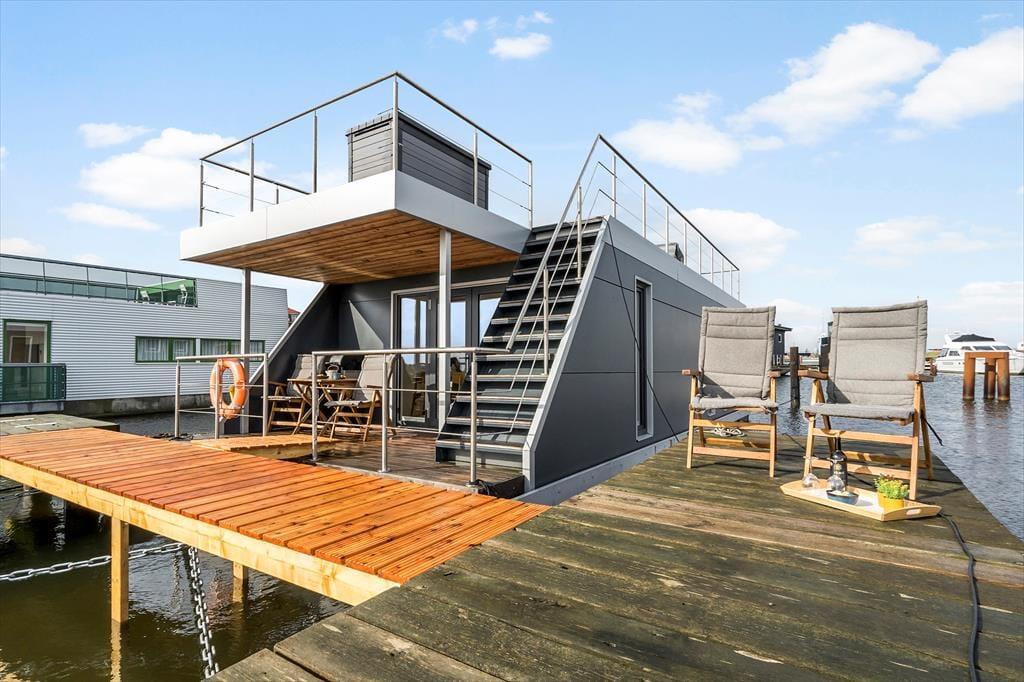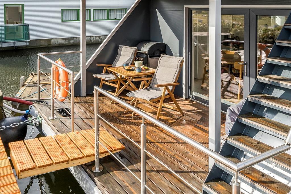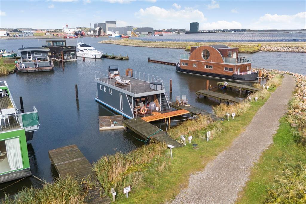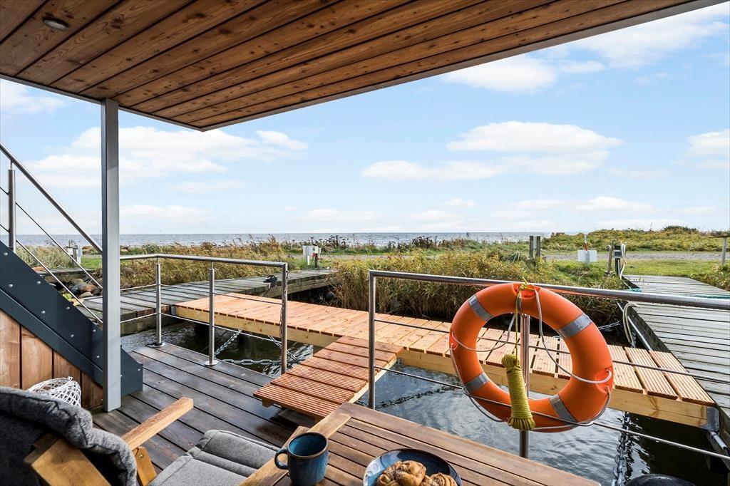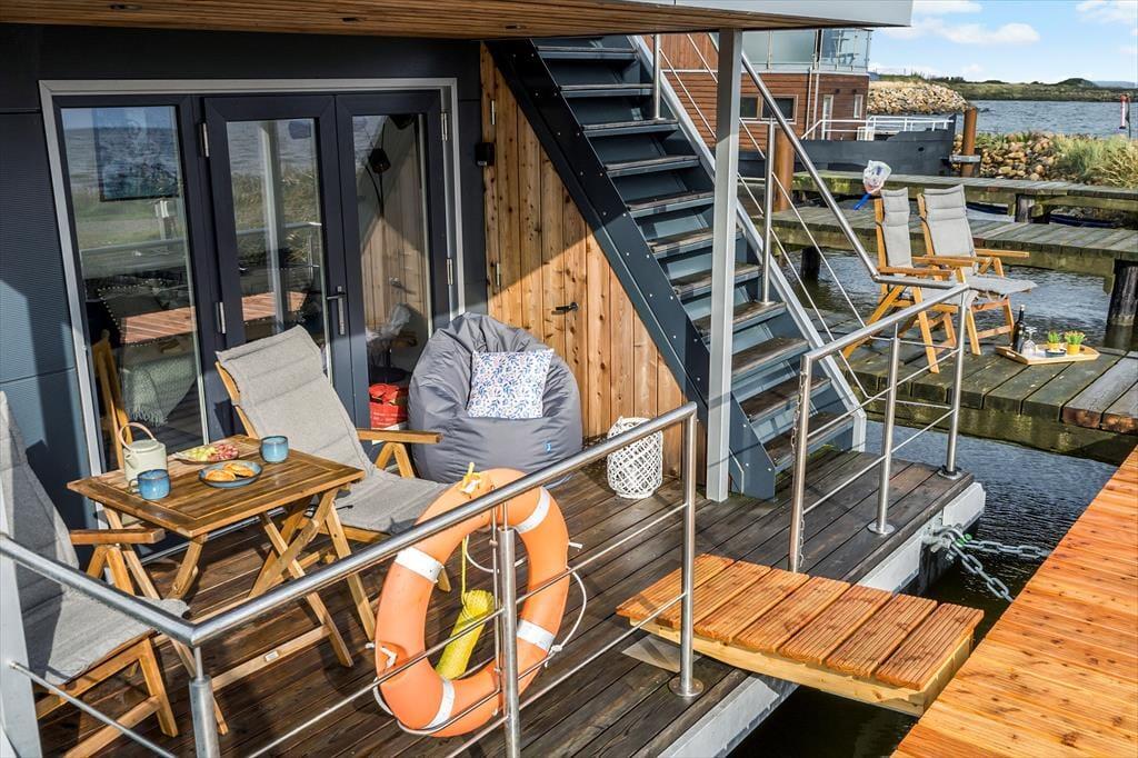 Träumen Sie von einem Urlaub auf dem Wasser? Auf Mamrelund 33 in Hvide Sande können Sie auf einem modernen Hausboot wohnen, das einen atemberaubenden Blick auf den Ringkøbing Fjord bietet – so nah am Ufer, dass Sie das Wasser fast von der Terrasse aus berühren können. Hier wohnen Sie in einer einzigartigen Umgebung, in der Ruhe einkehrt und die maritime Atmosphäre den Urlaub von der ersten Minute an prägt.