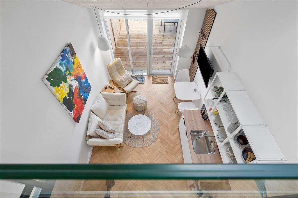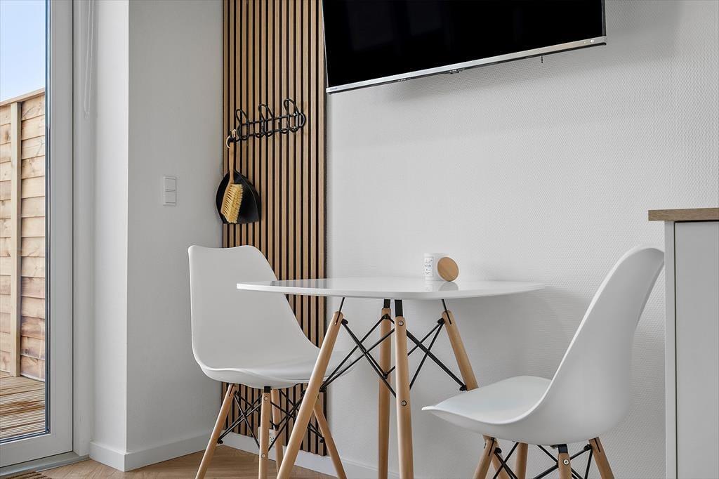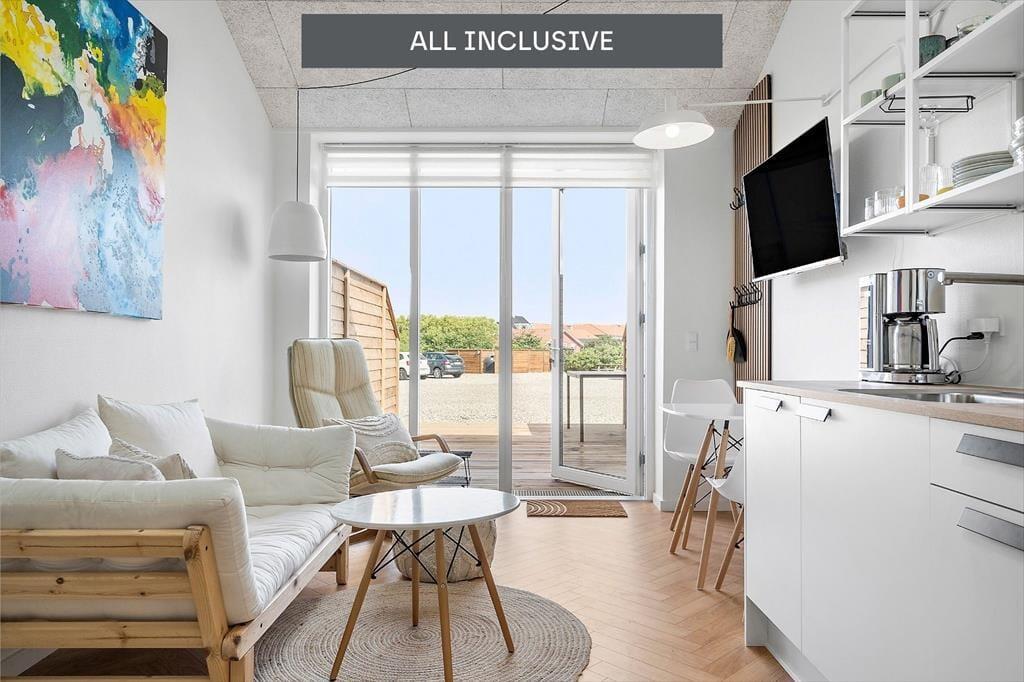 Diese Ferienwohnung im Herzen Hvide Sande ist erstmals im Jahr 2023 bezugsfertig. Die Wohnung verfügt über eine Wohnfläche von 23 m² und einen 12 m² großen Schlafboden für 2 Personen. Die Sofagruppe im Wohnraum kann als Schlafsofa genutzt werden. Der offen mit der Küche verbundene Wohnraum beinhaltet auch einen Essplatz. Vom Wohnraum gelangen Sie über eine gute Treppe hinauf auf den Schlafboden mit zwei Schlafgelegenheiten, einer hohen Decke und einem Dachflächenfenster. In der Küche stehen ein Induktionskochfeld, ein Backofen, eine Mikrowelle und ein Kühlschrank mit Gefriermöglichkeit für Sie bereit. Das Badezimmer und der Küchen- und Wohnbereich sind mit einer Fußbodenheizung versehen. Die Endreinigung sind bereits im Mietpreis inbegriffen.