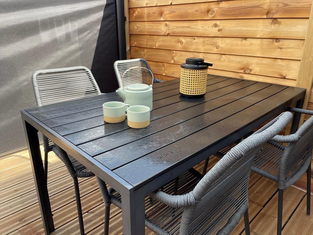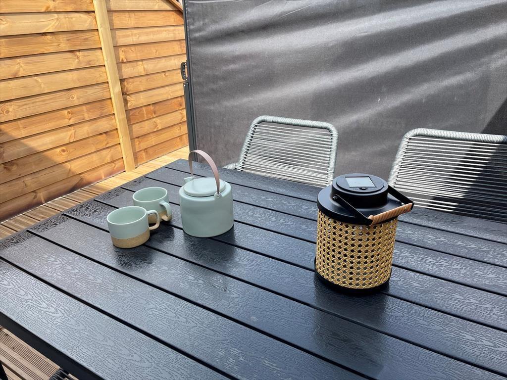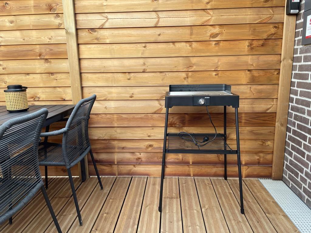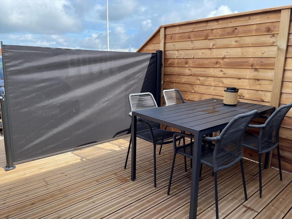 Die Terrasse verfügt über Gartenmöbel und einen Grill. Zur Wohnung steht ein abschließbarer Schuppen zur Verfügung.
