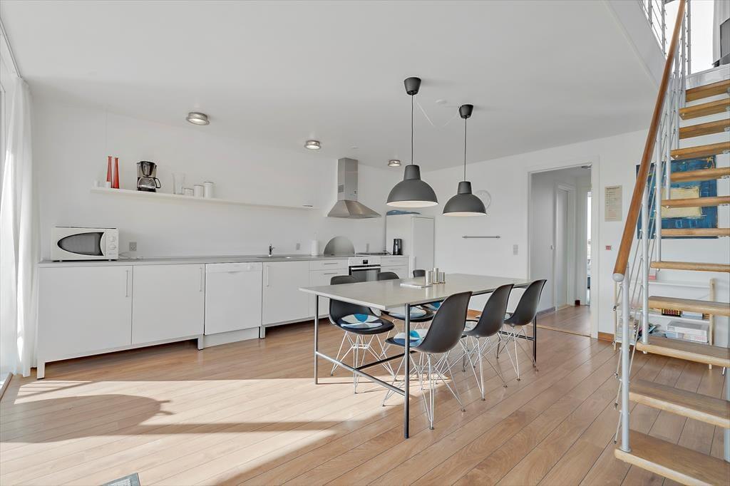 Das Hausboot liegt im "Tyskerhavn", dem sogenannten Deutschen Hafen, auf der Fjordseite in Hvide Sande. Hier sind Sie von den traditionellen Geräteschuppen umgeben, in denen die Fischer ihre Fanggeräte aufbewahren. Überall spürt man die authentische Hafenatmosphäre. Hier auf der Fjordseite ist das Wasser ruhig und es sind nur wenige Gehminuten zum Zentrum von Hvide Sande, zu Einkaufsmöglichkeiten, Restaurants, Cafés und zum Meer.