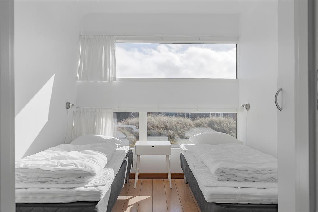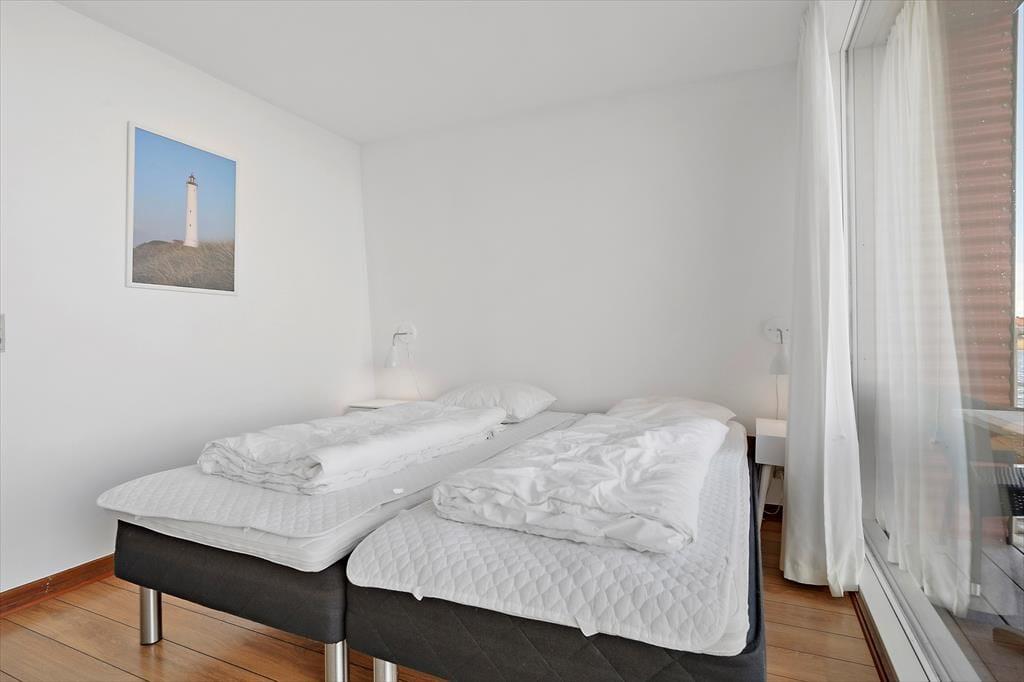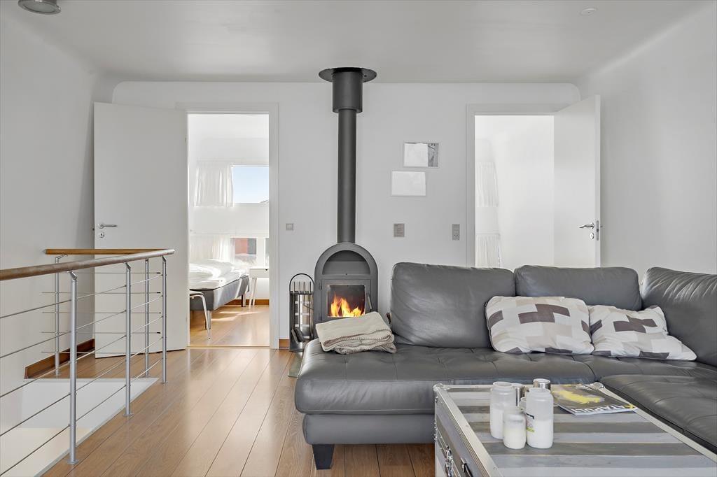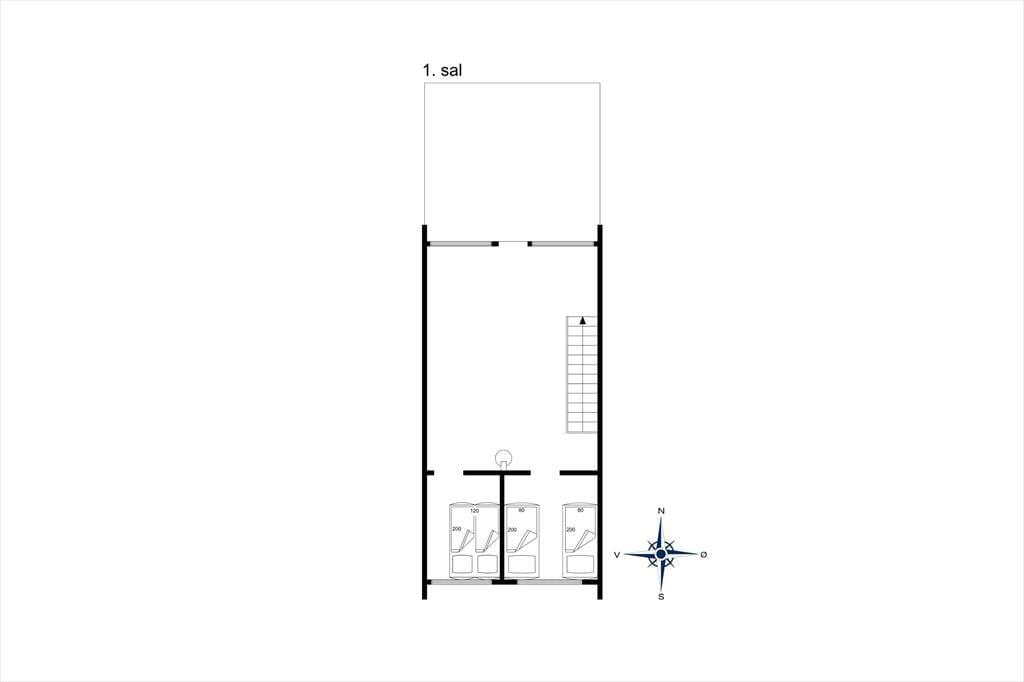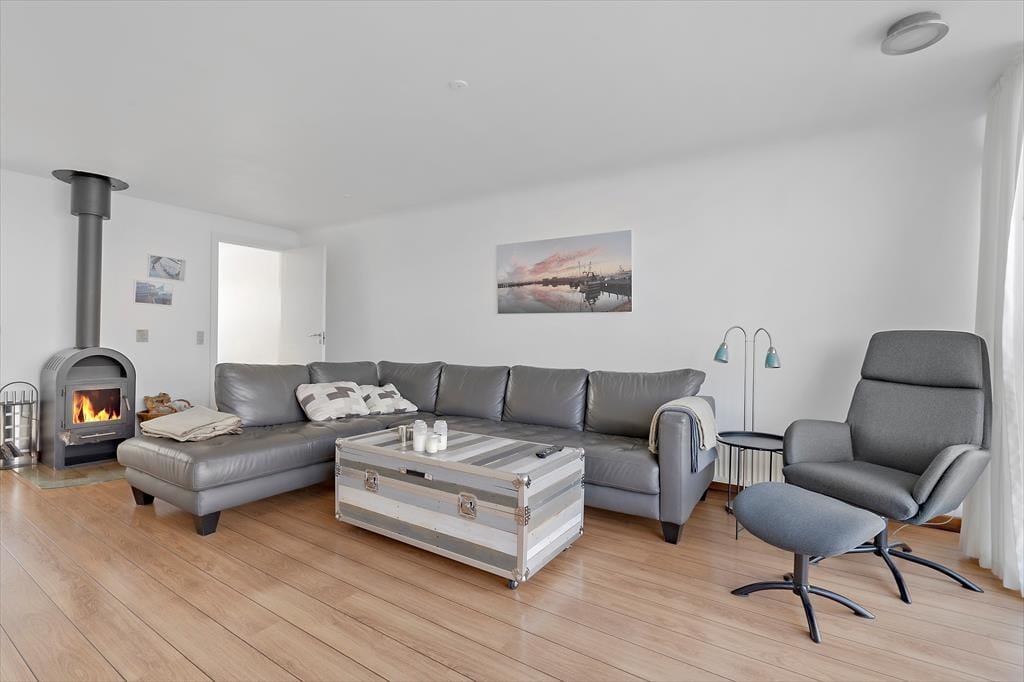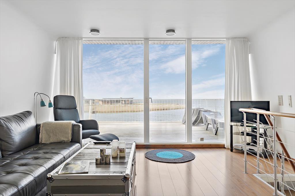 In der ersten Etage befindet sich das große Wohnzimmer des Hausbootes mit u. a. einem Flachbildfernseher, einem Kaminofen und einem fantastischen Panoramablick auf den Hafen und den Ringkøbing Fjord. Zudem haben Sie Zugang zur Hauptterrasse des Hausbootes, wo Gartenmöbel und ein Grill zur Verfügung stehen. Im ersten Stock befinden sich zwei weitere Schlafzimmer, eines mit zwei Einzelbetten und eines mit einem 3/4-Bett (120 x 200 cm) Das Hausboot bietet Platz für insgesamt sechs Personen.