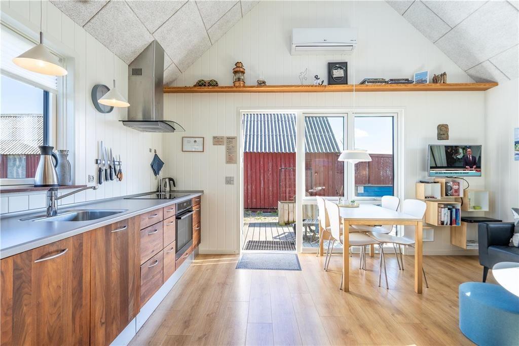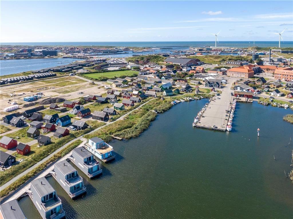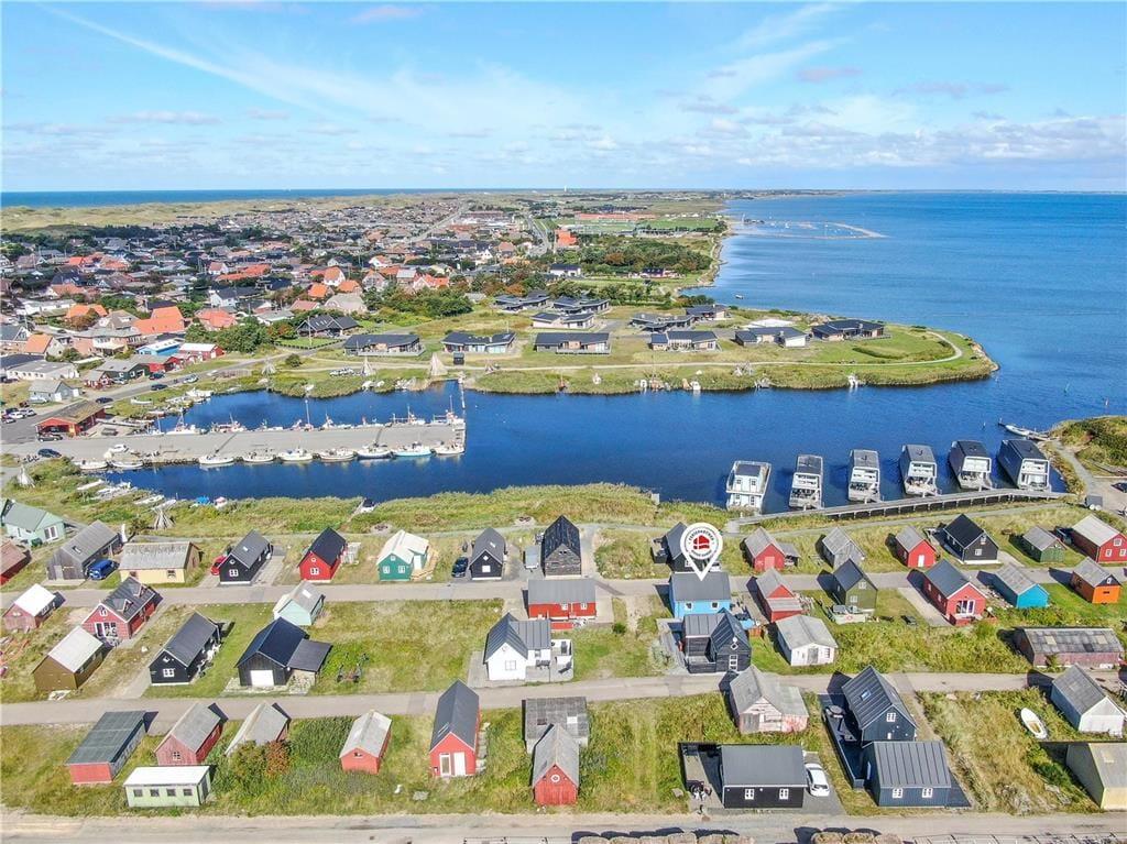 Diese moderne und außergewöhnlich gemütliche Fischerhütte liegt an der Adresse Æ Gammel Havn 30. Wie der Name bereits andeutet, wohnen Sie direkt am Wasser, inmitten Hvide Sandes interessanter Fjordfischereiumgebung. Das Urlaubsdomizil befindet sich in der zweiten Reihe vor dem mehr als 100 Jahre alten Tyskerhavnen, der Ihnen die einzigartige Möglichkeit bietet, das Leben am Fjord aus nächster Nähe zu erleben. Der Ortskern und die Nordsee sind zügig zu Fuß erreichbar.