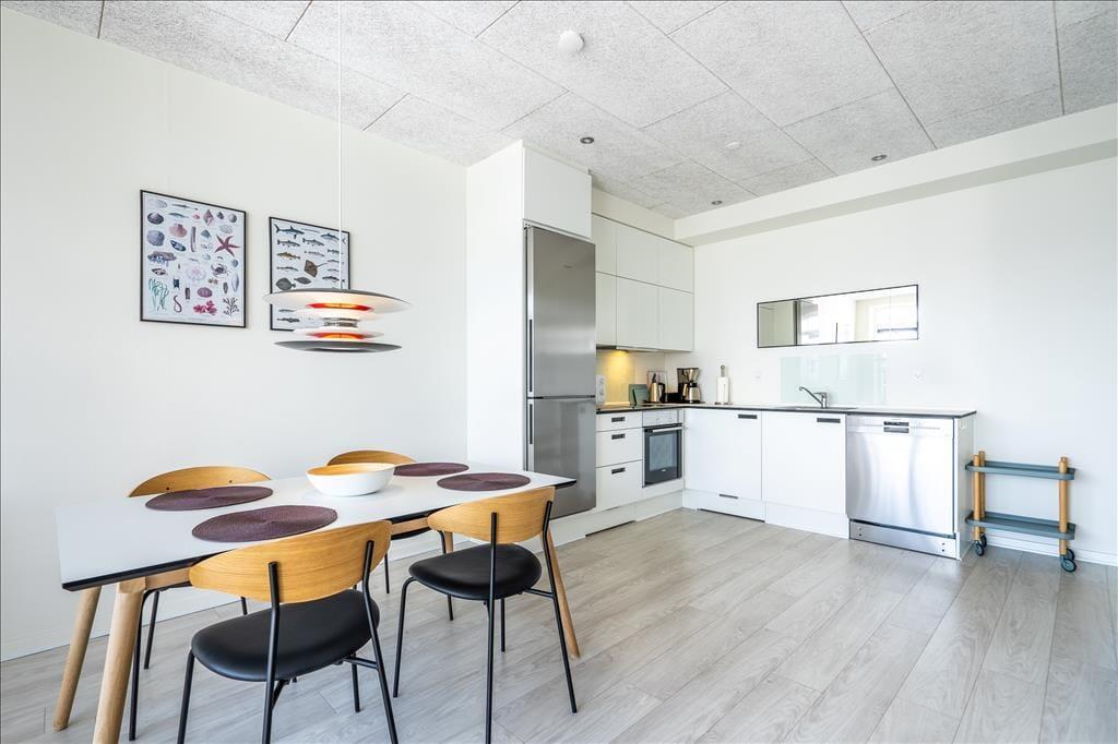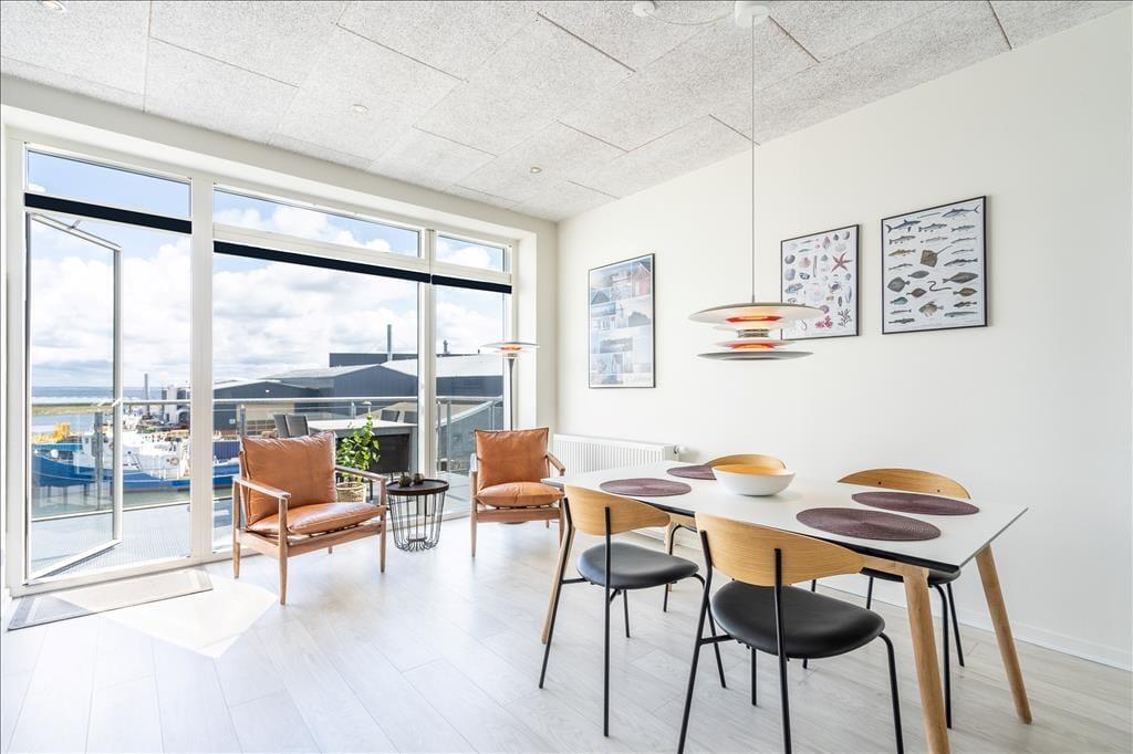 Es ist leicht zu verstehen, warum sich Mamrelund 6 bei Urlaubern so großer Beliebtheit erfreut. Der moderne Wohnkomplex befindet sich schön platziert im Herzen Hvide Sandes. Diese Ferienwohnung liegt im zweiten Obergeschoss und bietet Ihnen aufgrund der erhöhten Platzierung einen traumhaft schönen Panoramablick über den Hafen und den Ringkøbing Fjord.