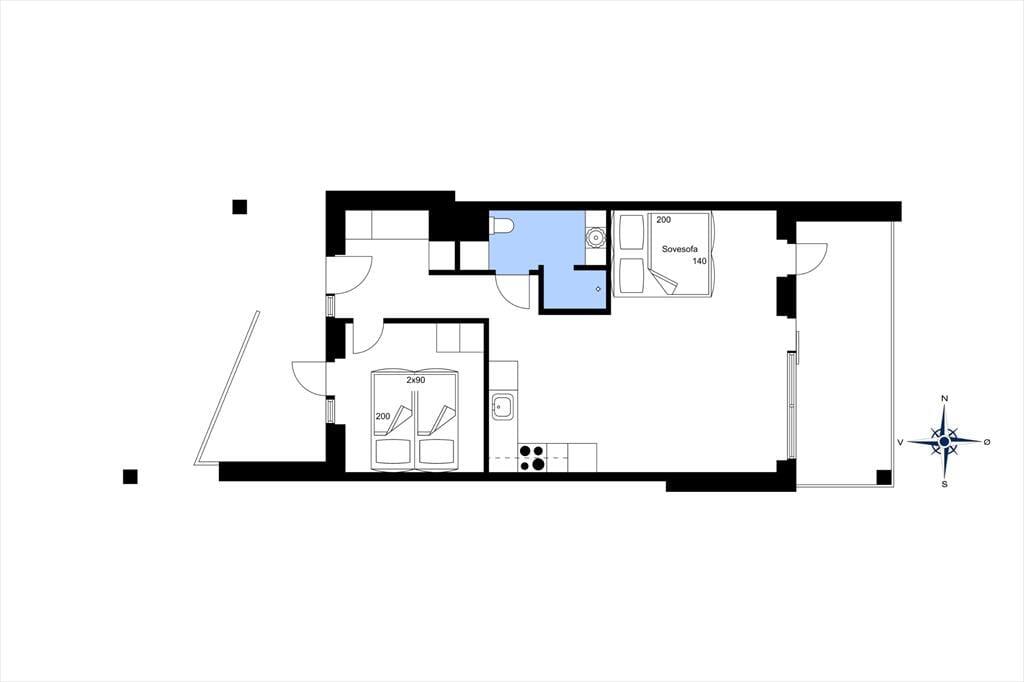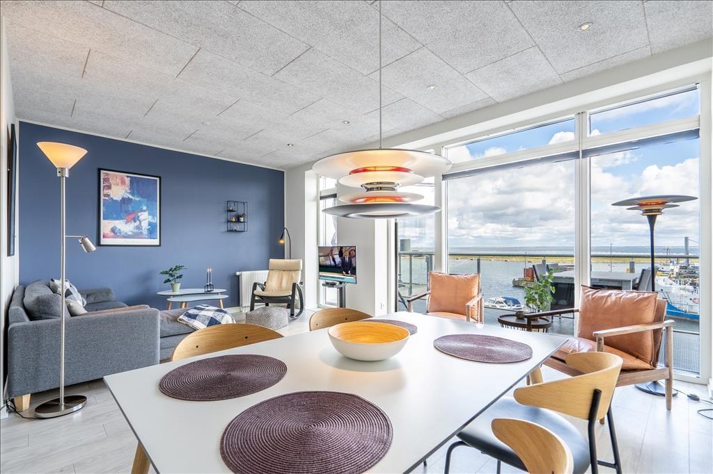 Der Grundriss der Wohnung ist perfekt auf die attraktive Umgebung abgestimmt, sodass Sie im Wohnraum mit der schönsten Aussicht verwöhnt werden. Von hier aus blicken Sie direkt auf das Wasser und die sanft schaukelnden Boote - von Sonnenaufgang bis Einbruch der Dunkelheit. Der Aufenthaltsraum überzeugt mit großen, bodentiefen Fenstern und einer stilvollen Einrichtung, die eine Sofaecke, bequeme Lehnstühle, einen Esstisch und einen Flachbild-TV umfasst. In einem Ende des Aufenthaltsraums treffen Sie auf die gut ausgestattete Küche. Der Rest der Wohnfläche ist einem Badezimmer, einem Eingangsbereich und einem Schlafzimmer gewidmet. Ergänzend zum Doppelbett im Schlafraum bietet Ihnen das Sofa im Wohnraum, bei dem es sich um ein Schlafsofa handelt, zwei weitere Schlafplätze. Insgesamt ist diese reizvolle Ferienwohnung für vier Urlauber ausgestattet.