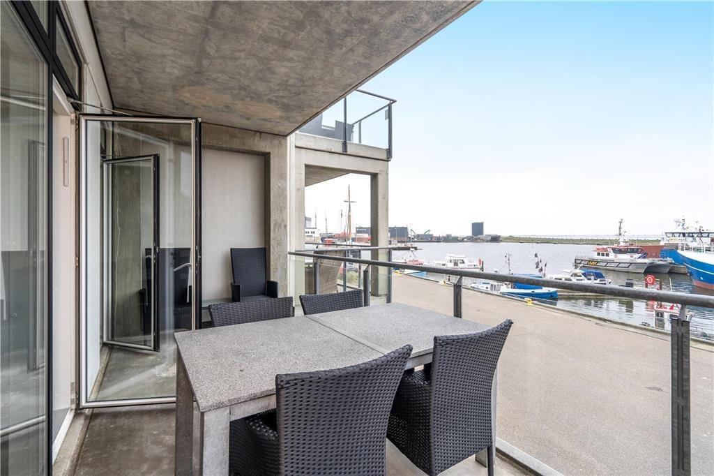 Unter freiem Himmel befinden Sie sich ebenfalls in vorderster Reihe zum Hafen. Sie werden gerne mitverfolgen, wie kleine und größere Boote vorbeiziehen oder ihren täglichen Fang am Kai anlanden. Der Balkon ist überdacht, gen Osten ausgerichtet und mit guten Gartenmöbeln versehen. An der Westseite der Wohnung steht ein zusätzlicher Aufenthaltsbereich zur Verfügung. Dieser verwöhnt Sie am Nachmittag mit Sonnenschein.