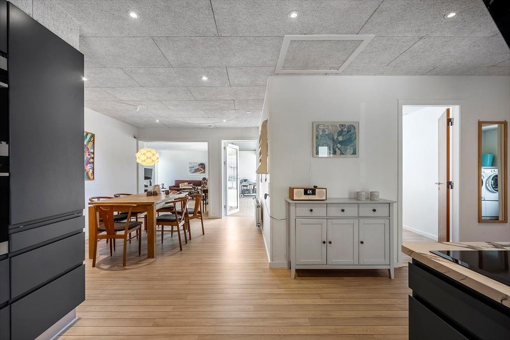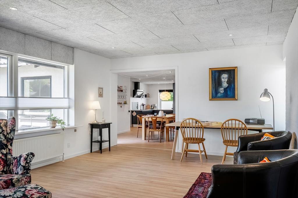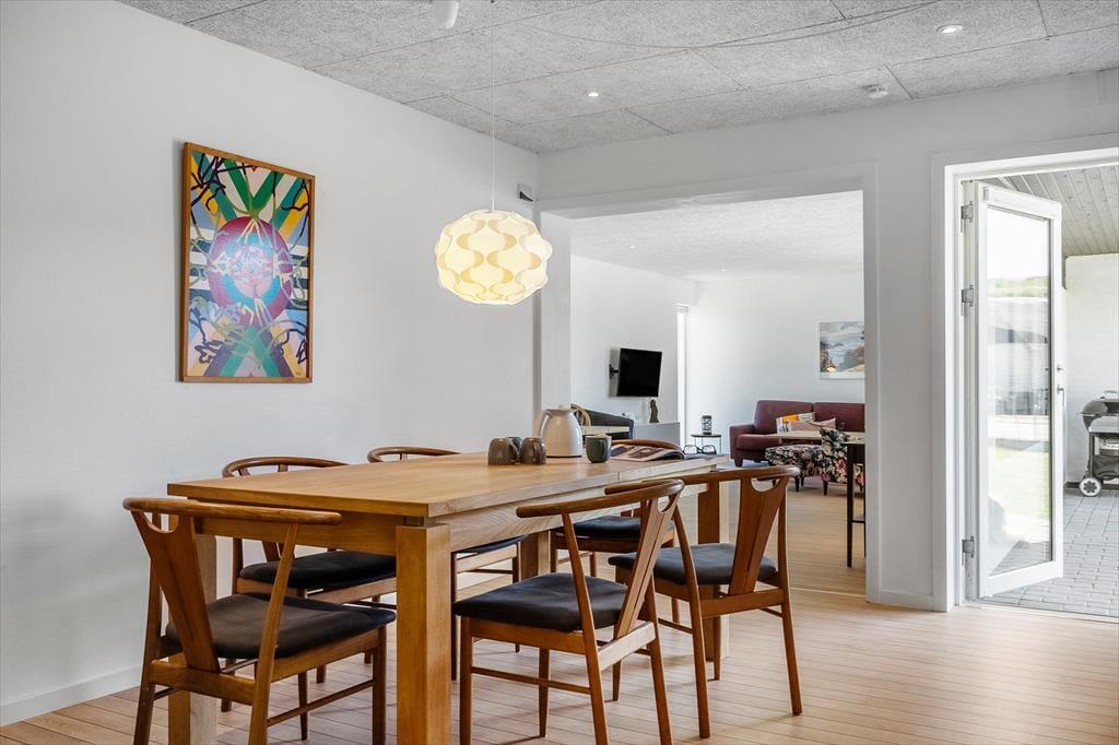 Der Livadiavej endet in einer Sackgasse, und vom Haus aus sind es nur 150 Meter zu den Dünen, die den Übergang zwischen der Stadt und der wilden Natur der Westküste markieren. Der Nordstrand von Hvide Sande ist nur ein paar hundert Meter entfernt, und auch den Ringkøbing Fjord kannst du in einem kurzen Spaziergang erreichen. Bist du begeistert von Wassersport oder möchtest einfach etwas Neues ausprobieren? Dann kannst du zur Kabelparkanlage der Stadt oder zu Westwind Nord gehen, um Wasserski zu fahren, Windsurfing-Kurse zu nehmen oder etwas ganz anderes auszuprobieren. Falls du gerne angelst, gibt es viele gute Angelplätze rund um den Hafen von Hvide Sande, unter anderem bei der großen Entwässerungsschleuse in der Stadt. Hier findest du auch eine gute Auswahl an Geschäften und Restaurants und zum nächsten Supermarkt sind es weniger als 500 Meter.