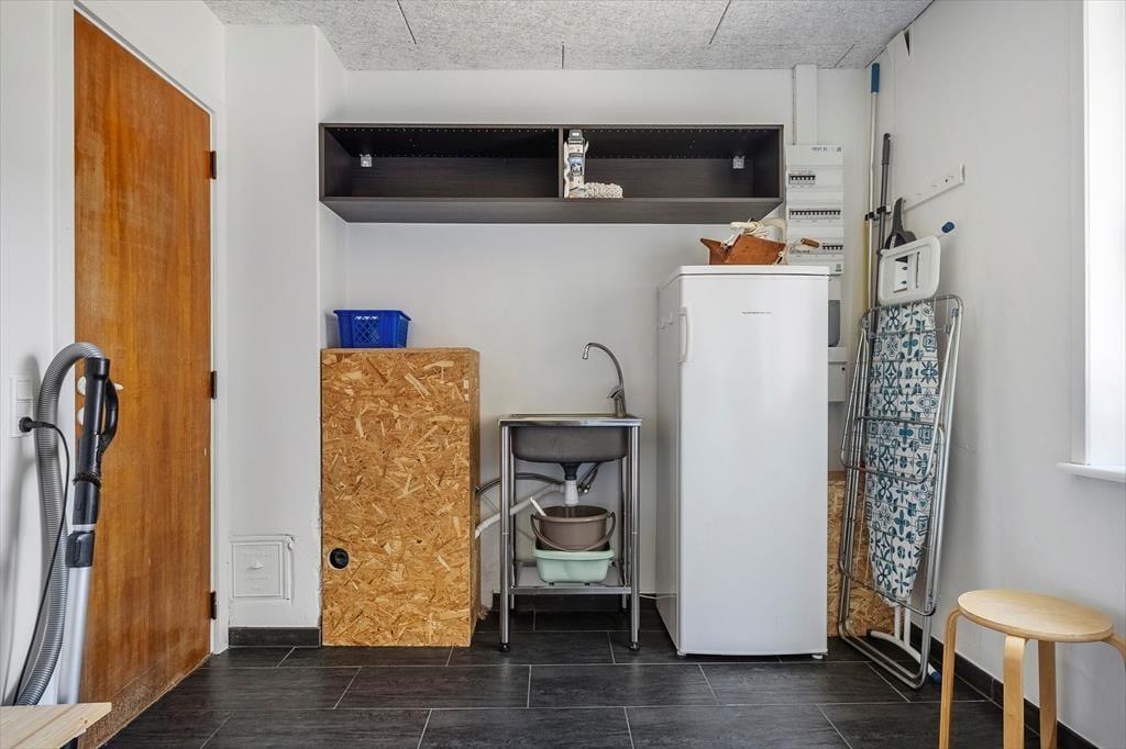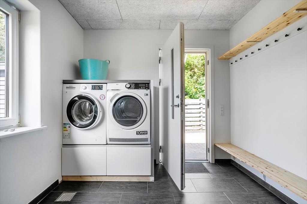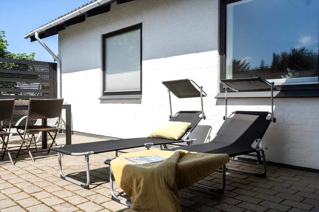 Auf dem Grundstück gibt es sowohl eine gepflasterte Einfahrt als auch eine Garage für das Auto. Außerdem ist das Haus von einem schönen grünen Rasen umgeben, der Platz für Spiele, Entspannung und sportliche Aktivitäten bietet. Wenn du dich in einem der Liegestühle zurücklehnen möchtest, kannst du es dir auf der sonnigen Terrasse gemütlich machen. Diese liegt südwestlich in einer windgeschützten Ecke des Hauses. Durch die Terrassentür kannst du leicht in die Küche gehen, um deine Kaffeetasse nachzufüllen oder Eis für die Kinder aus der Tiefkühltruhe zu holen. Abends kannst du das Kochen auch nach draußen verlagern, indem du den Grill anzündest und den Gartentisch schön deckst.