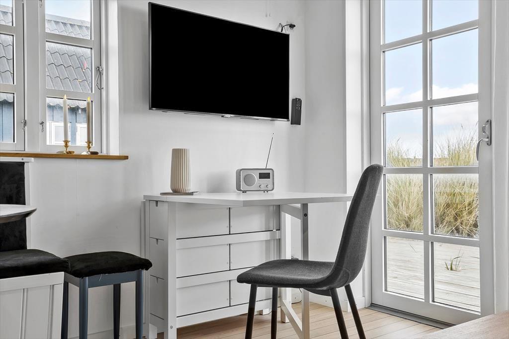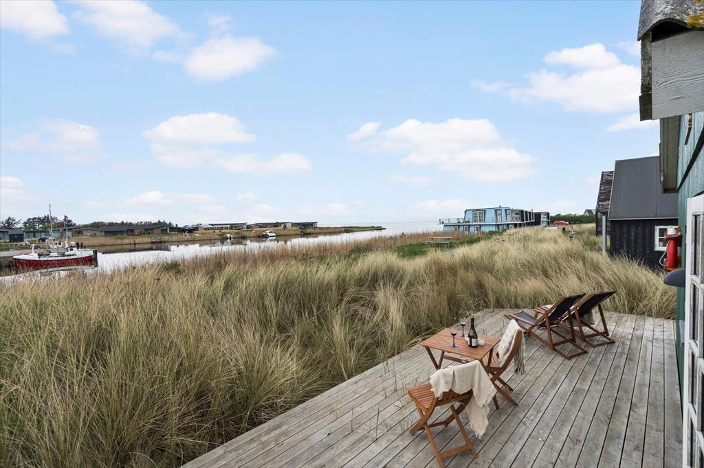 Udenfor venter en lille, egen terrasse, som hurtigt bliver jeres yndlingssted i solskinstimerne. Her kan du nyde morgenkaffen med udsigt til havnens liv og aktivitet – og måske høre lyden af fiskekutterne, der langsomt glider forbi. Den tætte beliggenhed på fjorden og havnen gør det oplagt at trække i en ekstra trøje og sætte sig ud, også når dagen går på hæld. Når mørket falder på, bliver stemningen næsten magisk med skæret fra gadelamperne og duften af hav. Det er ferie i sin mest afslappede form – en lille oase midt i det autentiske Hvide Sande.