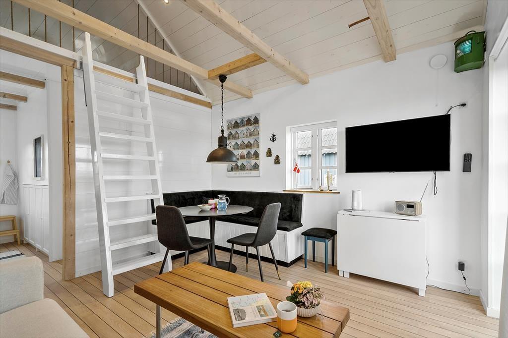 Træder du ind i denne hyggelige feriebolig, mærker du med det samme, hvordan roen sænker sig. Indretningen er varm og enkel – et sted, hvor man hurtigt føler sig hjemme. I stuen kan I samles omkring spisebordet med friskbagte rundstykker og kaffe fra det nærliggende bageri, og sofahjørnet indbyder til afslapning efter en dag fuld af oplevelser. Det separate soveværelse tilbyder en god nats søvn, mens fjordens stille bølger og stemningen fra den nærliggende Tyskerhavn skaber en fredfyldt kulisse, der inviterer til ro og fordybelse. Badeværelset er pænt og praktisk indrettet, og det samlede udtryk emmer af feriehygge og enkel komfort. Her er plads til både nærvær og afslapning, uanset om dagen står på byliv, naturoplevelser eller bare ro og fred.