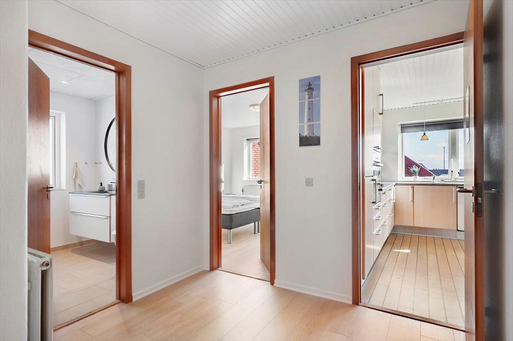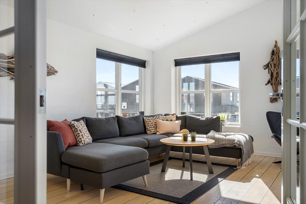 Willkommen in dieser exklusiven Ferienwohnung im Herzen von Hvide Sande. Die Wohnung befindet sich im ersten Stock des historischen Gebäudes, in dem sich auch das bekannte Geschäft „Hvide Sande Røgeri“ befindet - moderner Komfort trifft auf authentisches maritimes Flair. Originale Details wie die typischen Holzelemente und der rustikale Baustil wurden sorgfältig bewahrt, doch ist durch die hellen Räume und das stilvolle Interieur eine luxuriöse Atmosphäre geschaffen. Hier findet ihr ein geräumiges Wohnzimmer mit großen Fenstern, die viel natürliches Licht hereinlassen und einen einmaligen Blick auf den Hafen bieten. Die Küche ist mit modernen Geräten ausgestattet - ihr könnt mühelos köstliche Mahlzeiten zubereiten – vielleicht sogar mit frischem Fisch, den ihr selbst an einer der Molen von Hvide Sande gefangen oder direkt unter euch am Fischtresen erhandelt habt. Die Wohnung verfügt über vier gemütliche Schlafzimmer mit ausreichend Stauraum und bequemen Betten, die euch nach einem erlebnisreichen Tag eine erholsame Nachtruhe garantieren.