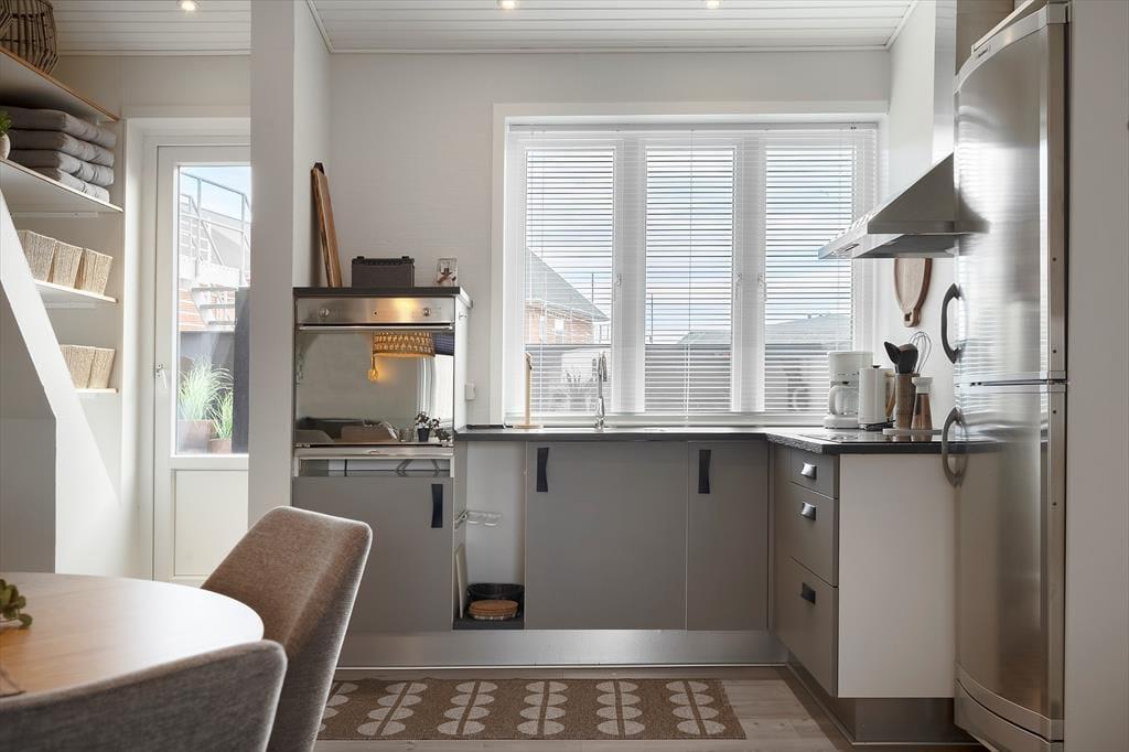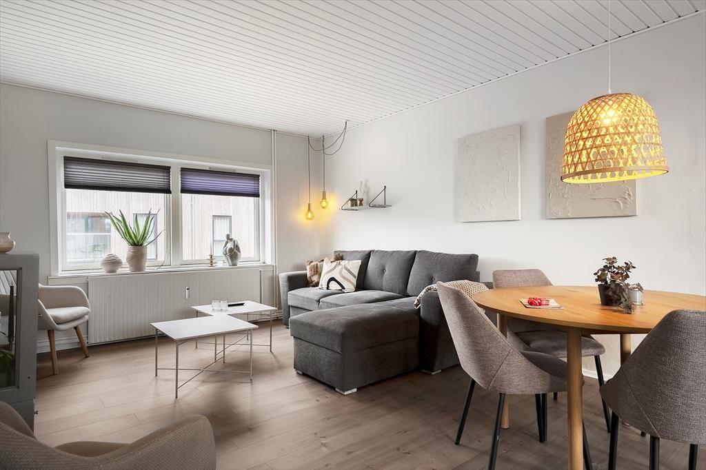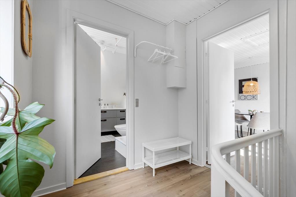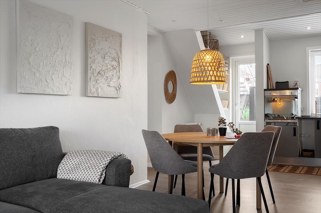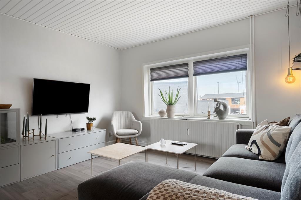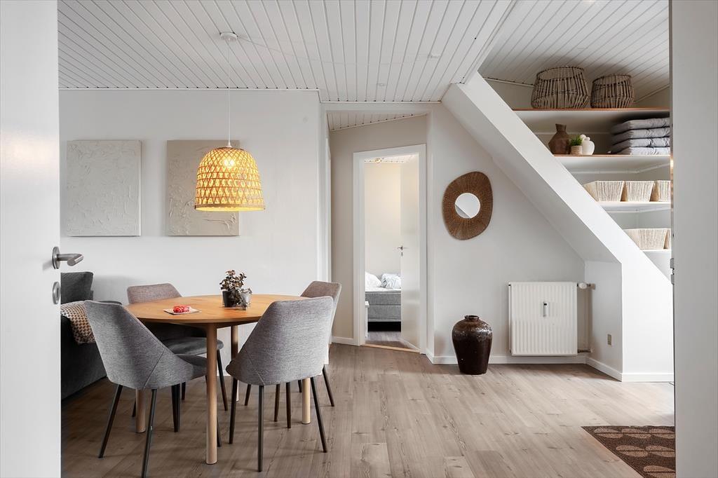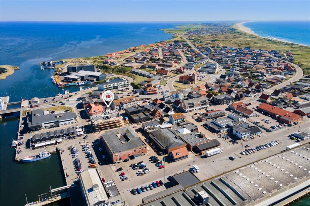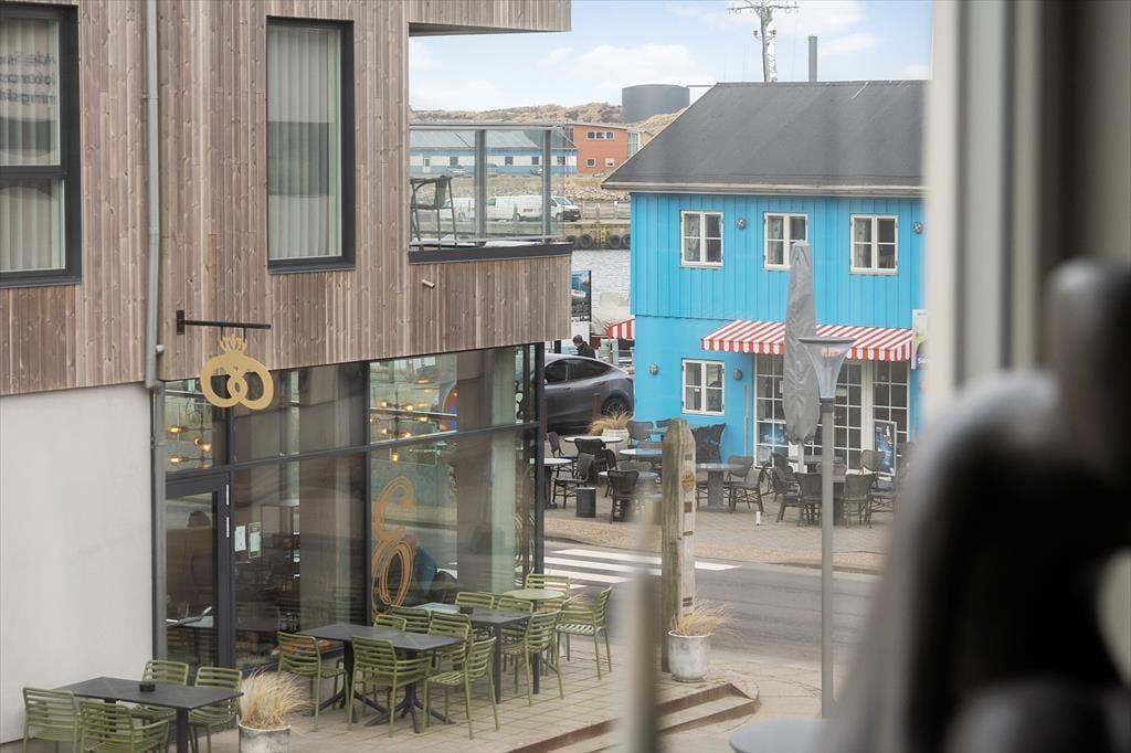 Im Erdgeschoss der Immobilie befinden sich ein Friseursalon und ein Lifestyle-Laden, und in den umliegenden Straßen reihen sich spannende Fachgeschäfte aneinander. Die Restaurants bieten alles, vom schnellen Imbiss bis zum köstlichen Gourmet-Menü, und die Fischhändler der Stadt bieten eine große Vielfalt an frischen und geräucherten Köstlichkeiten aus dem Meer. An der Schleuse können Sie Ihre Angel auswerfen und Ihr eigenes Abendessen fangen, oder Sie genießen die maritime Atmosphäre der Stadt bei einem Bier vom Fass am Kai. Für Aktivurlauber bietet Holmsland Klit eine schöne Landschaft mit guten Wander- und Radwegen. Die beiden Surfspots auf der Fjordseite und das Gebiet bei Sydmolen, wo man auf der Nordsee surfen und SUP'en kann, machen Hvide Sande zu einem Paradies für Wassersportler, aber man kann natürlich auch einfach am Strand entspannen, sich sonnen und ein kühles Bad nehmen.
