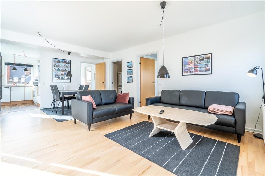 Diese attraktive Ferienwohnung liegt im Zentrum von Hvide Sande, und Sie haben einen herrlichen Blick auf den Hafen, die Kammerschleife und den Ringkøbing Fjord. Der Strand an der Nordsee ist nur 850 Meter von der Adresse entfernt, und sowohl hier als auch am Fjord gibt es die Möglichkeit zu surfen oder zu paddeln. Mit zwei Schlafzimmern und einem großen Wohnbereich bietet das Ferienhaus großzügig Platz für vier Personen und verfügt zudem über eine große Terrasse, auf der Sie die Urlaubstage im Freien genießen können.