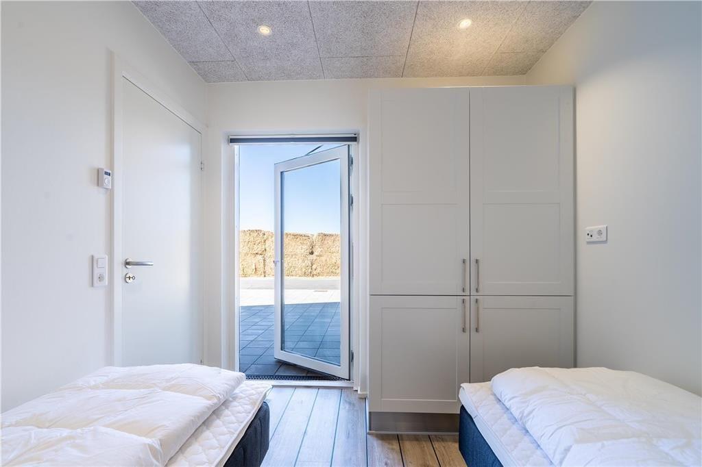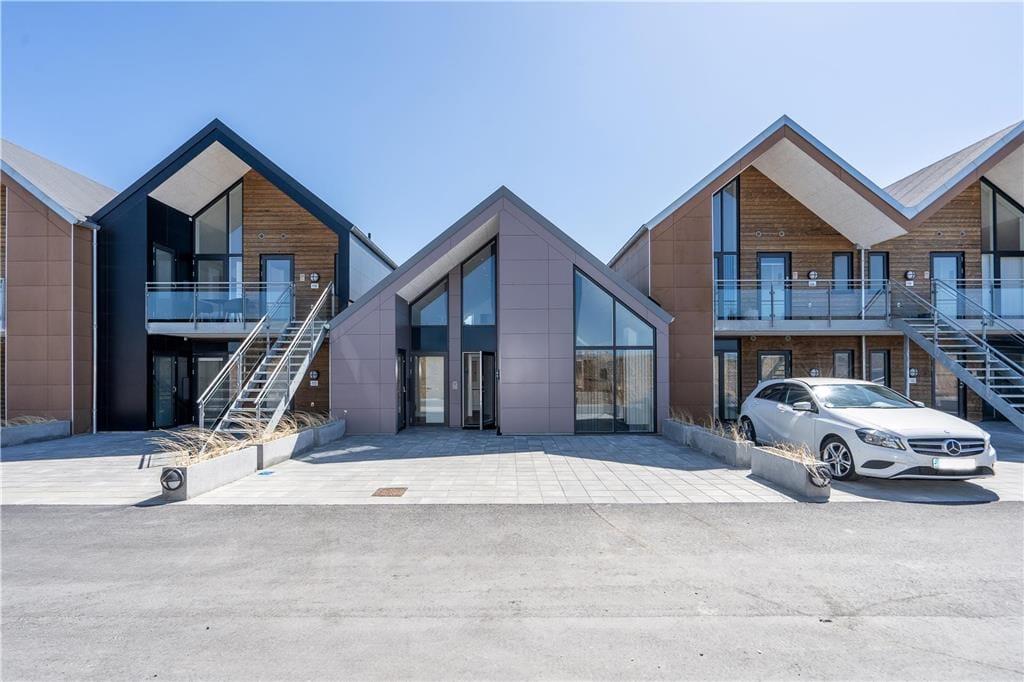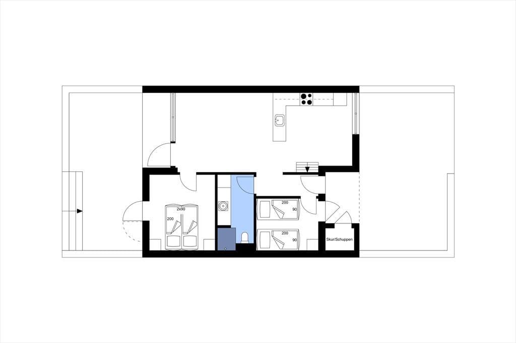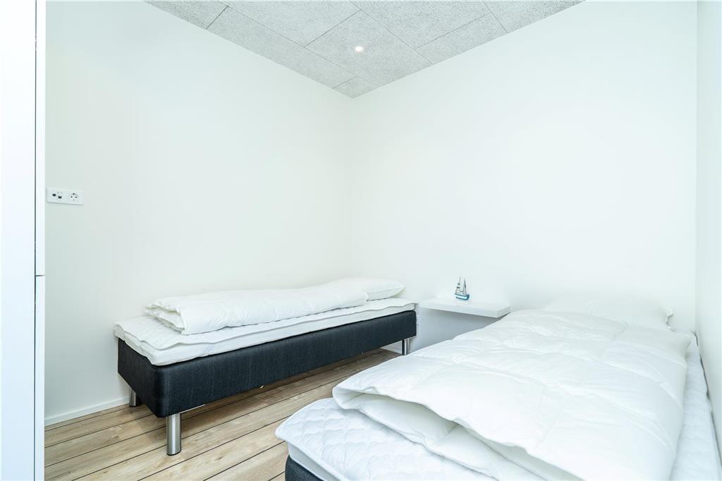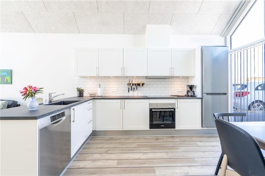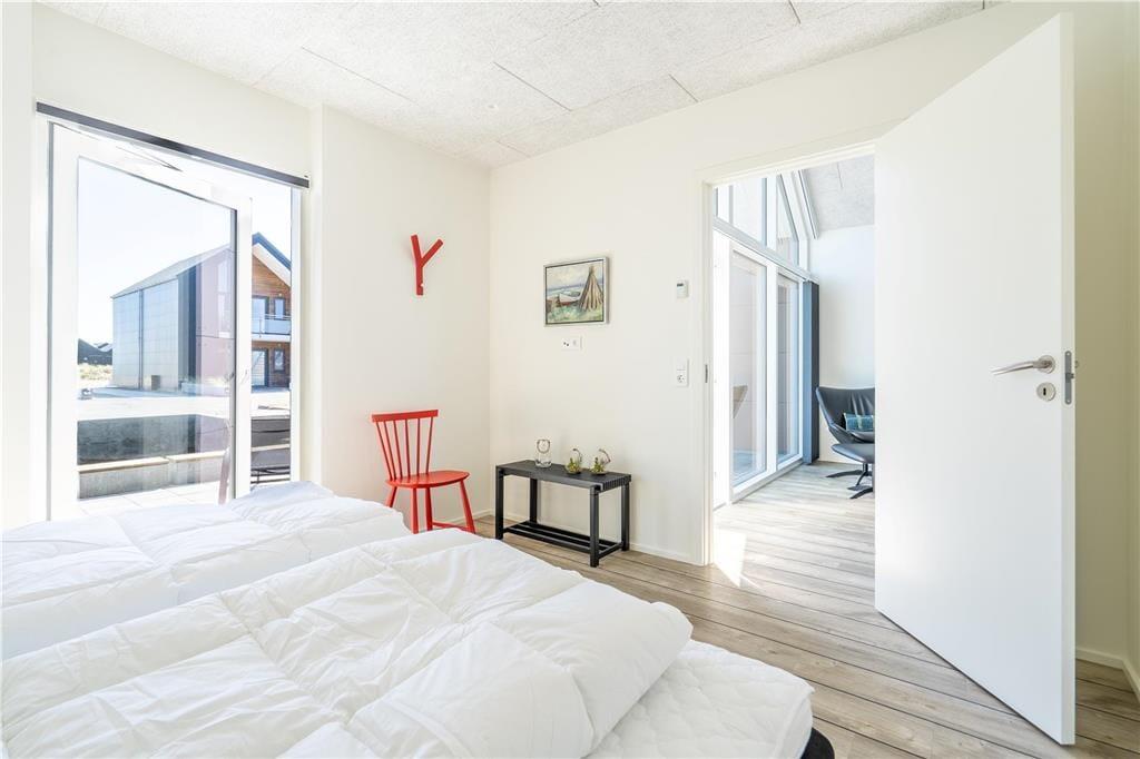 Konkreter ist hier die Rede von einem Reihenhaus, das Teil des von Architekten entworfenen Gebäudekomplexes Langsand Langs Vand ist. Hier hat jede Ferienwohnung einen eigenen Charakter, und das gilt auch hier in der Wohnung Nr. 108, die auf 74 m² sehr ansprechend für vier Personen eingerichtet ist. Innen ist die Atmosphäre hell und leicht - unter anderem in den zwei Schlafzimmern und dem Badezimmer, das mit Fußbodenheizung, Dusche und Waschmaschinen-Trockner-Kombigerät ausgestattet ist. Das Wohnzimmer ist jedoch der Raum, der mit seinen großen Fensterflächen und der schönen Deckenhöhe am meisten beeindruckt. Eine Leiter führt hinauf zu einem gemütlichen Schlafboden, wo Sie sich mit einem guten Buch entspannen können, wenn Sie nicht einfach in der Sofaecke die Füße hochlegen wollen.